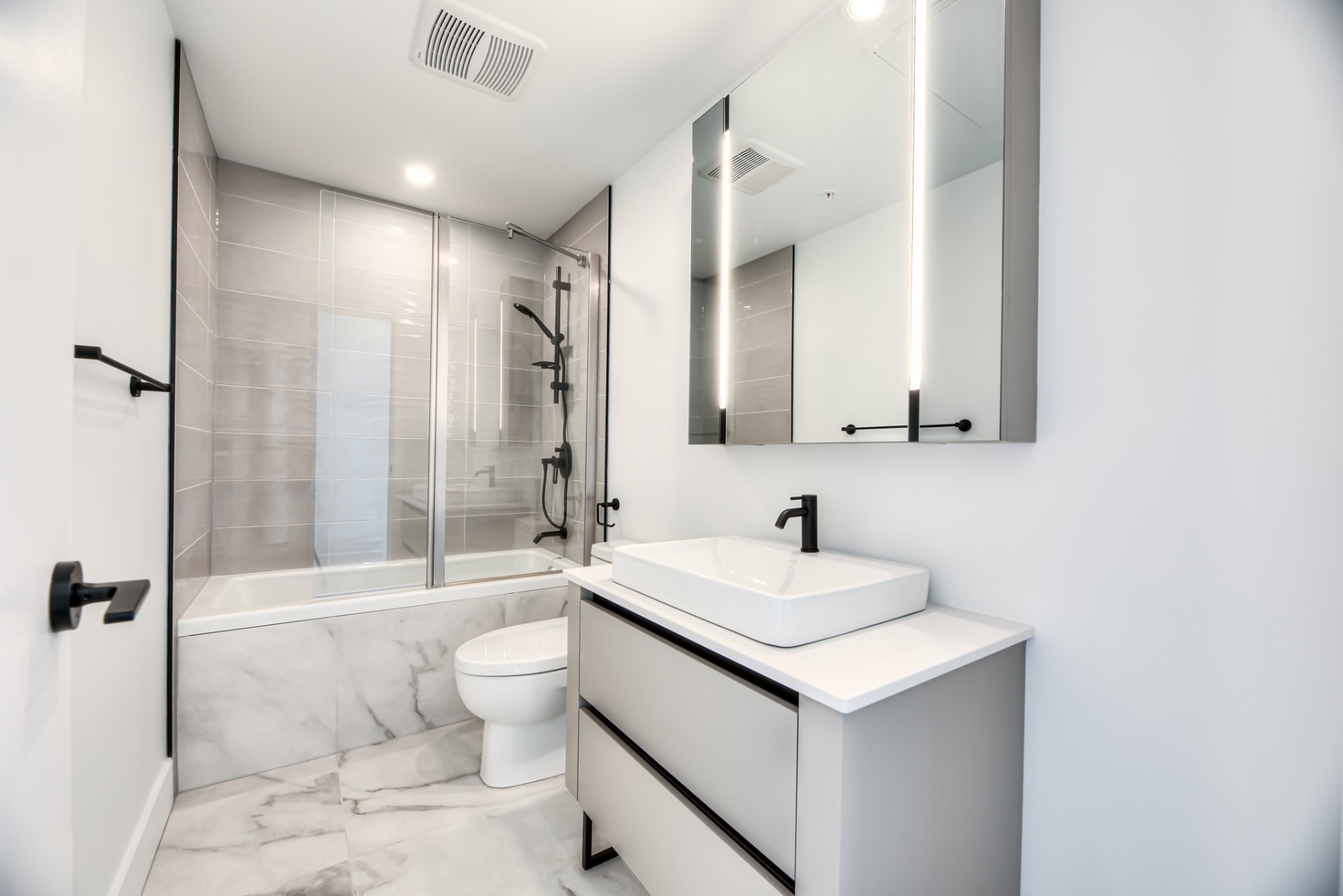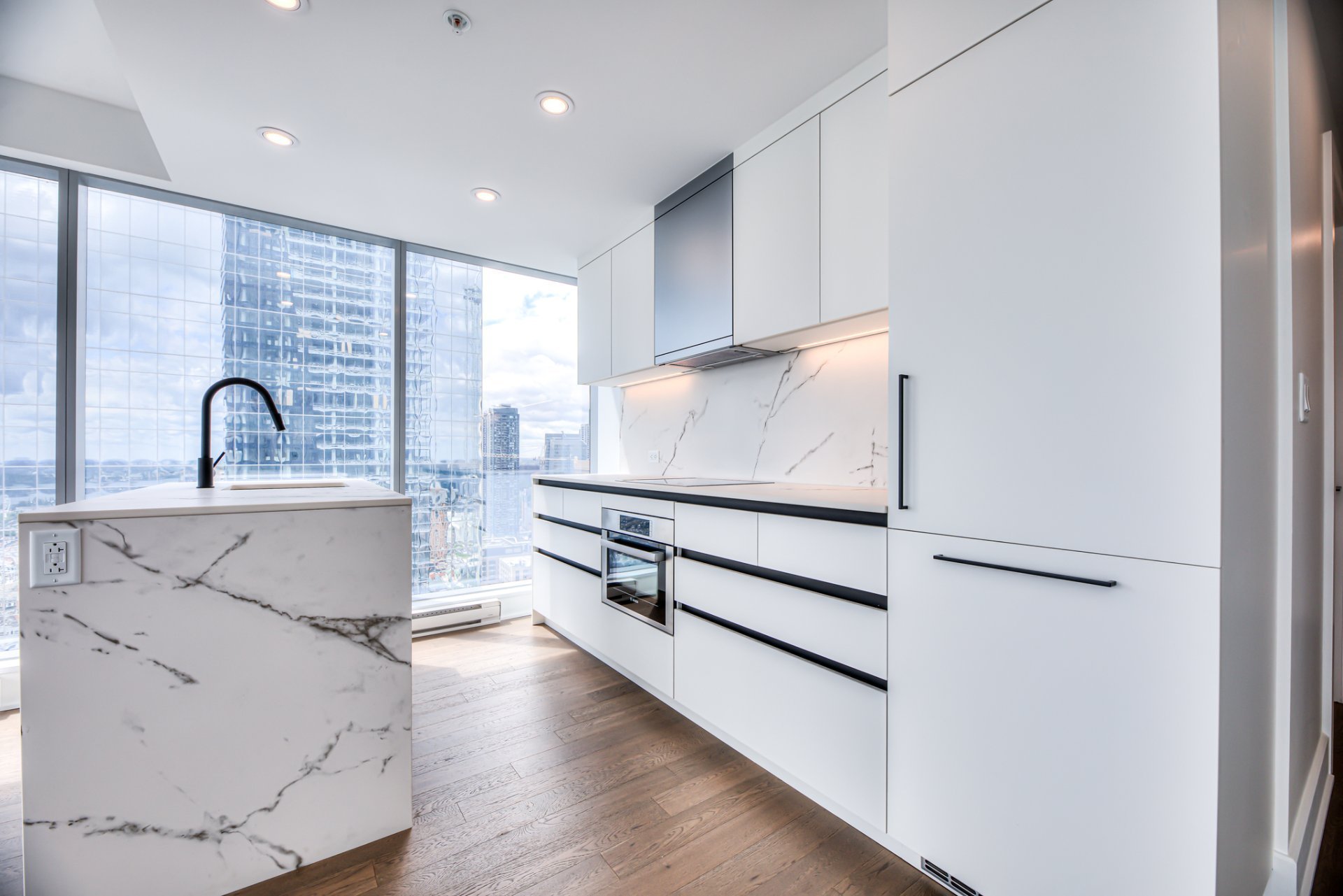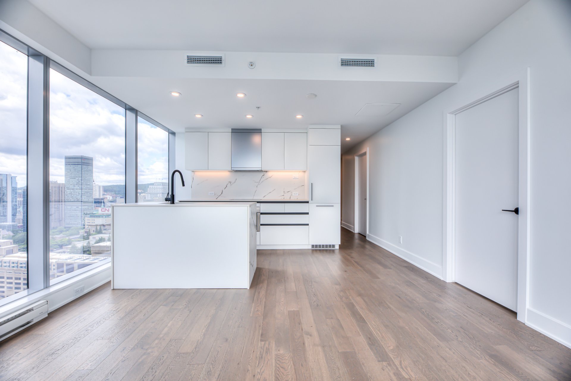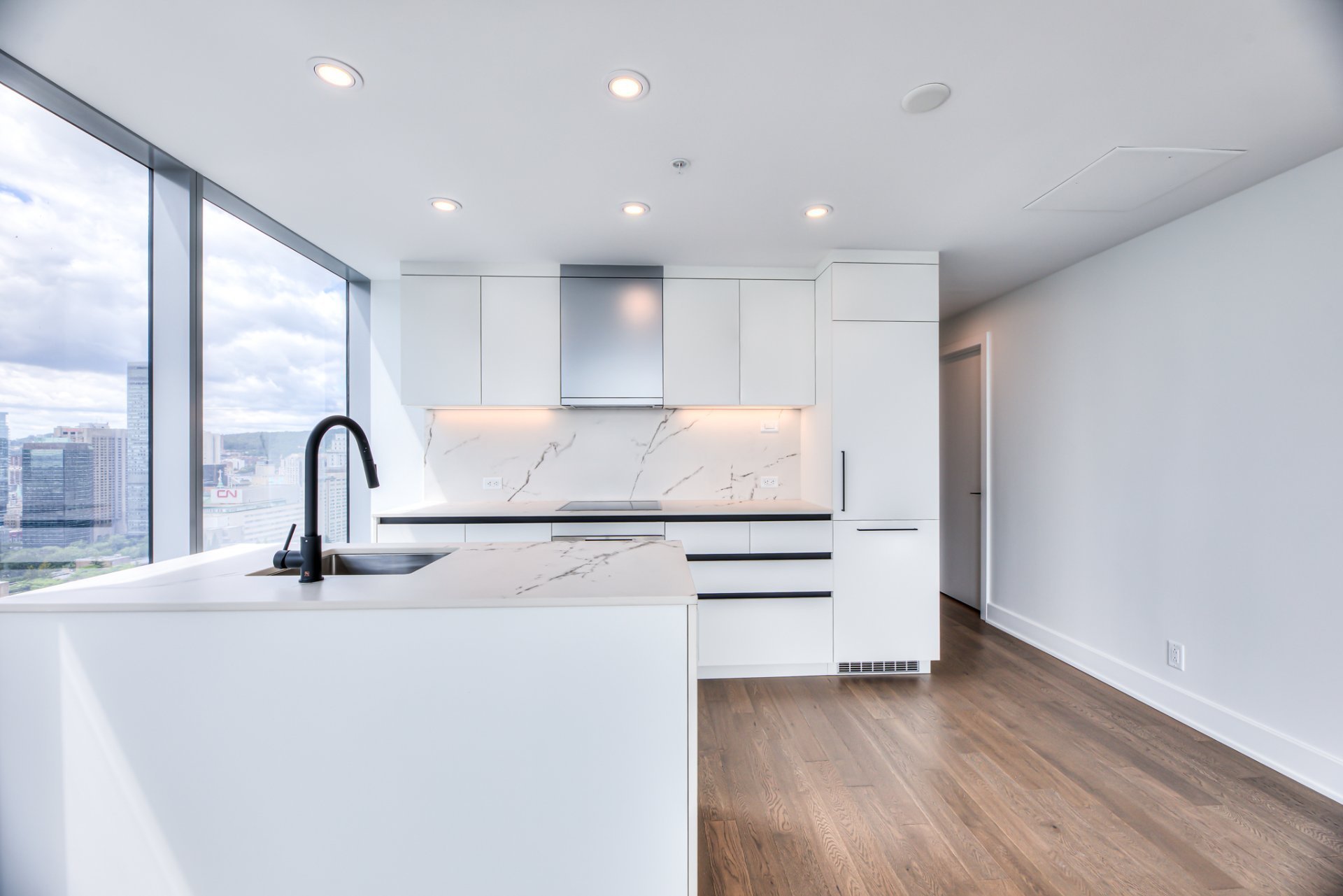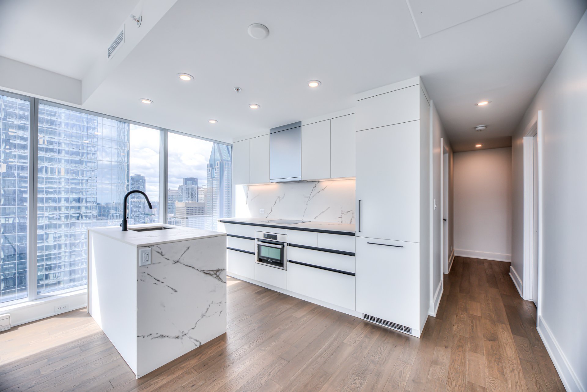 ** VICTORIA SUR LE PARC ** Luxurious 2-bedroom, 2-bathroom condo located on the 34th floor. This modern, sun-filled unit offers a coveted southwest orientation with spectacular views of Old Montreal, the river, and downtown. You'll be charmed by its floor-to-ceiling windows, high-end finishes, and open-concept living space. The spacious primary bedroom features an ensuite bathroom and a walk-in closet. The building offers over 10,000 sq. ft. of upscale amenities, including indoor and outdoor pools, a fully equipped gym, yoga room, elegant urban lounge, and 24/7 security. A chic, prime location not to be missed! Available October 1st 2025