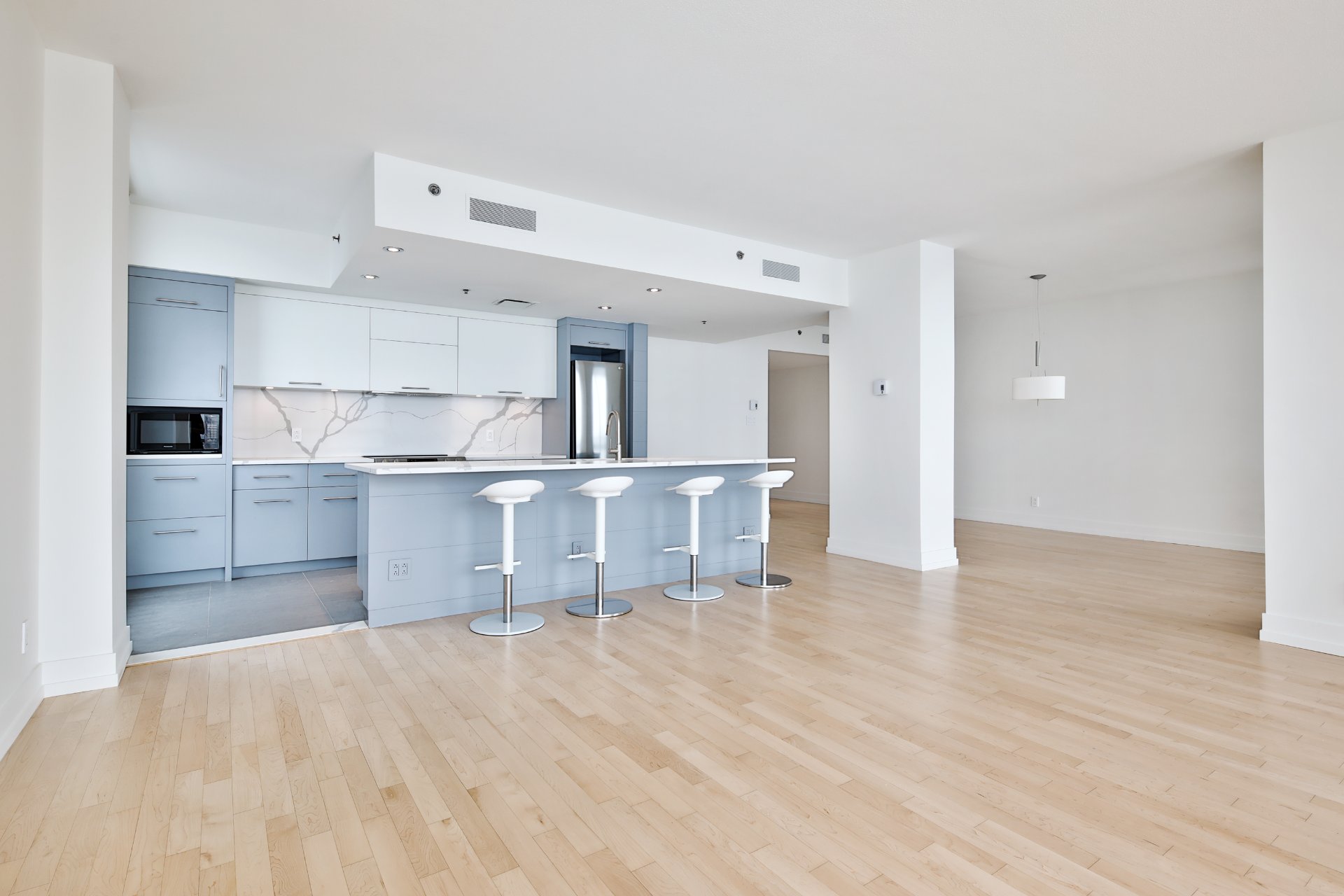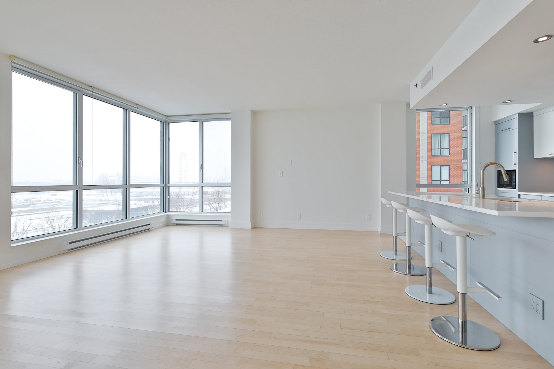 UNITÉ DE COIN avec vue directe sur le fleuve. Magnifique luminosité avec fenestration panoramique de 8 pieds et plafonds de 9 pieds. Condo du SOLANO de 1489 pc NETS avec balcon privé couvert en façade de 74pc devant le fleuve et le Yacht Club de Montréal. Planchers de bois sauf pour les 2 salles de bains (marbre/planchers chauffants) et céramiques en cuisine.