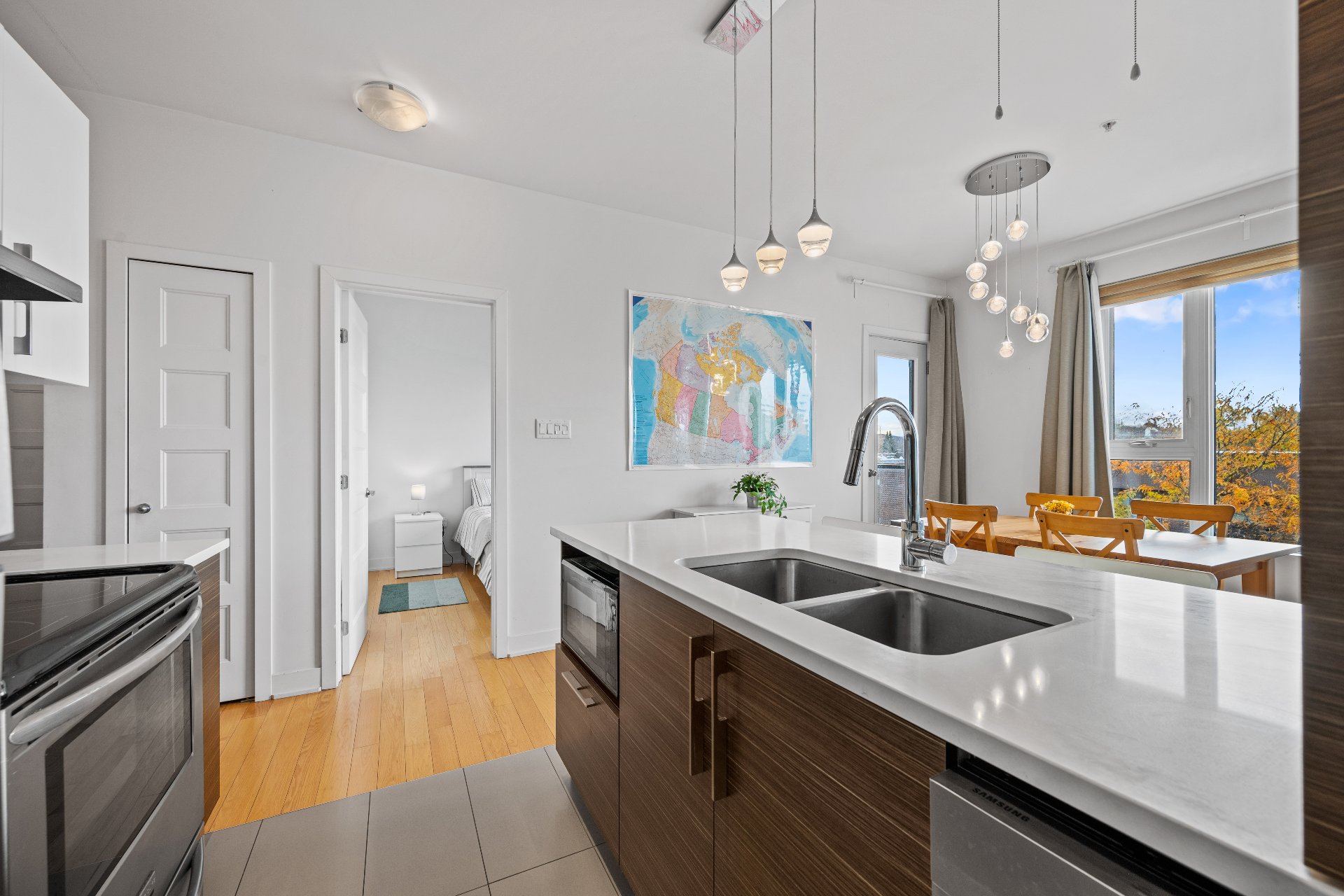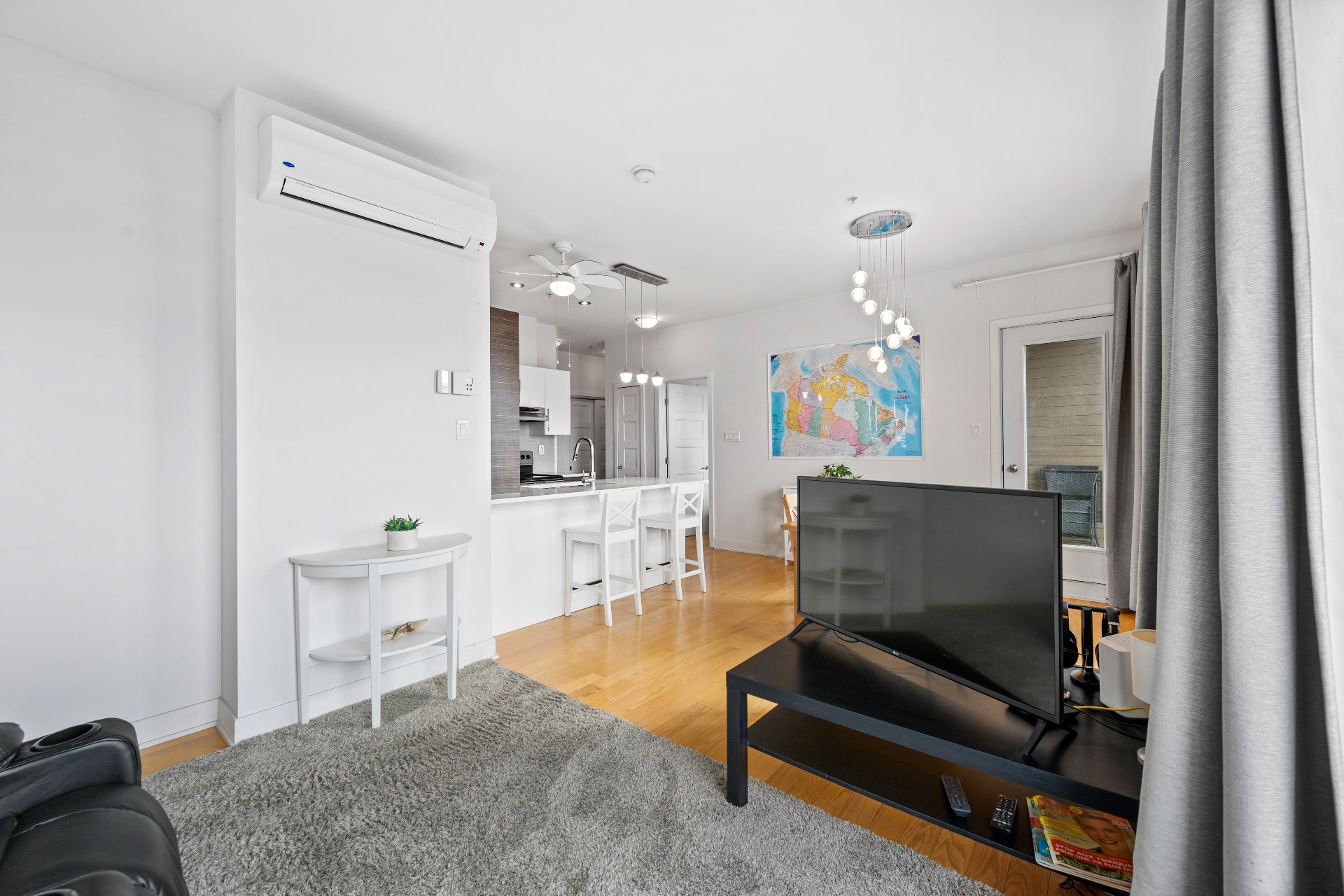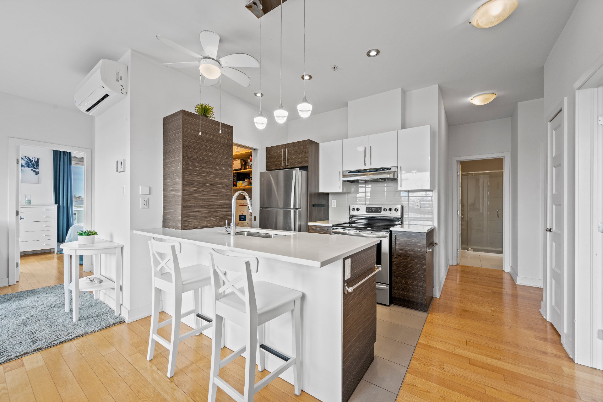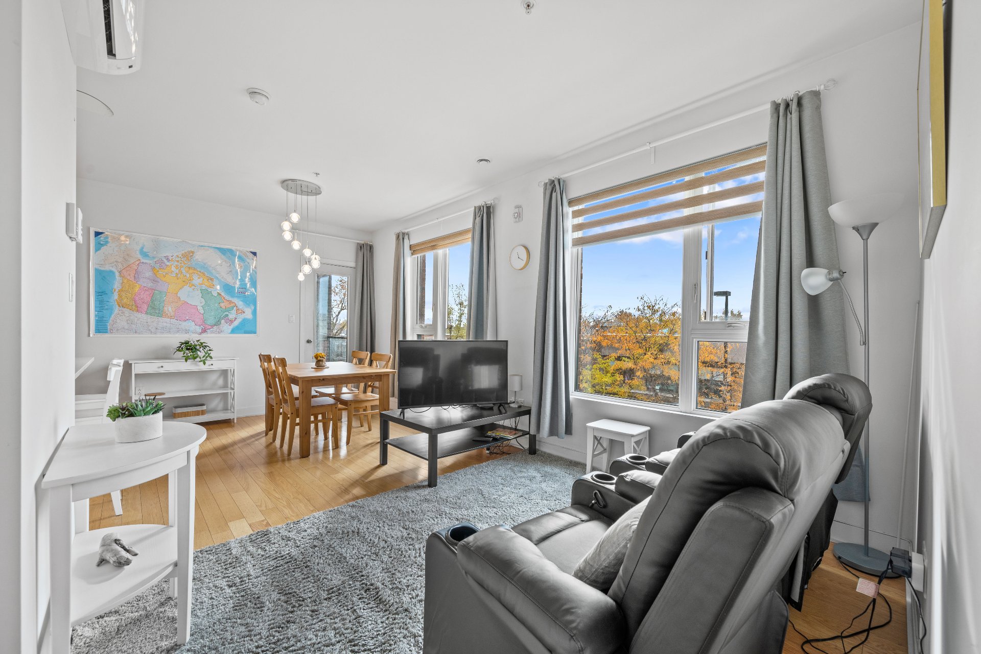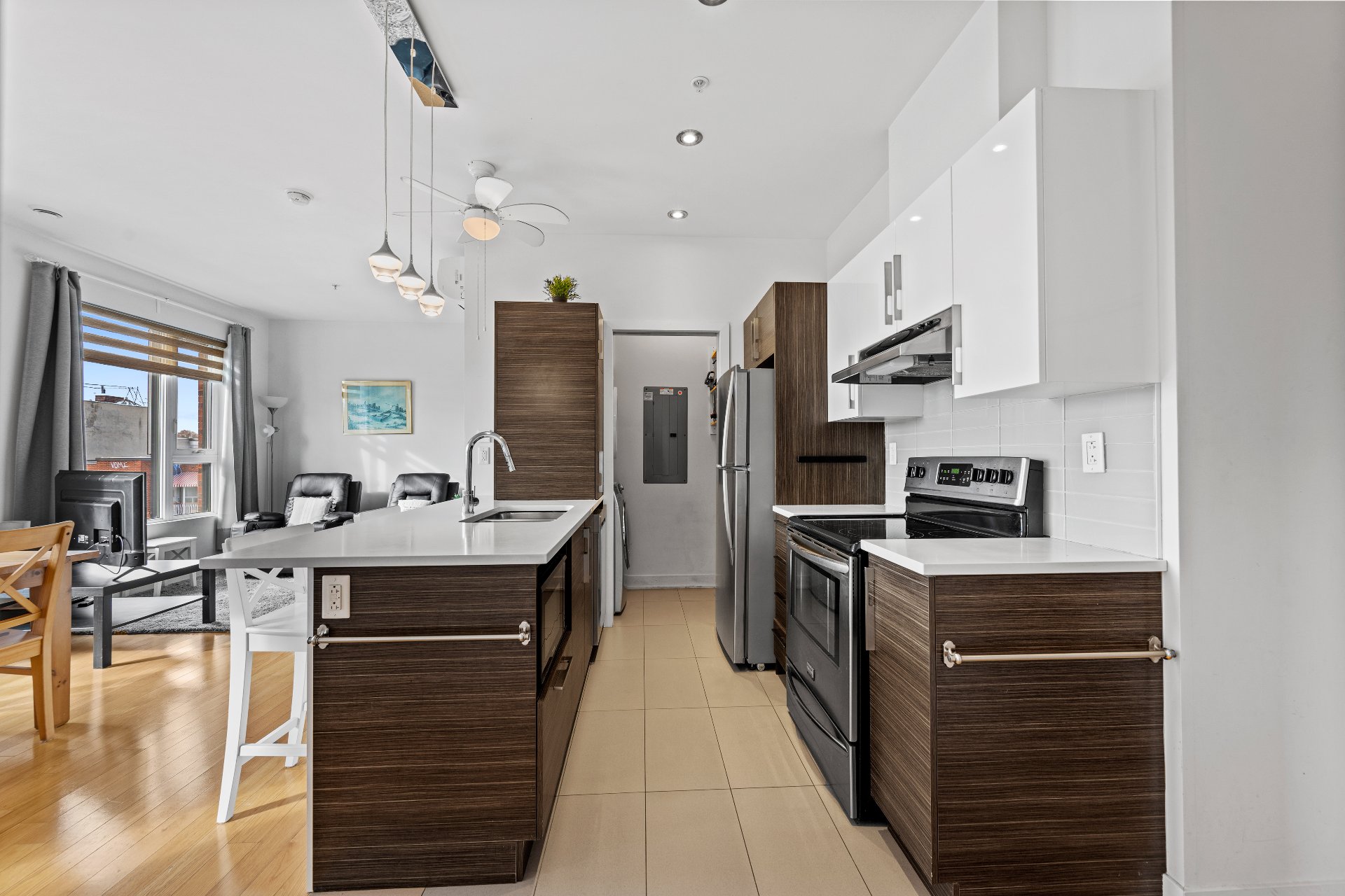 Superbe condo de 2 chambres situé dans le recherché Villeray, directement en face du métro Iberville. Aire ouverte lumineuse avec cuisine moderne et tous les électroménagers inclus. Salle de bain avec douche indépendante, stationnement au garage et rangement intérieur. Accès à une terrasse sur le toit offrant une vue panoramique. À proximité des écoles, parcs, commerces, restaurants et de l'hôpital Jean-Talon, ainsi que des bus 93-94-371 et de l'autoroute 19. Une opportunité à ne pas manquer !