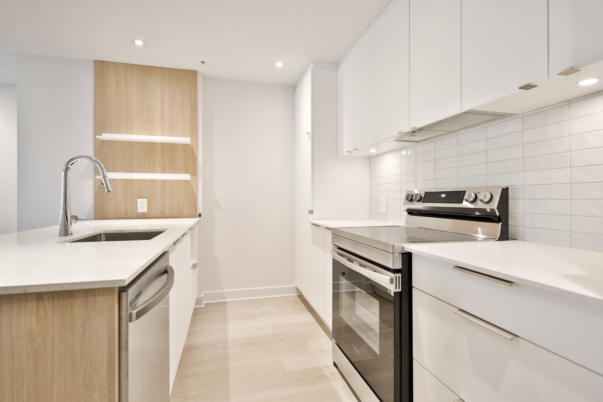 Located in the heart of Saint-Michel, near Villeray and Parc Frédéric Back, this modern 2th-floor apartment offers an exceptional living experience. Featuring 2 bedrooms and 1 bathroom, this 899-square-foot apartment is designed for comfort and functionality, with high-end finishes. The rent, includes 5 appliances, hot water and light fixtures. Large windows flood the space with natural light, creating a warm atmosphere. The building offers quality amenities, including a rooftop terrace with panoramic views, a gym, a yoga room and a shared lounge.