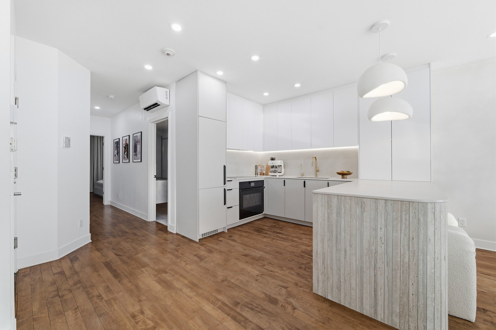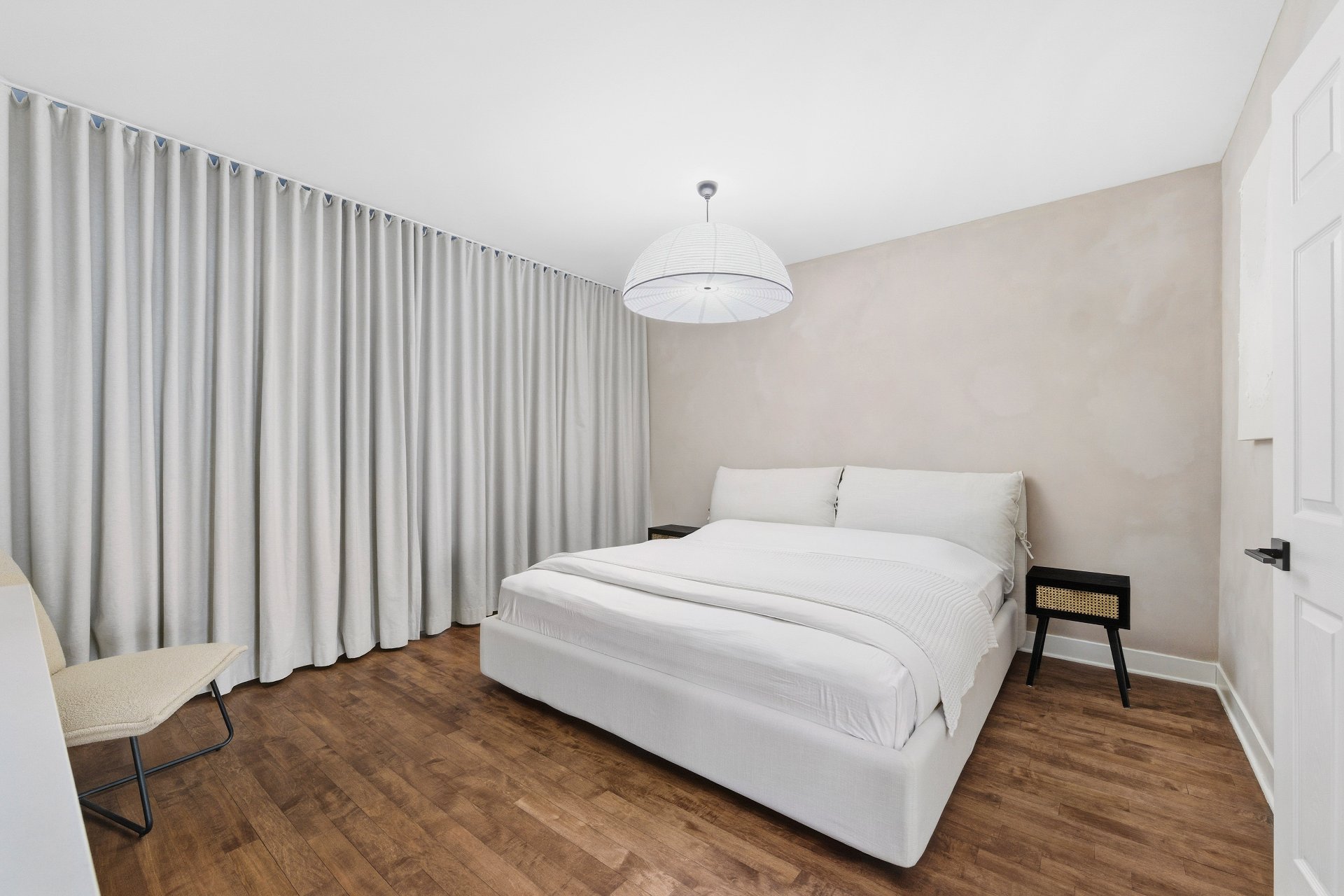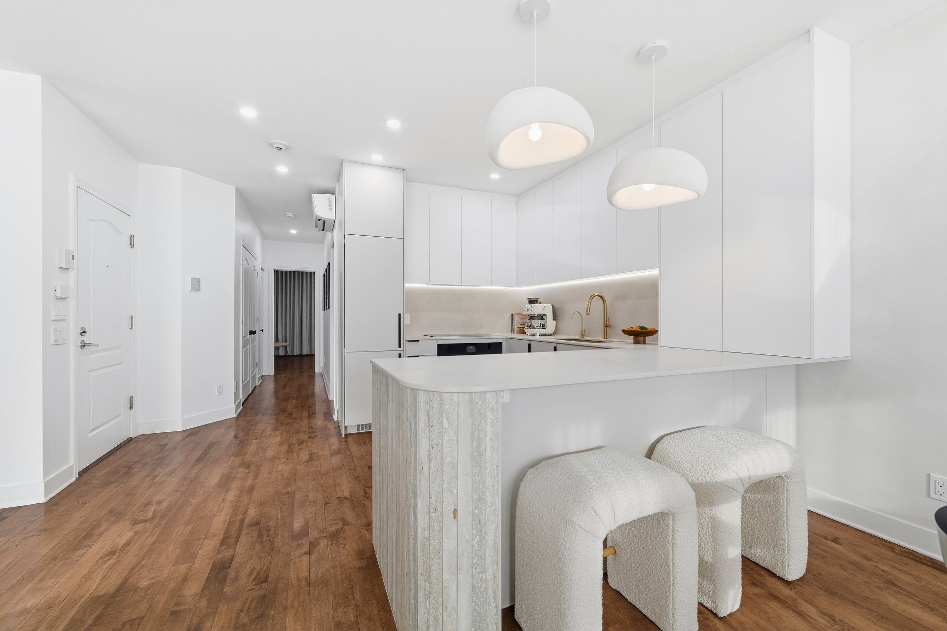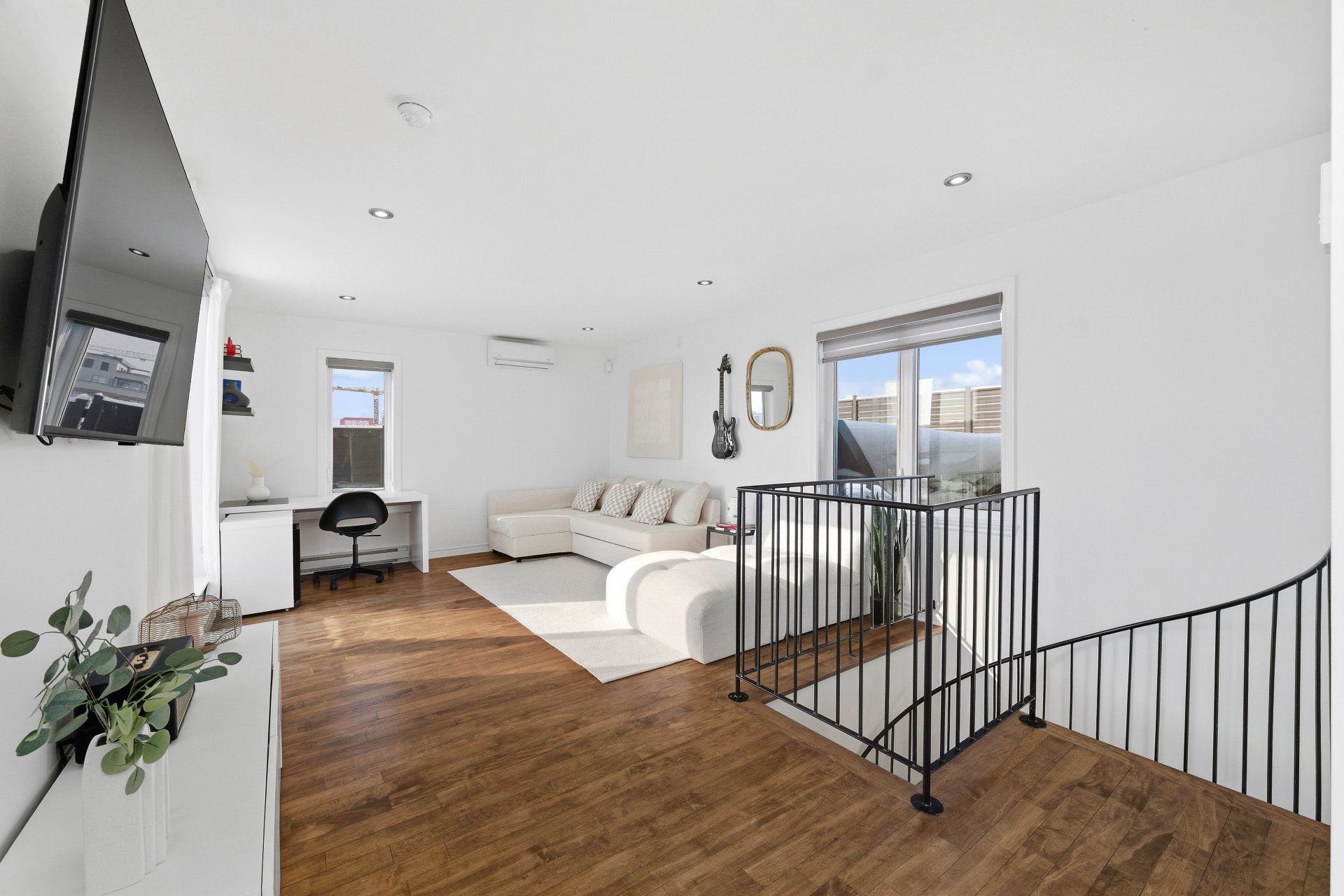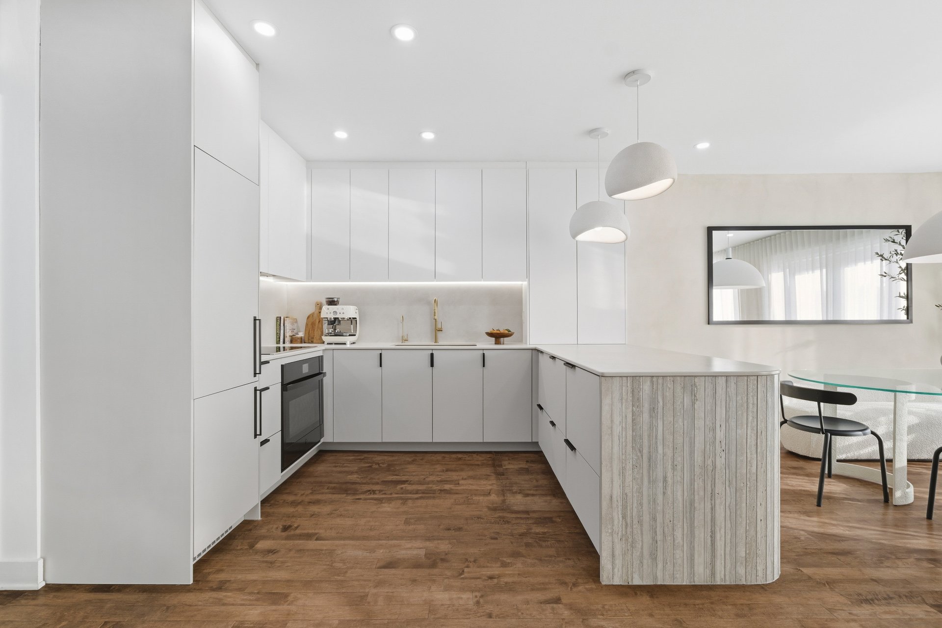 CUISINE : Réfrigérateur LG entièrement intégré, lave-vaisselle Fisher & Paykel à deux tiroirs intégrés, four GE, plaque à induction Frigidaire et micro-ondes Danby dissimulé. SALON / SALLE À MANGER : Stores filtrant la lumière, rideaux voilages sur mesure pleine hauteur, domotique Kasa compatible Alexa et Wi-Fi. CHAMBRE RDC : Rideaux et stores occultants pleine hauteur. MEZZANINE : Canapé-lit inclus.