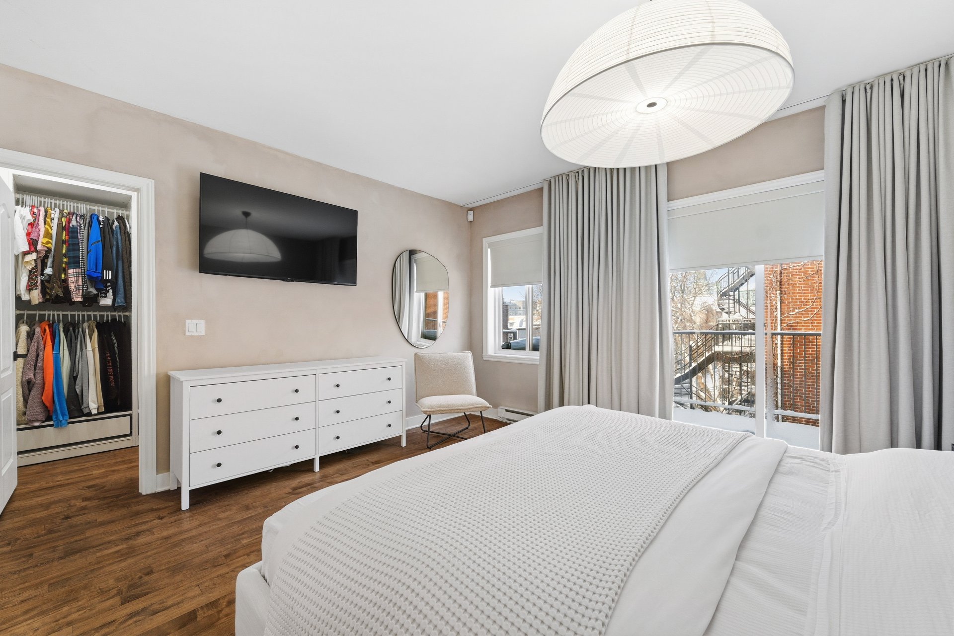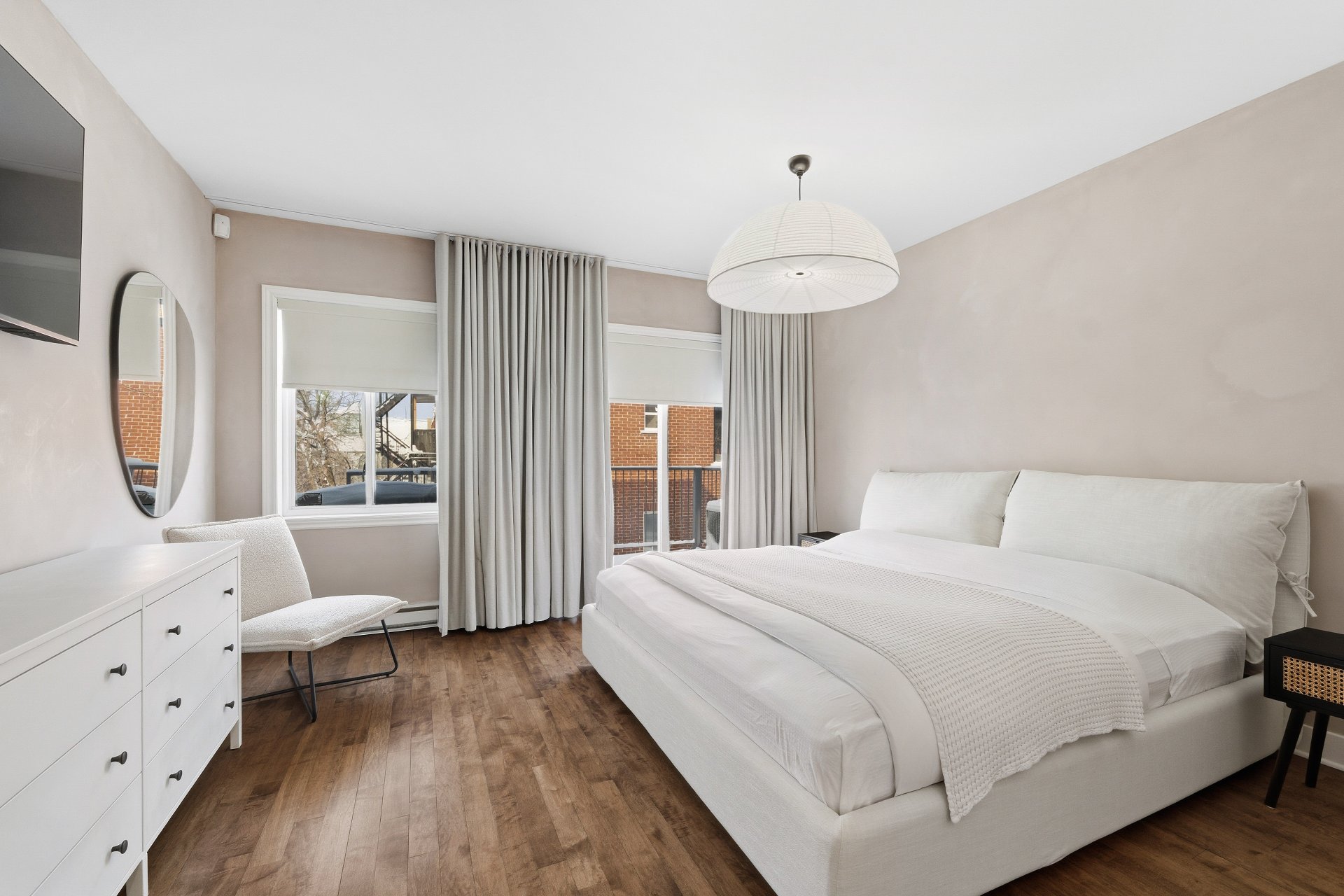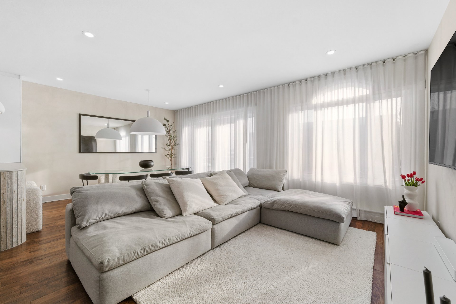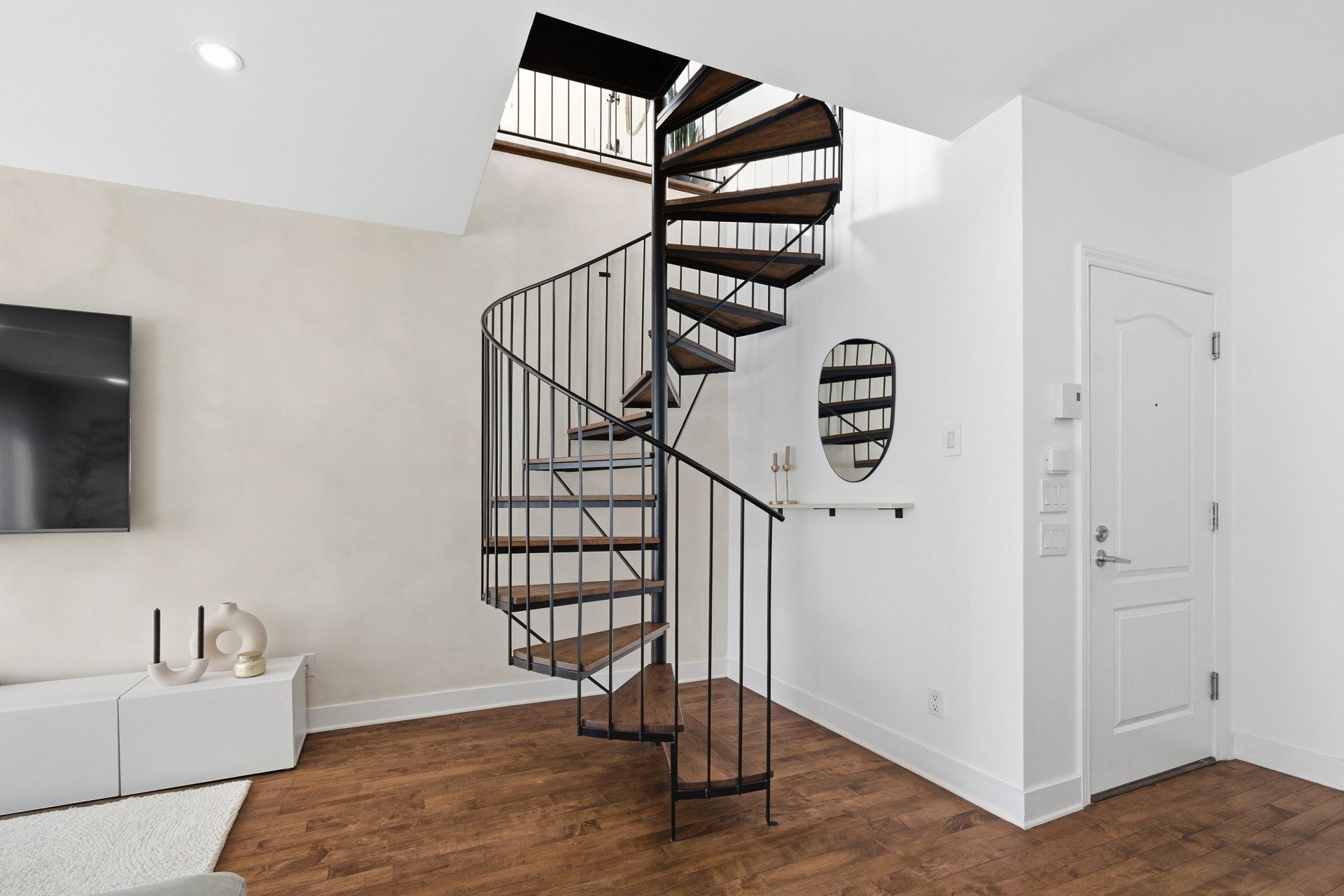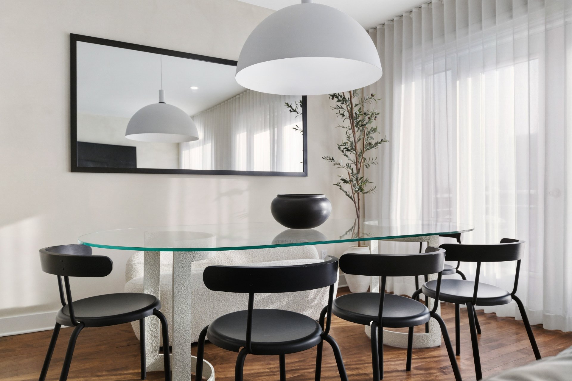 CUISINE : Réfrigérateur LG entièrement intégré, lave-vaisselle Fisher & Paykel à deux tiroirs intégrés, four GE, plaque à induction Frigidaire et micro-ondes Danby dissimulé. SALON / SALLE À MANGER : Stores filtrant la lumière, rideaux voilages sur mesure pleine hauteur, domotique Kasa compatible Alexa et Wi-Fi. CHAMBRE RDC : Rideaux et stores occultants pleine hauteur. MEZZANINE : Canapé-lit inclus.