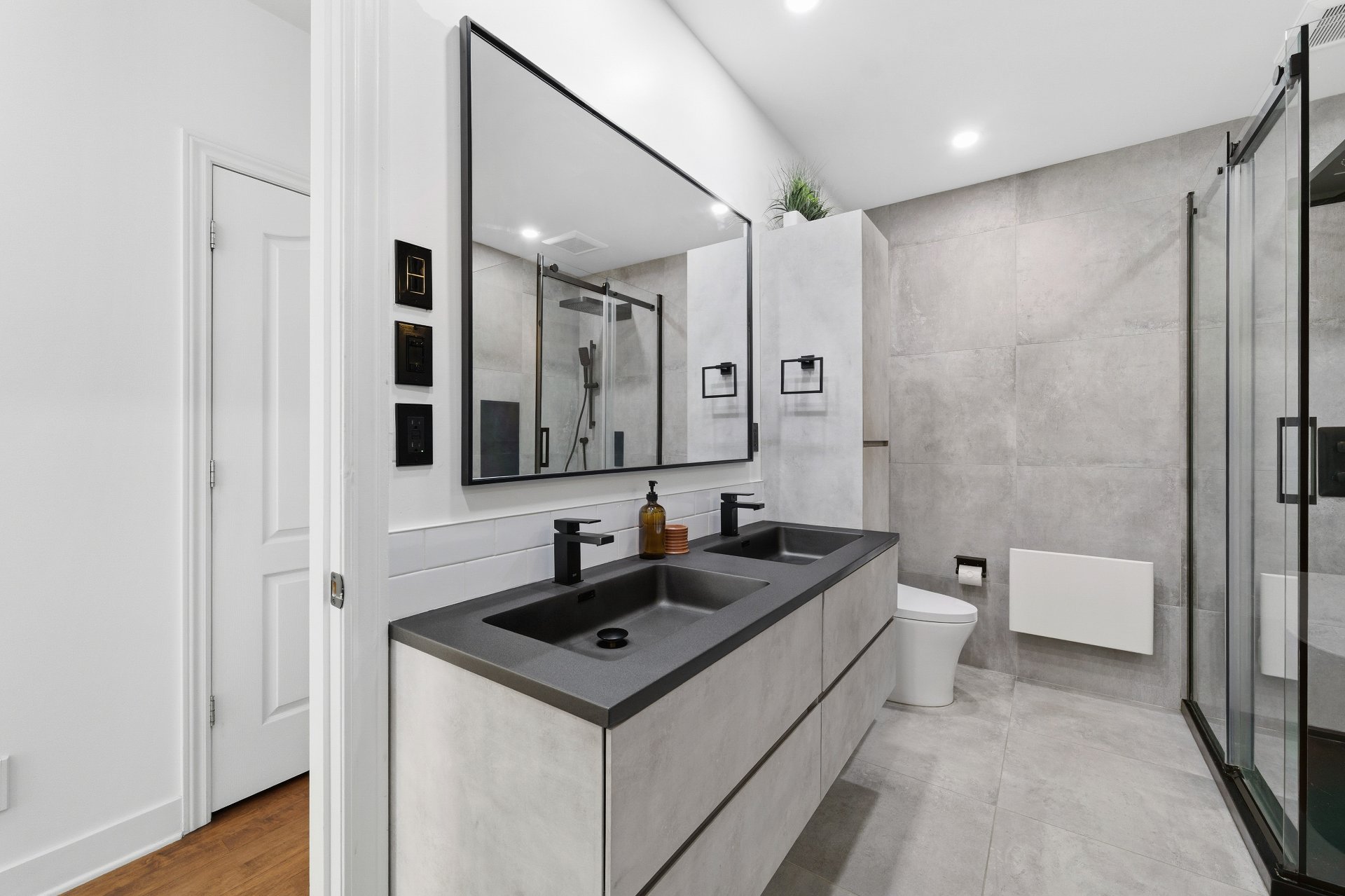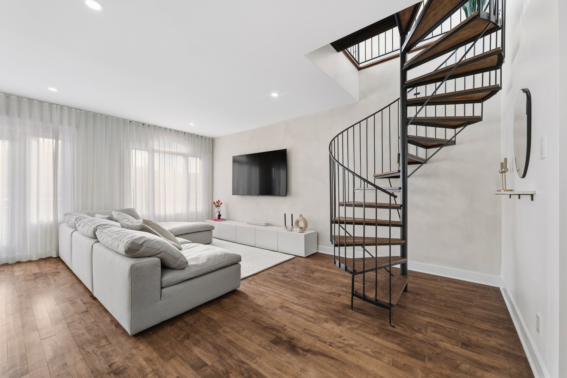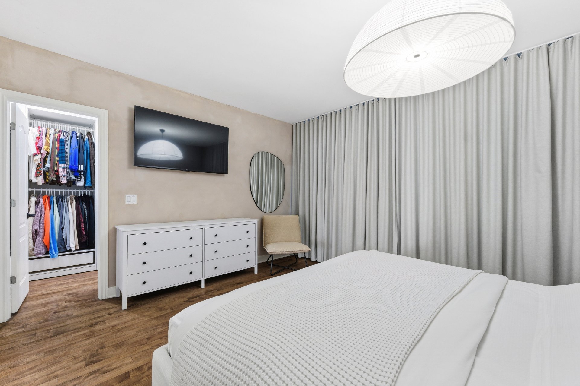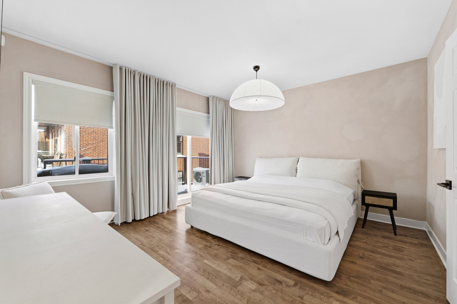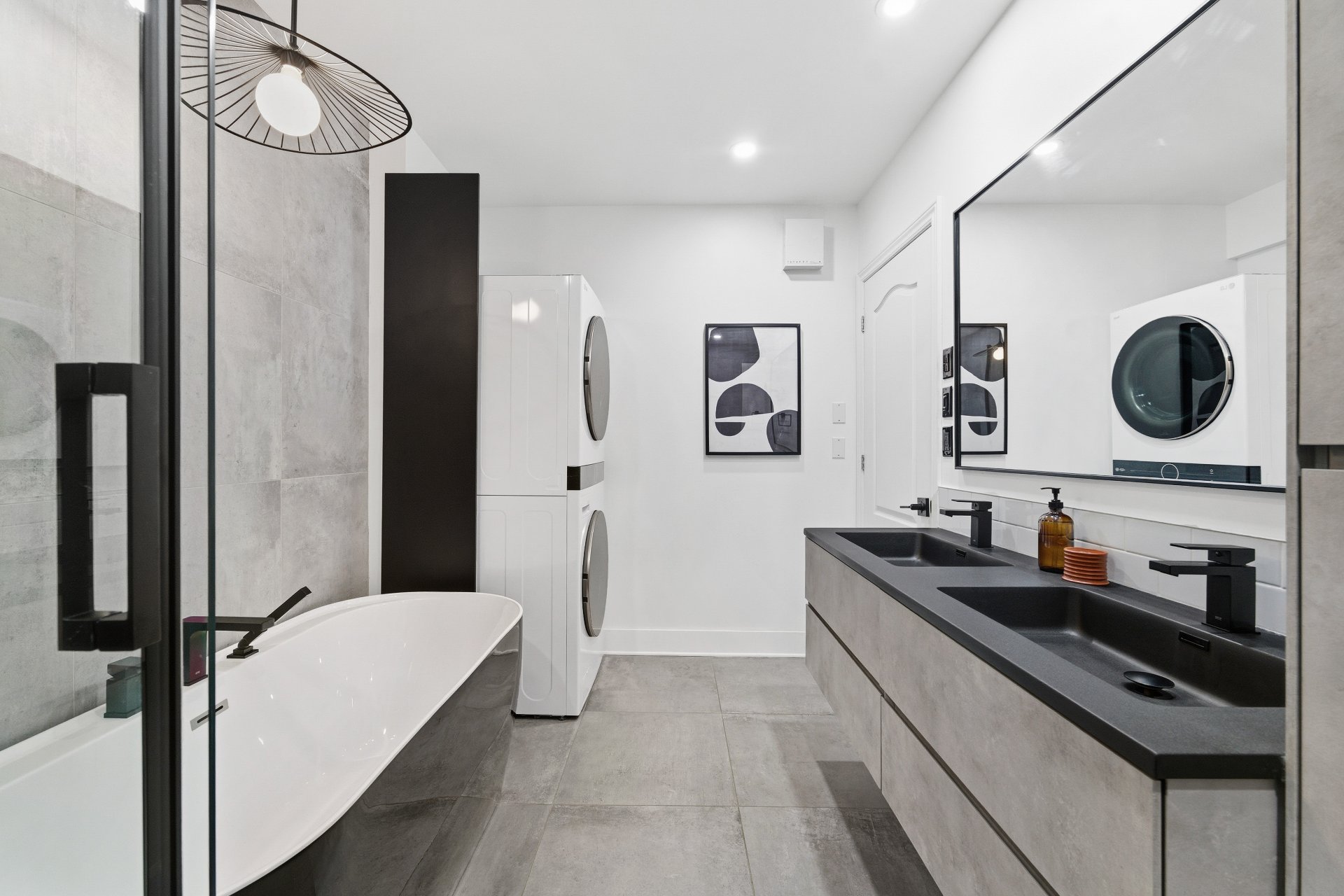 CUISINE : Réfrigérateur LG entièrement intégré, lave-vaisselle Fisher & Paykel à deux tiroirs intégrés, four GE, plaque à induction Frigidaire et micro-ondes Danby dissimulé. SALON / SALLE À MANGER : Stores filtrant la lumière, rideaux voilages sur mesure pleine hauteur, domotique Kasa compatible Alexa et Wi-Fi. CHAMBRE RDC : Rideaux et stores occultants pleine hauteur. MEZZANINE : Canapé-lit inclus.