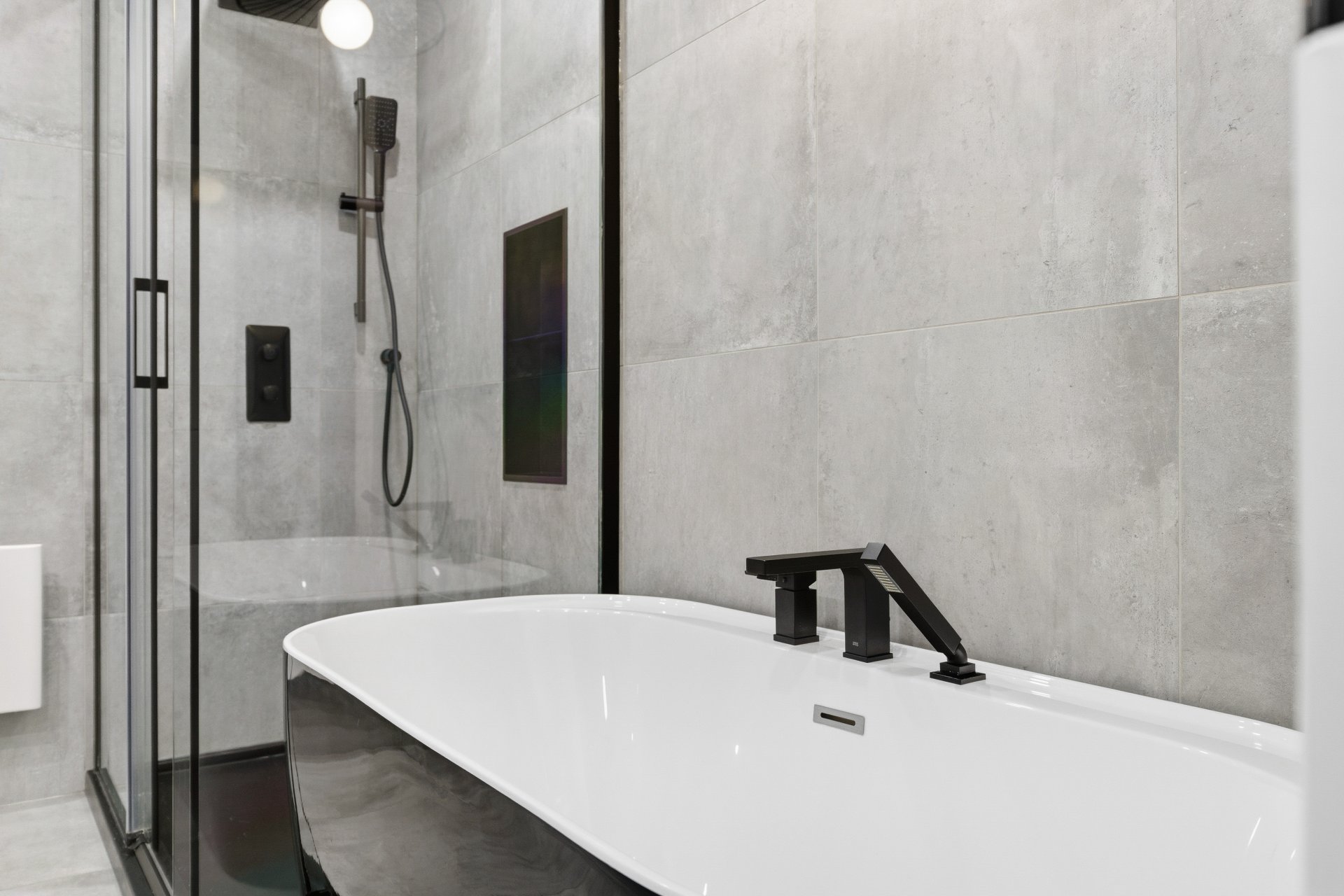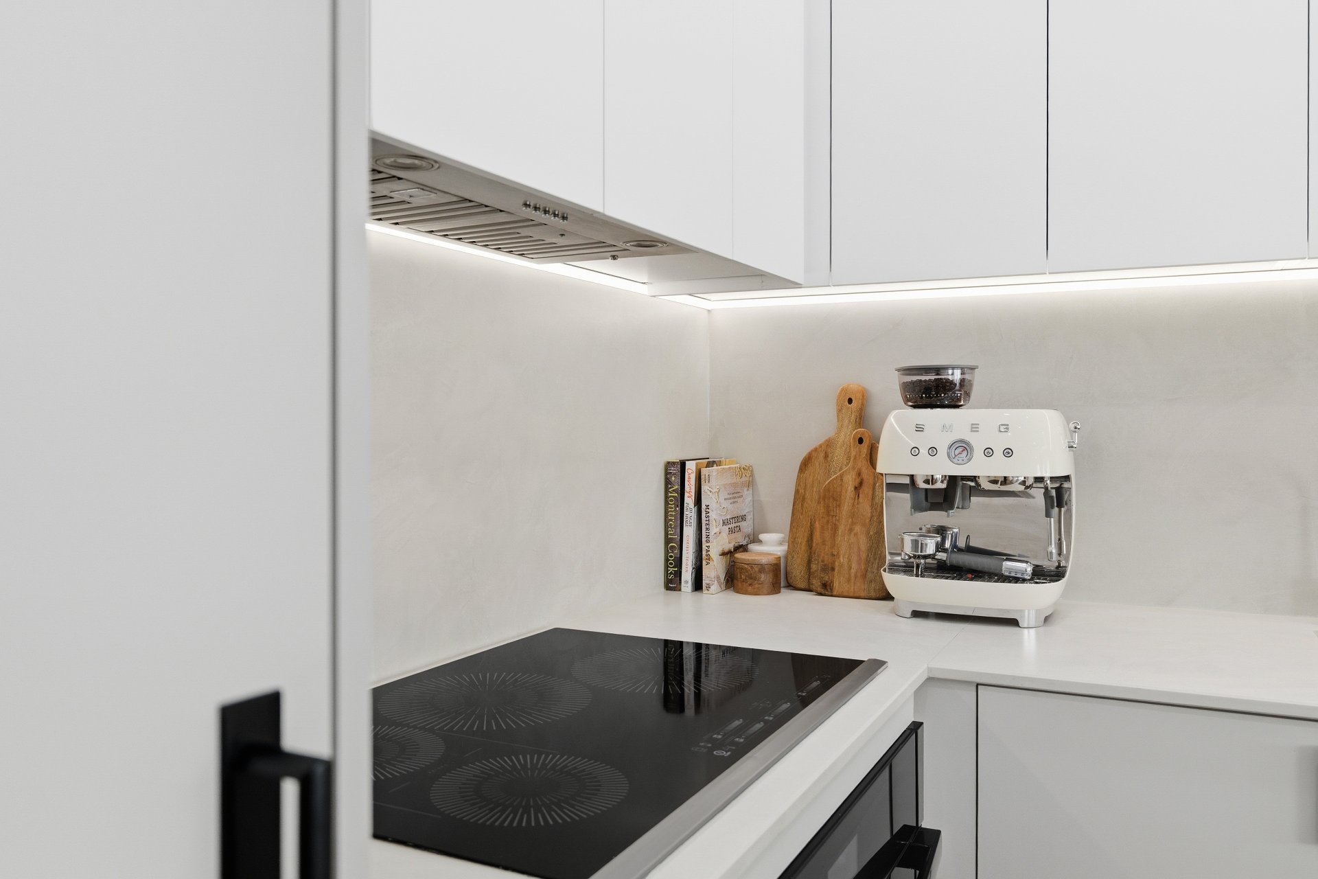 luxueuse. Comptoirs et dosseret en Dekton (Cosentino).