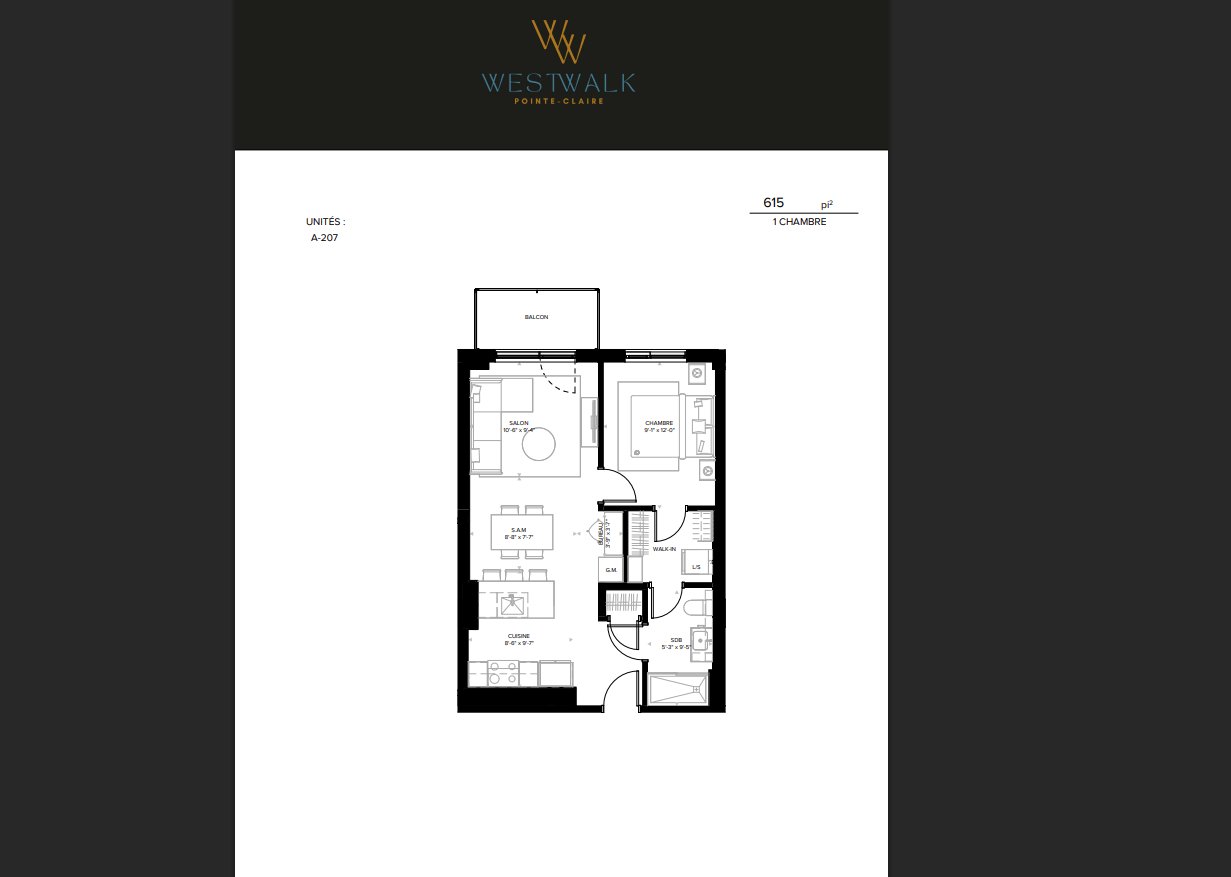 Westwalk Pointe-Claire is a luxury apartment project located in Pointe-Claire, in Montréal's West Island. The project includes lofts as well as one, two, and three-bedroom units, along with common areas such as a fitness room, a rooftop pickleball court, a virtual golf room, and coworking spaces. It also offers convenient access to shops and public transit, as well as an environment that encourages walking. Loft starting at $1,500, 1-Bedroom starting at $1,650, 2-Bedroom starting at $2,400, 3-Bedroom starting at $3,200. More info at westwalk.ca. Occpancy date starting April 1st 2027