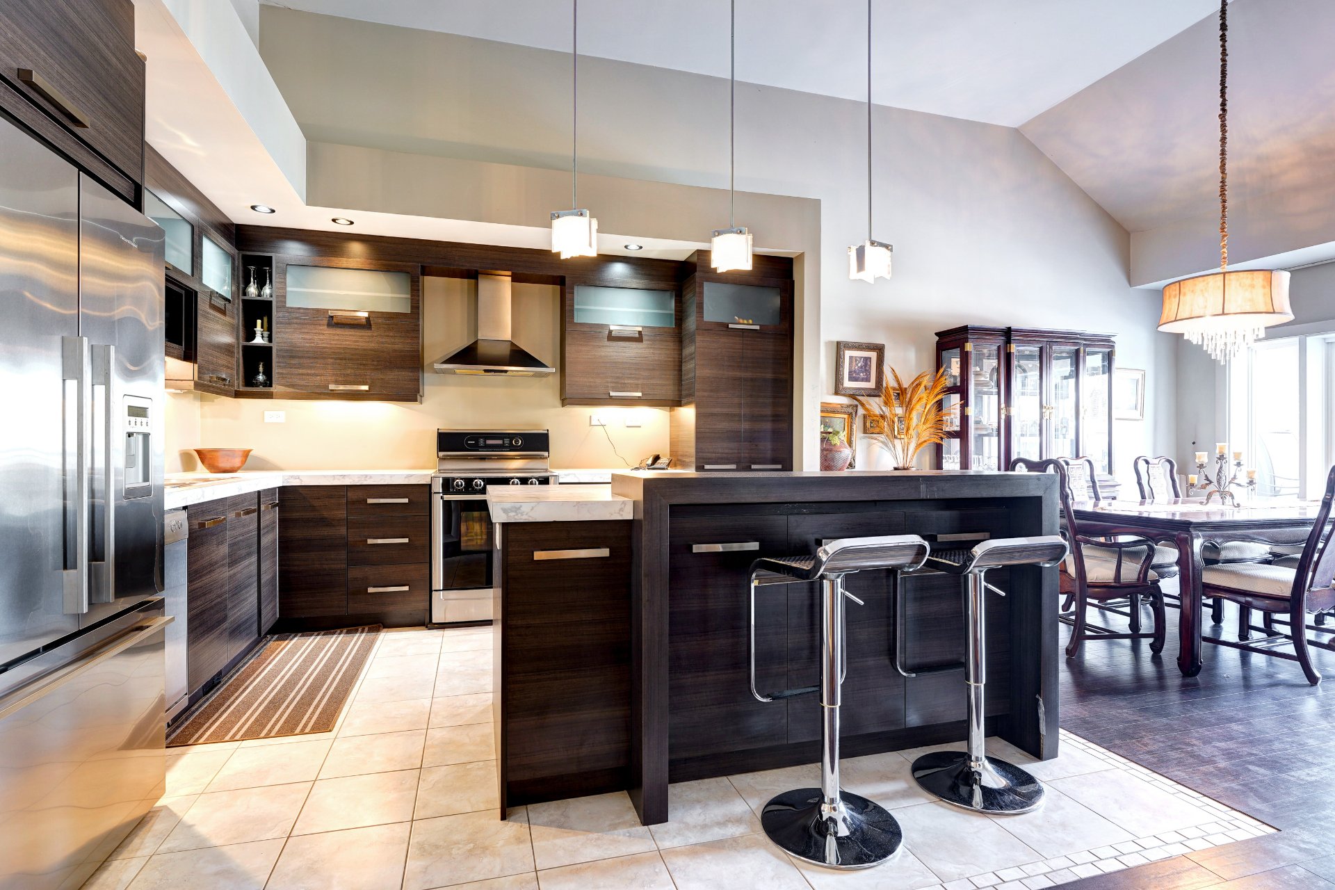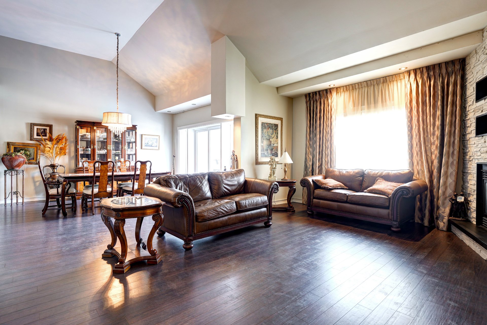 une circulation fluide et conviviale. Le plafond cathédrale