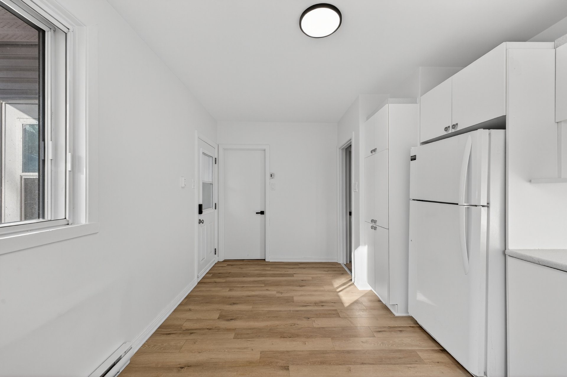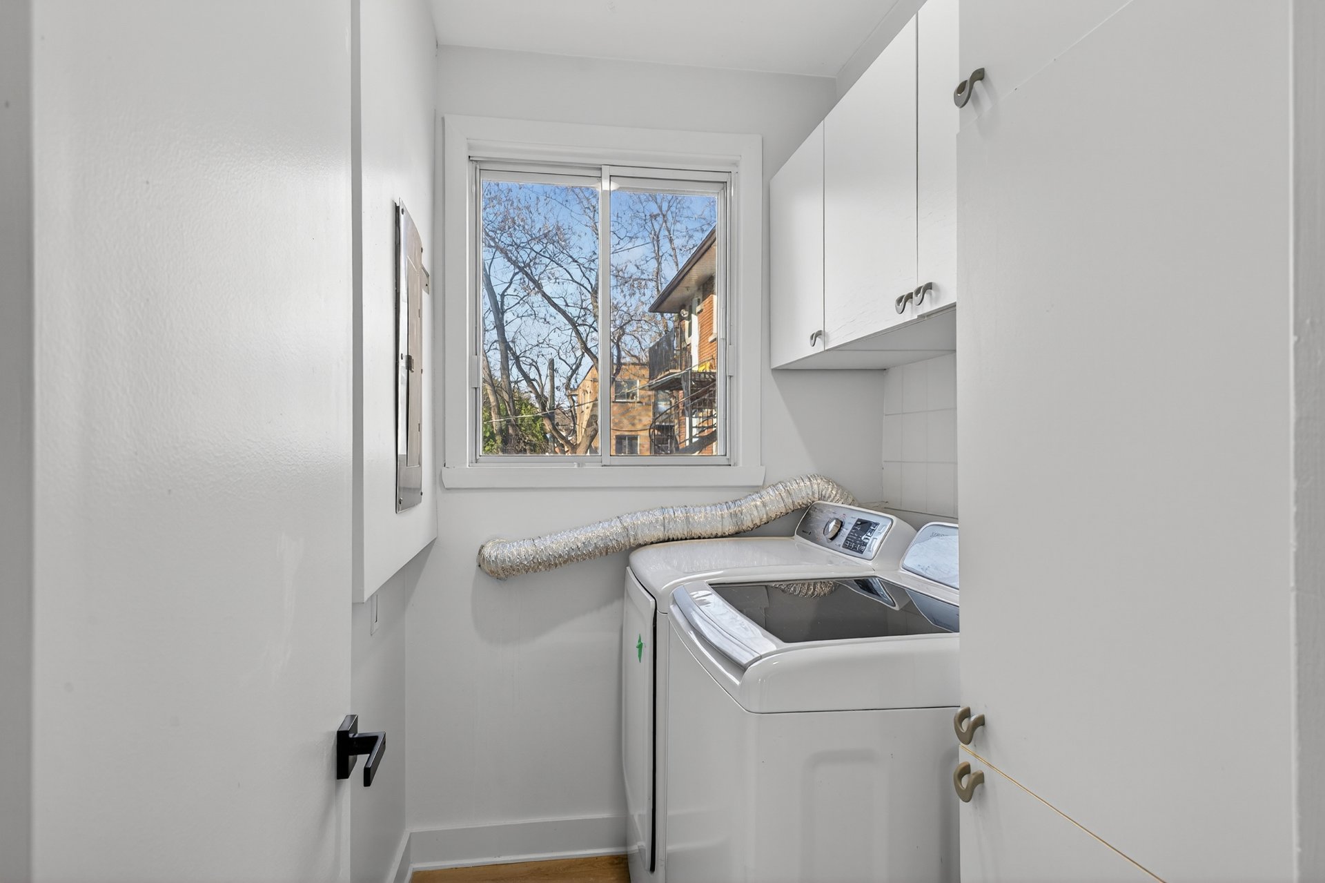 murs fraîchement peints, un espace buanderie séparé et un