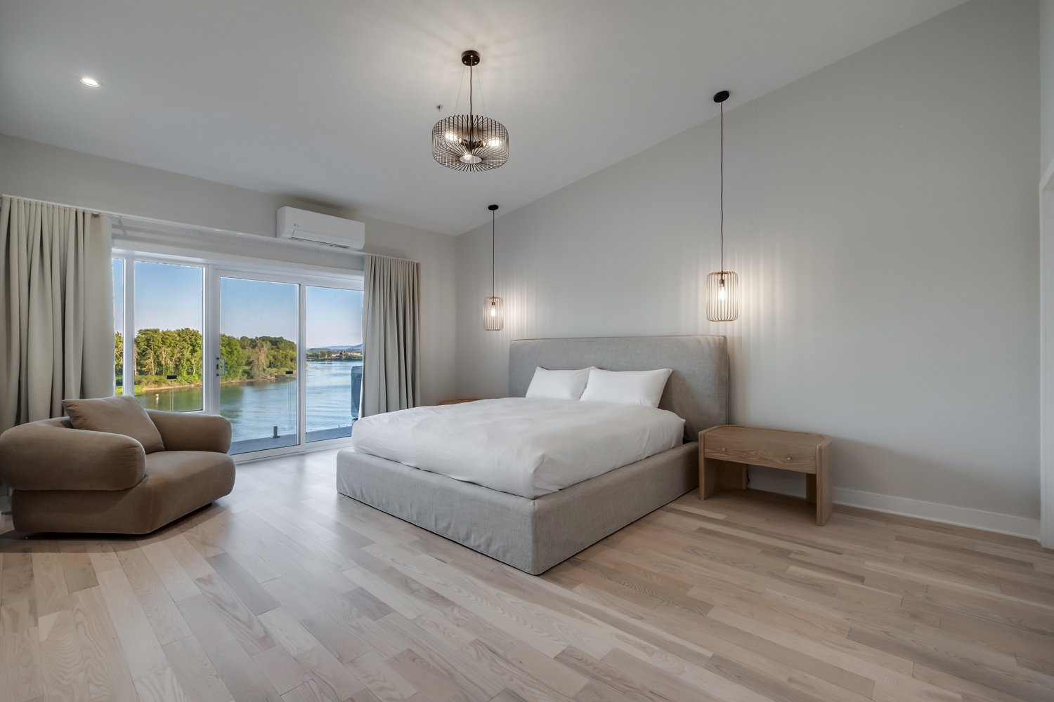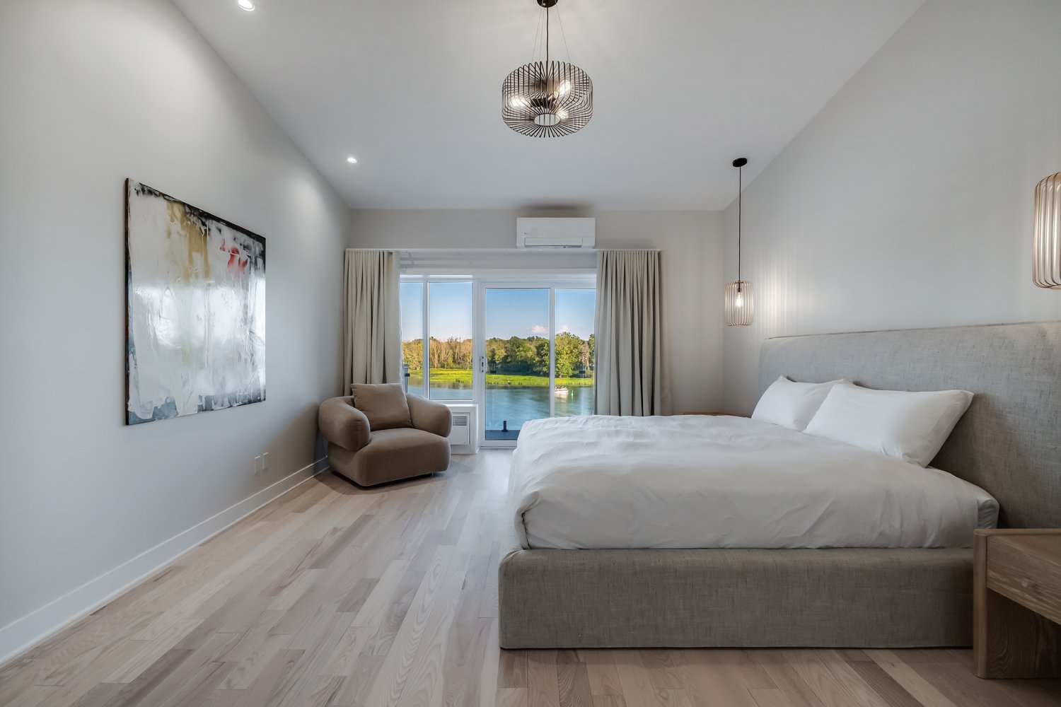 Les condos de luxe issus de la conversion de l'Hôtel Les Trois Tilleuls sont maintenant disponibles ! Ce condo moderne, entièrement rénové, se distingue par sa conception à aire ouverte, ses matériaux de qualité et sa luminosité abondante grâce à de grandes fenêtres habillées de voilages légers et de rideaux pleine hauteur. Offrant 3 chambres et 2 salles de bain, il bénéficie d'une vue imprenable ainsi que d'un accès direct à la rivière Richelieu. Parmi ses atouts : piscine intérieure creusée, gym complet, thermopompes murales et électroménagers inclus. Son plafond majestueux de 10 pieds saura vous séduire dès la première visite. Faites vite!