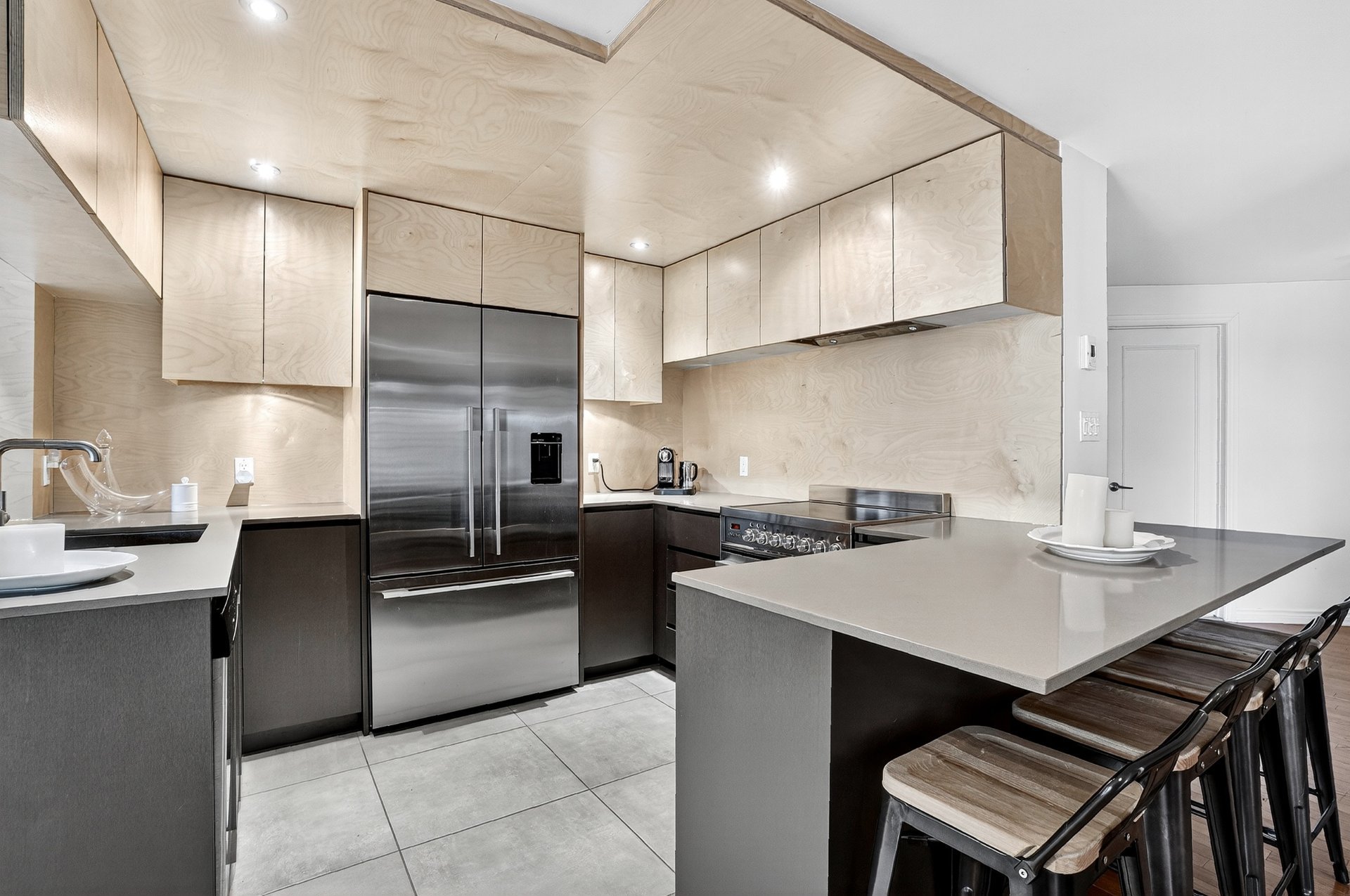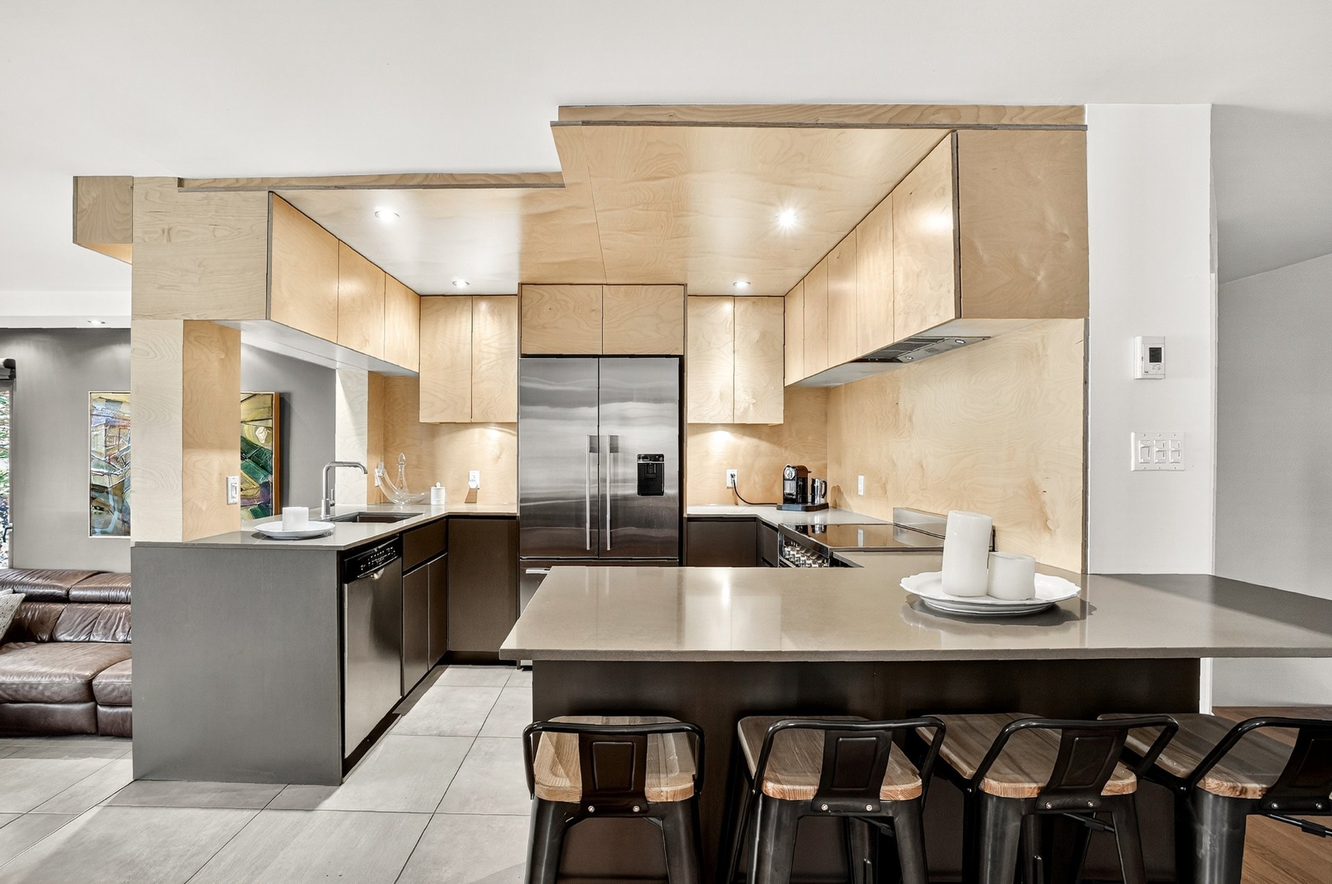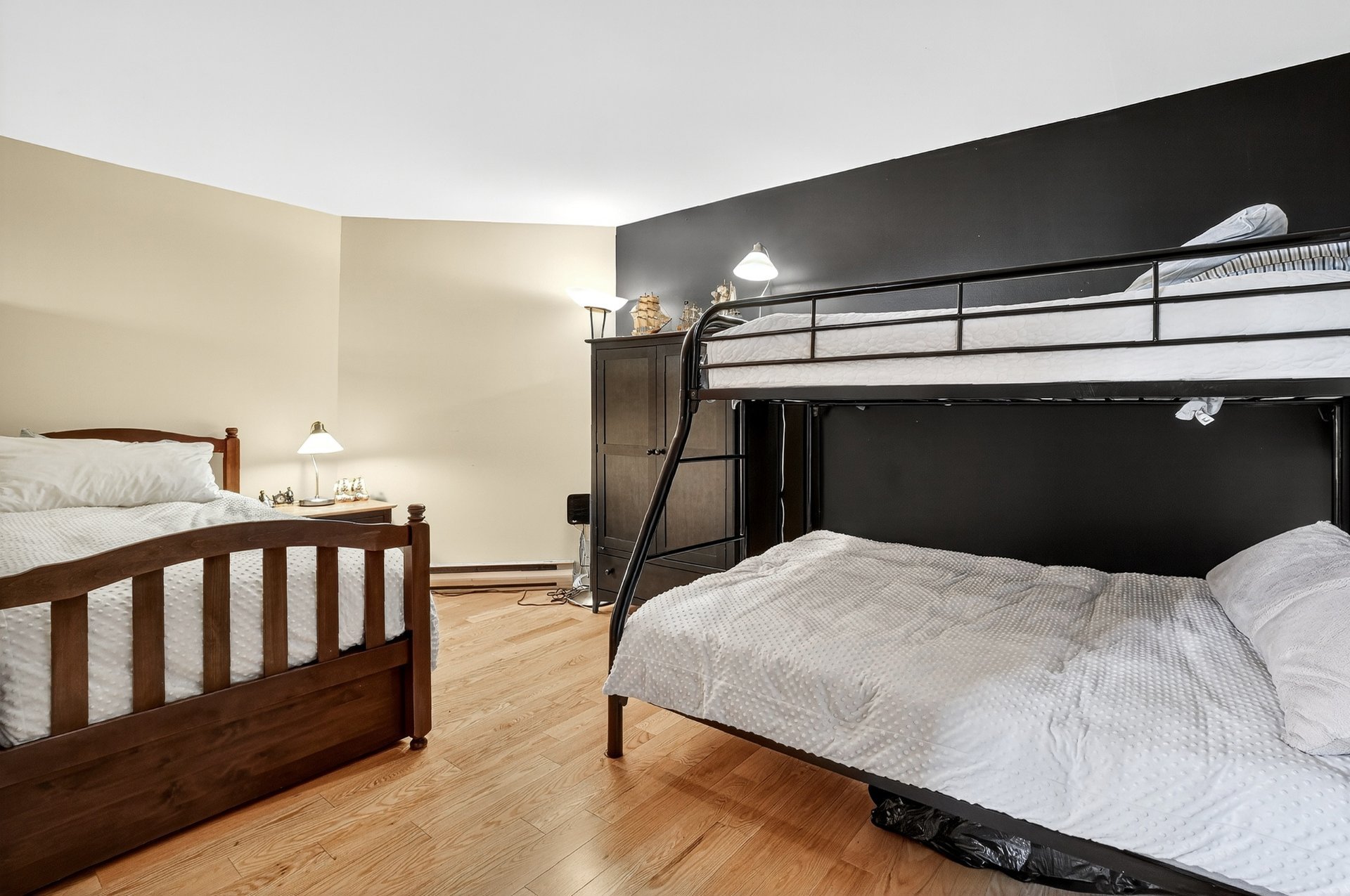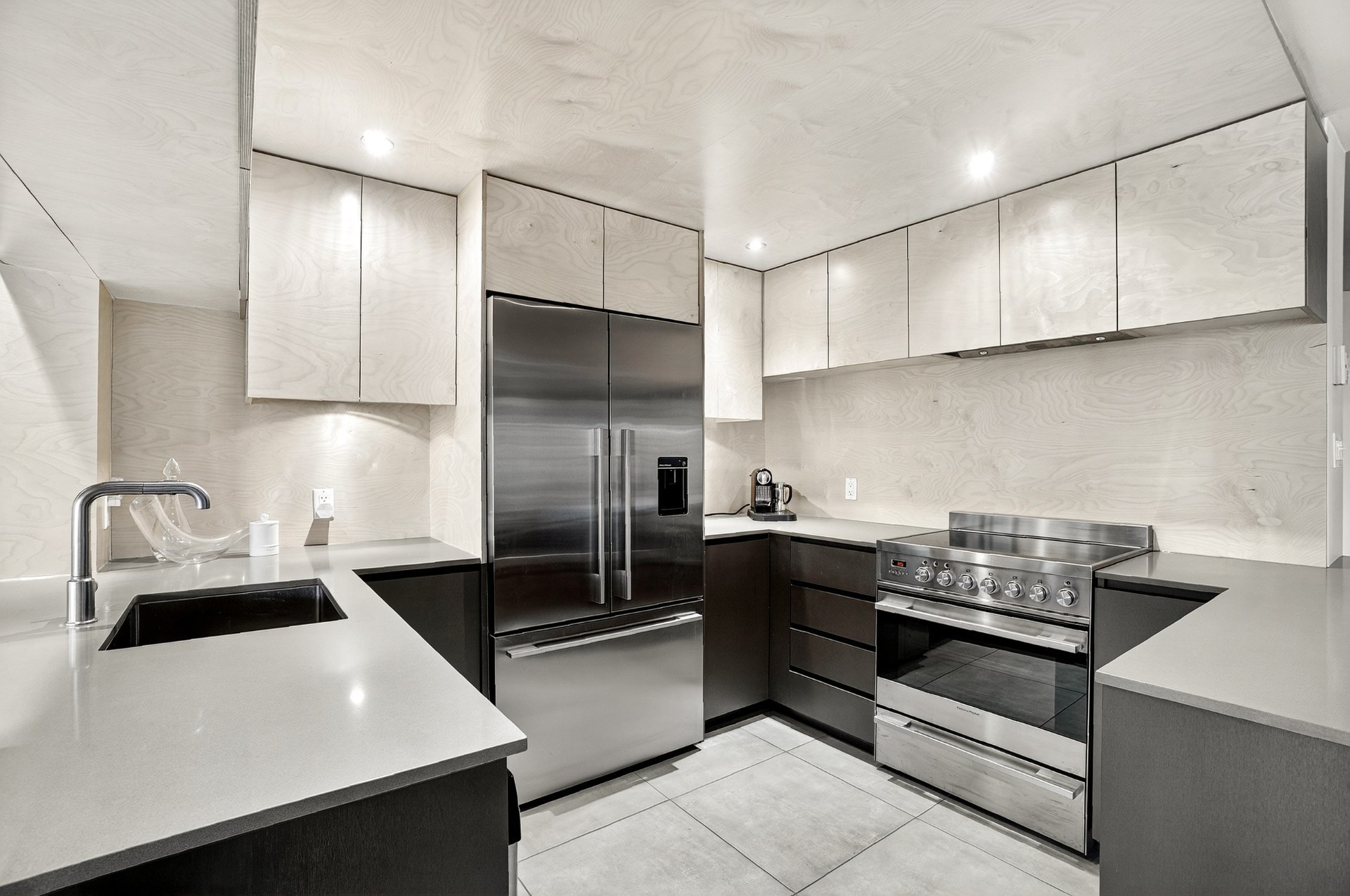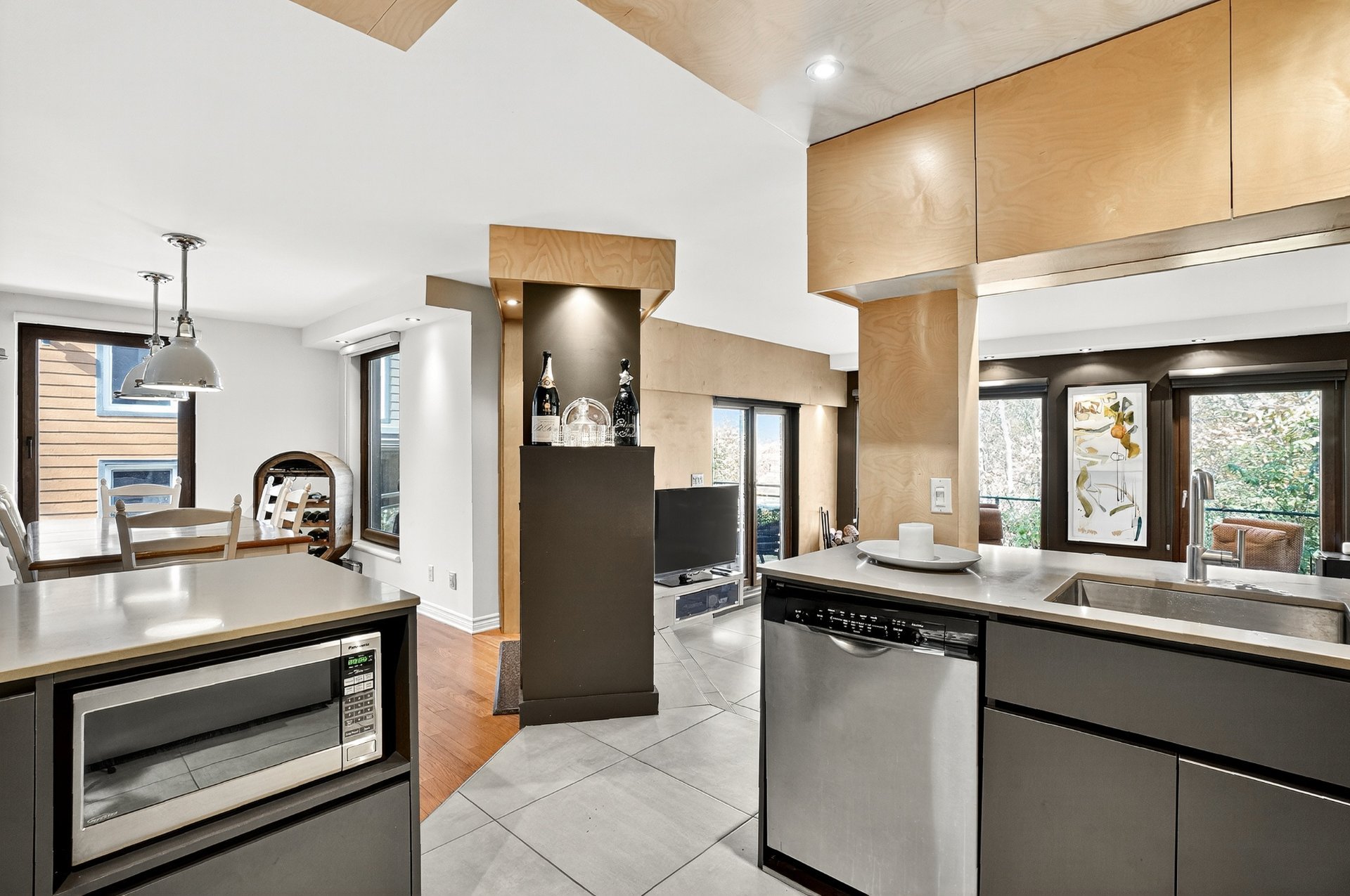 Stunning ski-in/ski-out condo located in the heart of Saint-Sauveur! Featuring 4 spacious bedrooms and 2 bathrooms, it has been tastefully renovated to combine comfort and style. The bright living area opens onto a terrace offering breathtaking mountain views, the perfect spot to relax after a day on the slopes. Enjoy direct access to the ski trails and proximity to shops, restaurants, and village activities. A rare opportunity in a sought-after location with quick occupancy. Fireplace wood included.