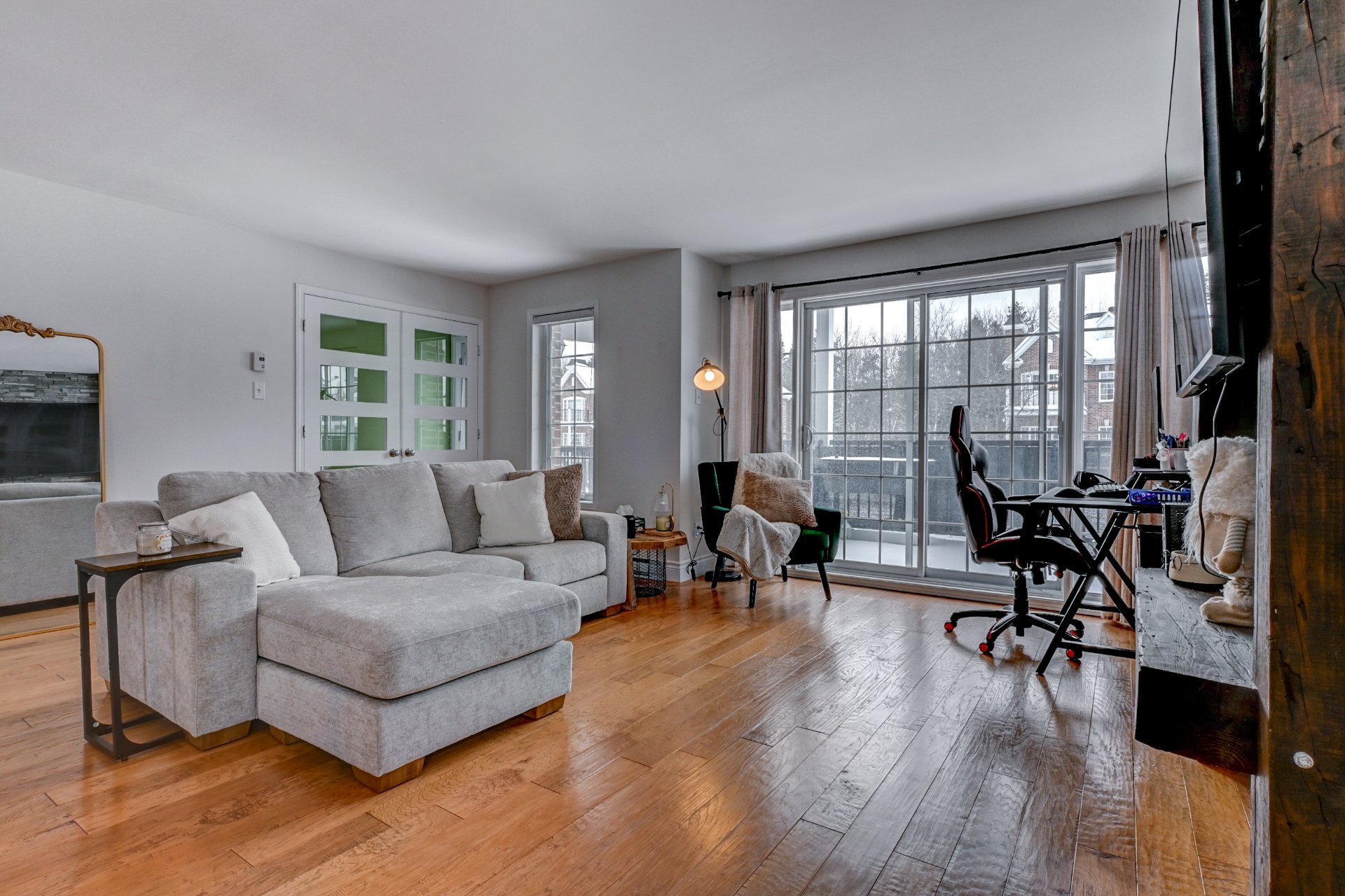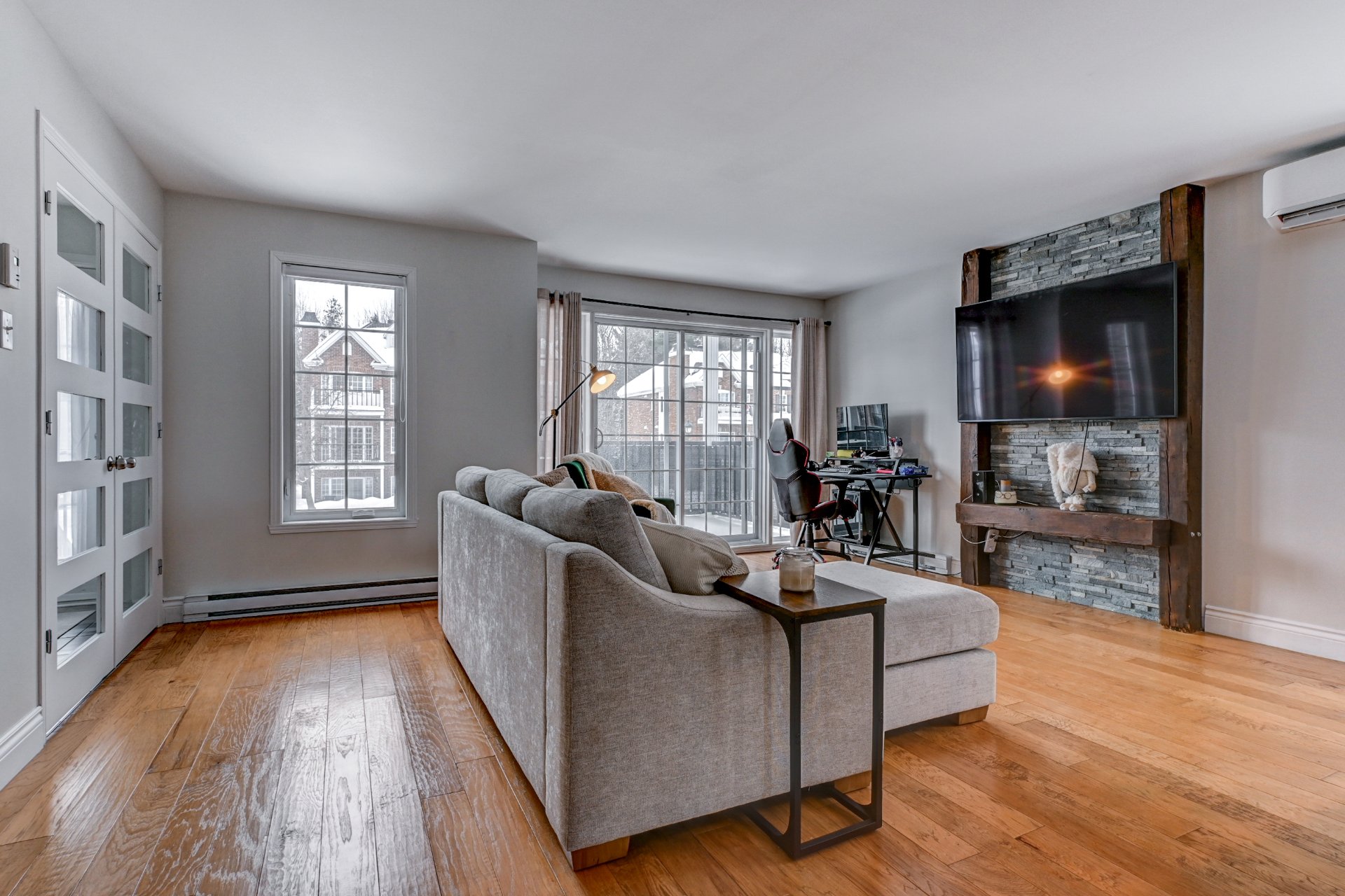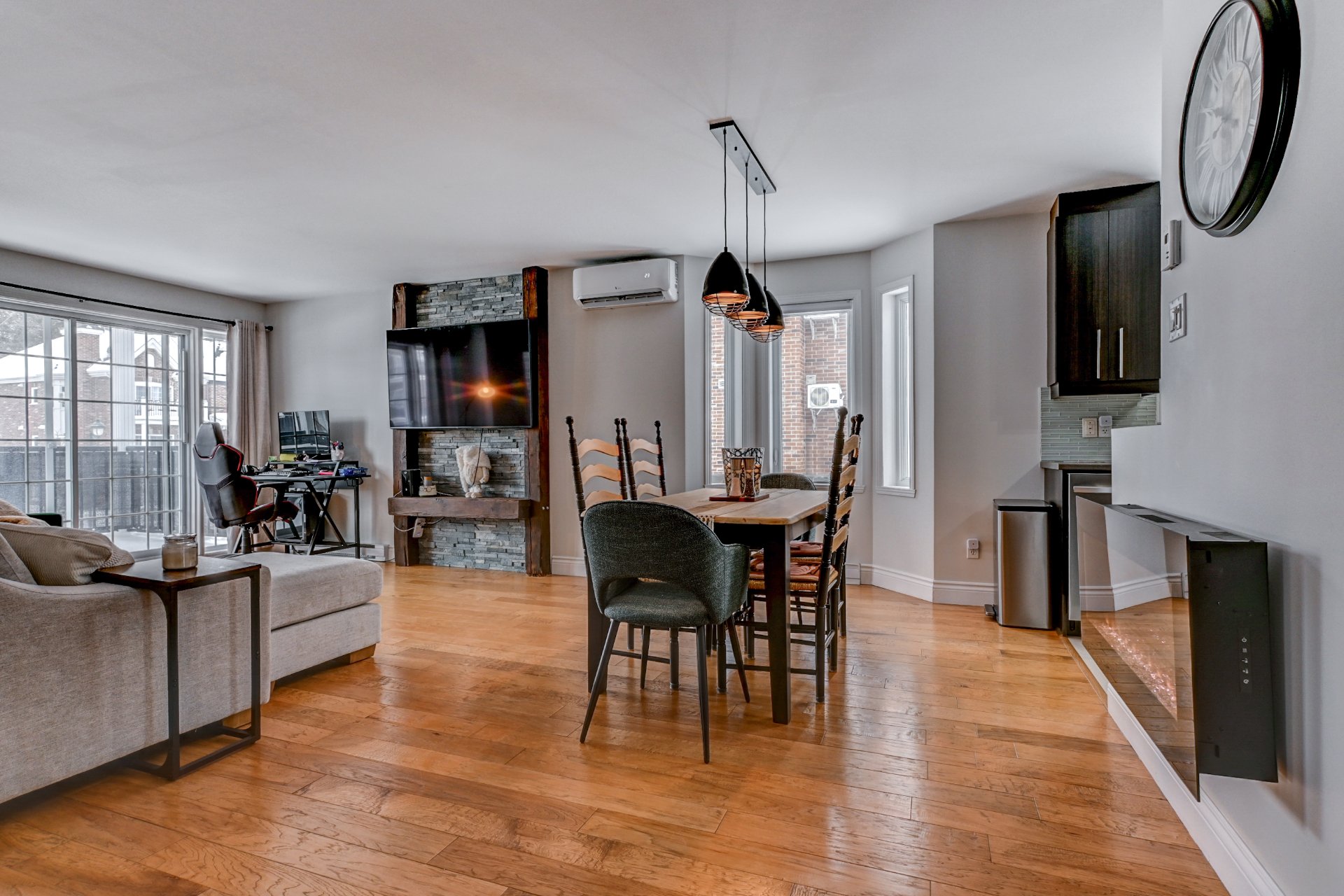 Magnifique condo lumineux au rez-de-chaussée avec entrée indépendante, idéalement situé à deux pas de l'entrée d'autoroute, du REM, des commerces et des épiceries. Offrant 2 chambres à coucher, de superbes planchers de bois et plusieurs extras haut de gamme. Cuisine moderne avec armoires pleine hauteur et dosseret tendance. Mur décoratif derrière la télévision pour une touche design. Salle de lavage fermée, thermopompe murale, 2 stationnements, rangement extérieur et 2 balcons. Un condo clé en main qui se démarque dès la première visite!
