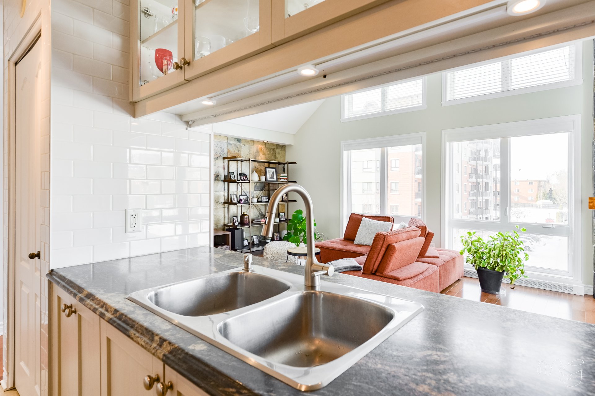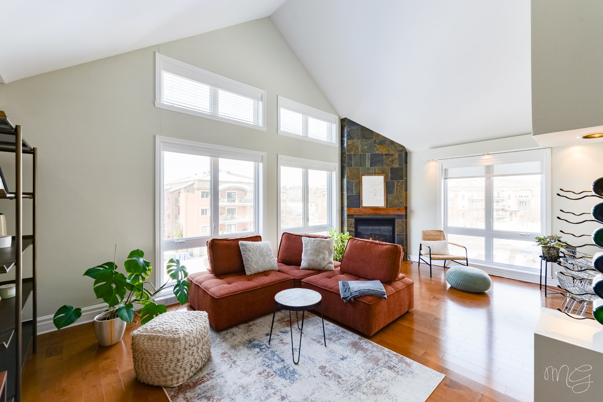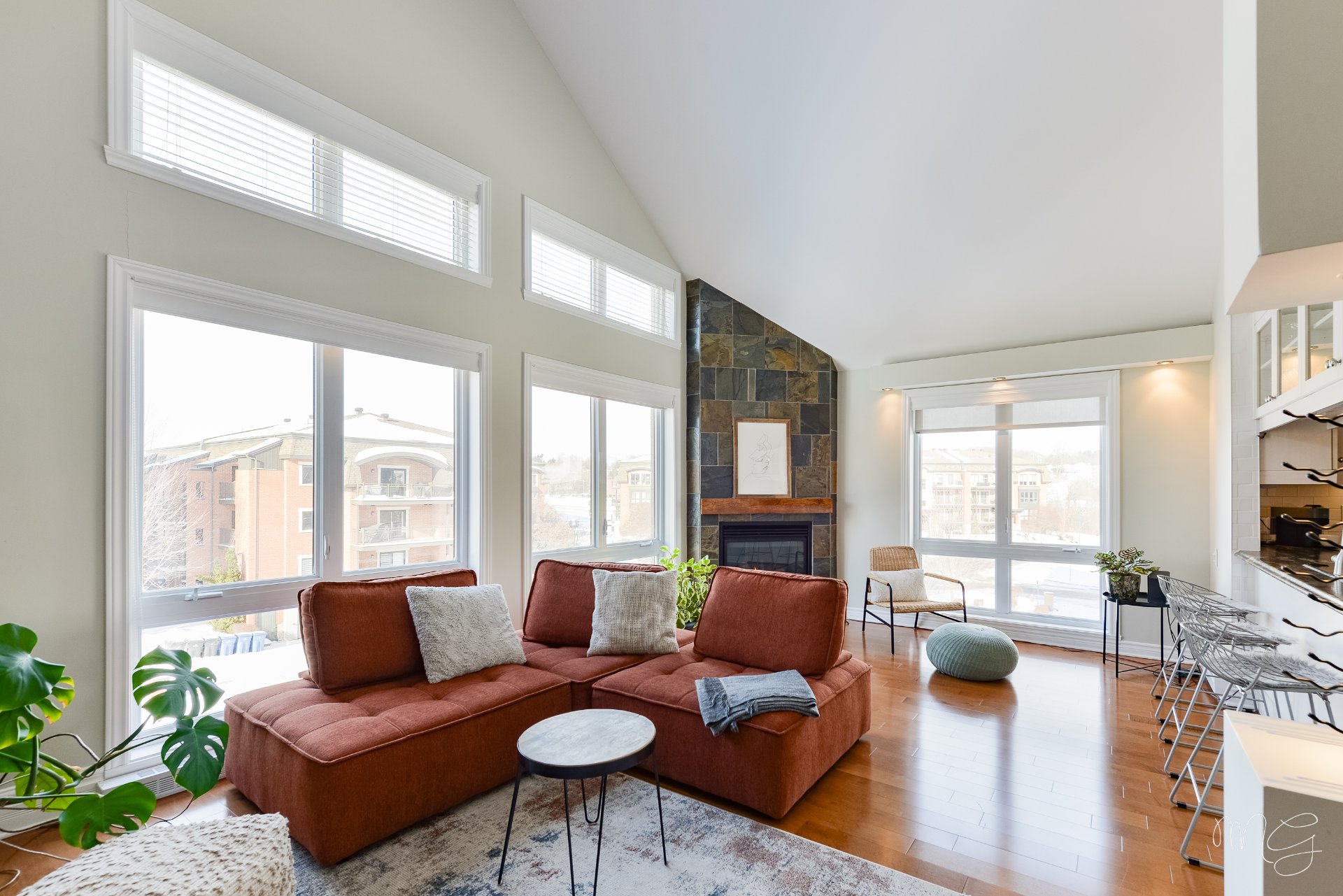 Superbe unité de 2 chambres à coucher très bien entretenue au fil des années. Ayant bénéficié de plusieurs améliorations dans les dernières années, le condo offre un foyer au gaz naturel, des planchers de lattes d'ingénierie ainsi qu'une cuisine fonctionnelle avec dosseret en céramique & armoires pleine hauteur. Aire de vie agréable au quotidien avec plafond cathédral donnant beaucoup de volume. Grand balcon avec rangement extérieur plus un 2e balcon! Accès rapide aux axes routiers, à distance de marche des écoles et près d'absolument tous les services et commerces. 1 garage + 1 stationnement extérieur. Faut voir!