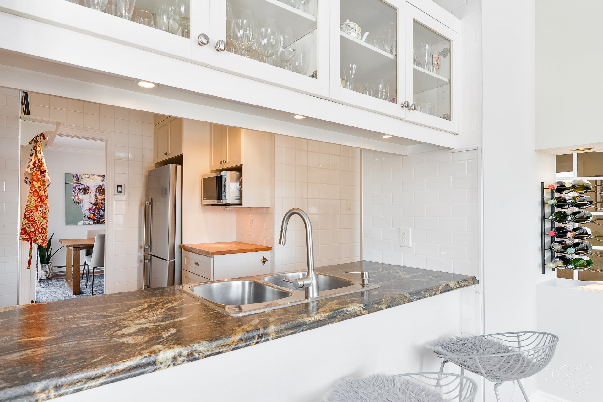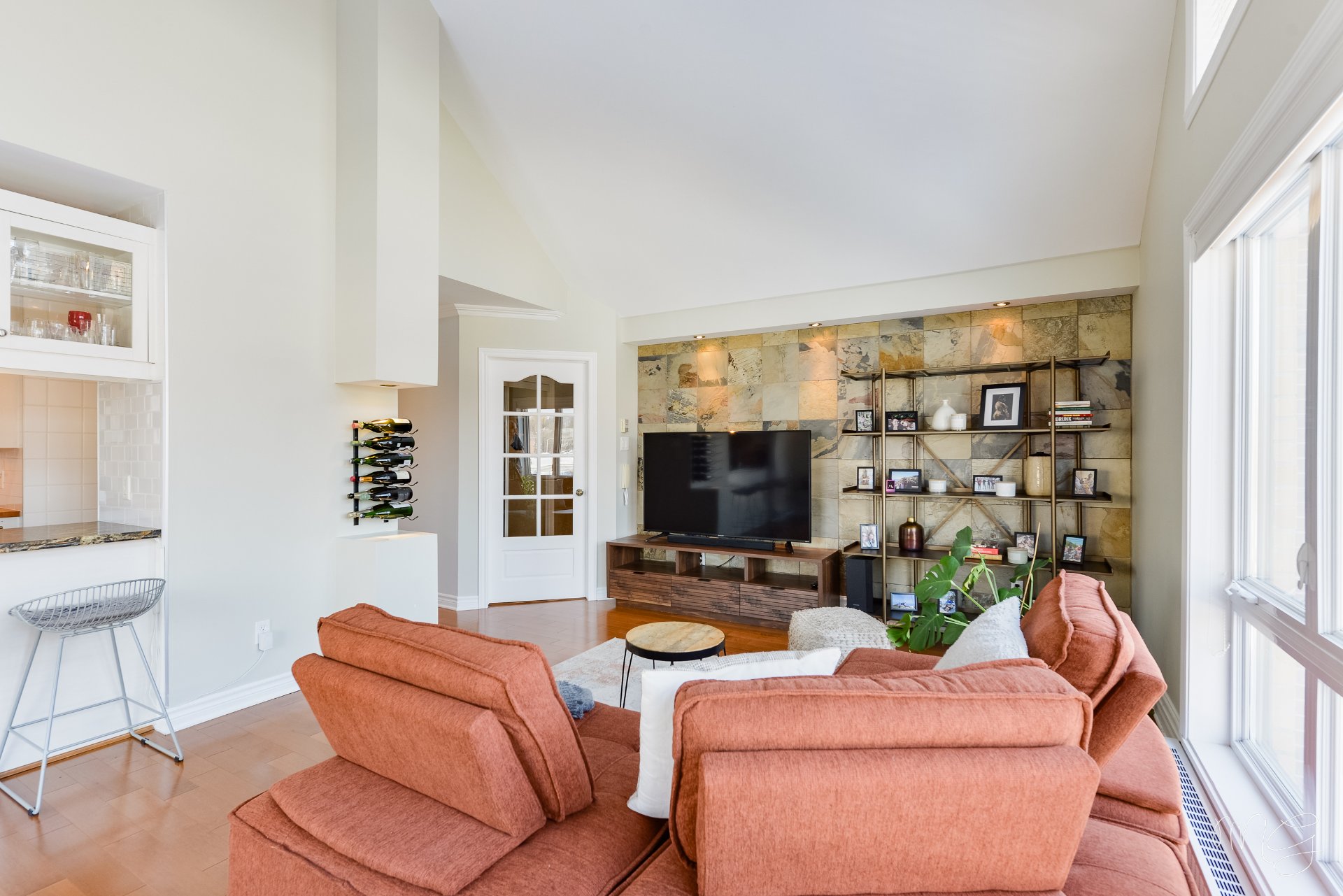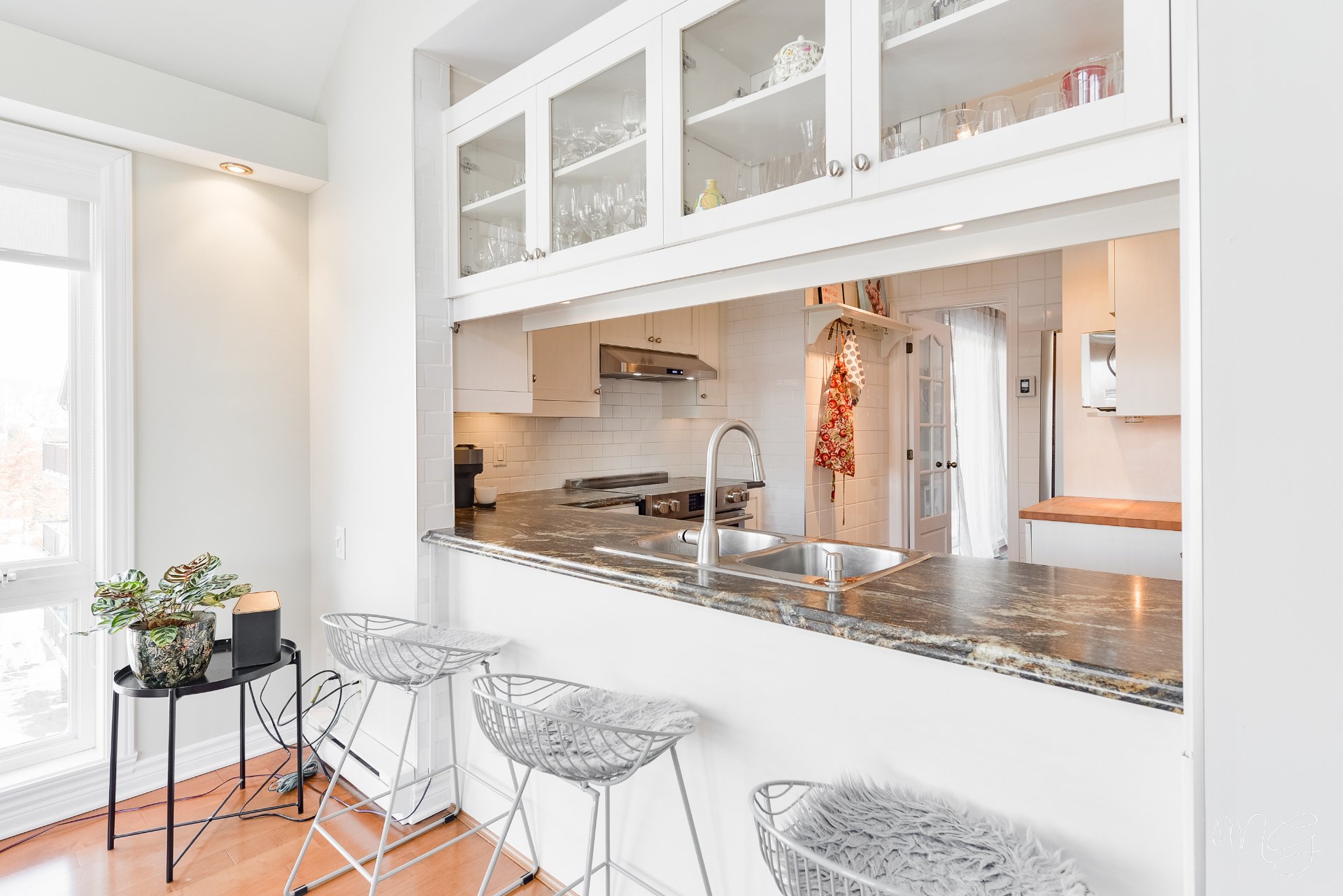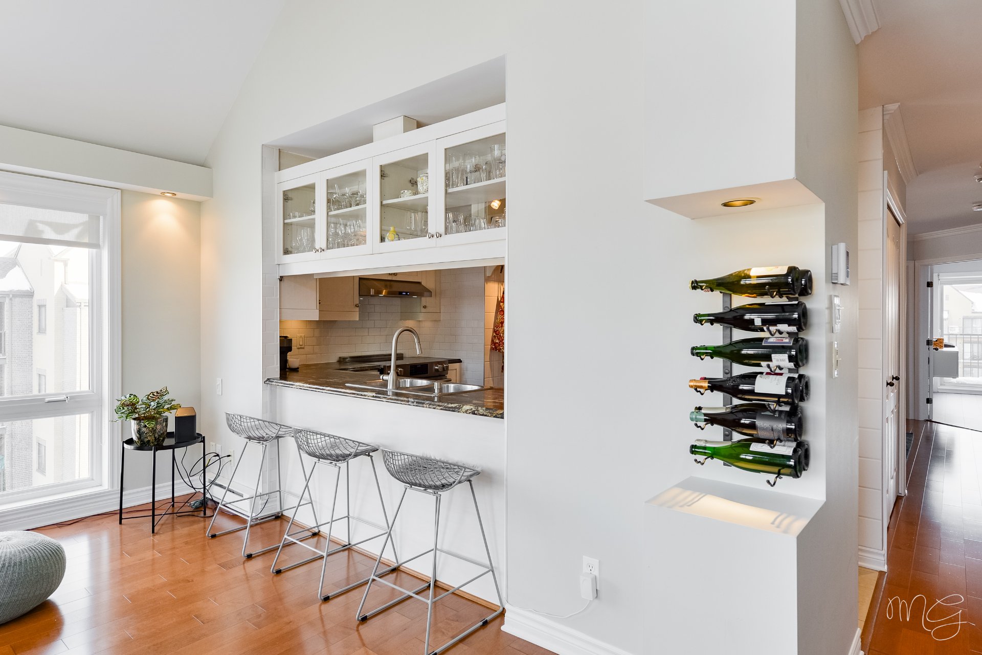 Superbe unité de 2 chambres à coucher très bien entretenue au fil des années. Ayant bénéficié de plusieurs améliorations dans les dernières années, le condo offre un foyer au gaz naturel, des planchers de lattes d'ingénierie ainsi qu'une cuisine fonctionnelle avec dosseret en céramique & armoires pleine hauteur. Aire de vie agréable au quotidien avec plafond cathédral donnant beaucoup de volume. Grand balcon avec rangement extérieur plus un 2e balcon! Accès rapide aux axes routiers, à distance de marche des écoles et près d'absolument tous les services et commerces. 1 garage + 1 stationnement extérieur. Faut voir!