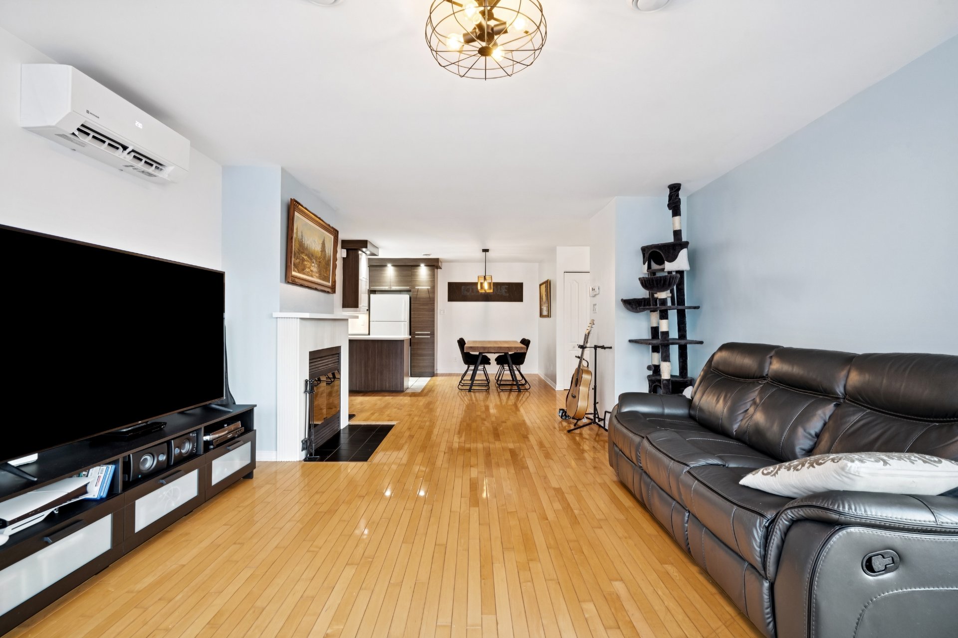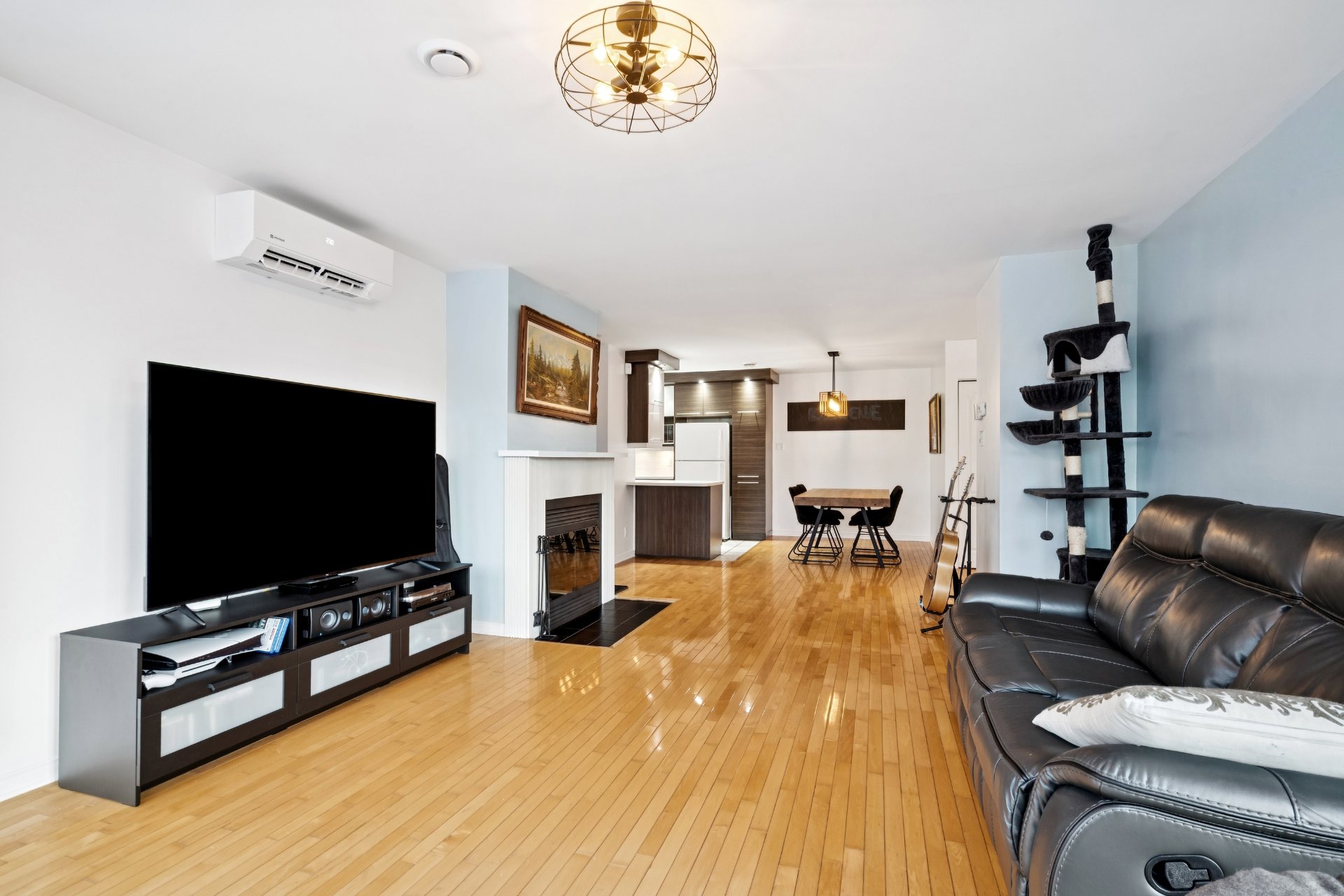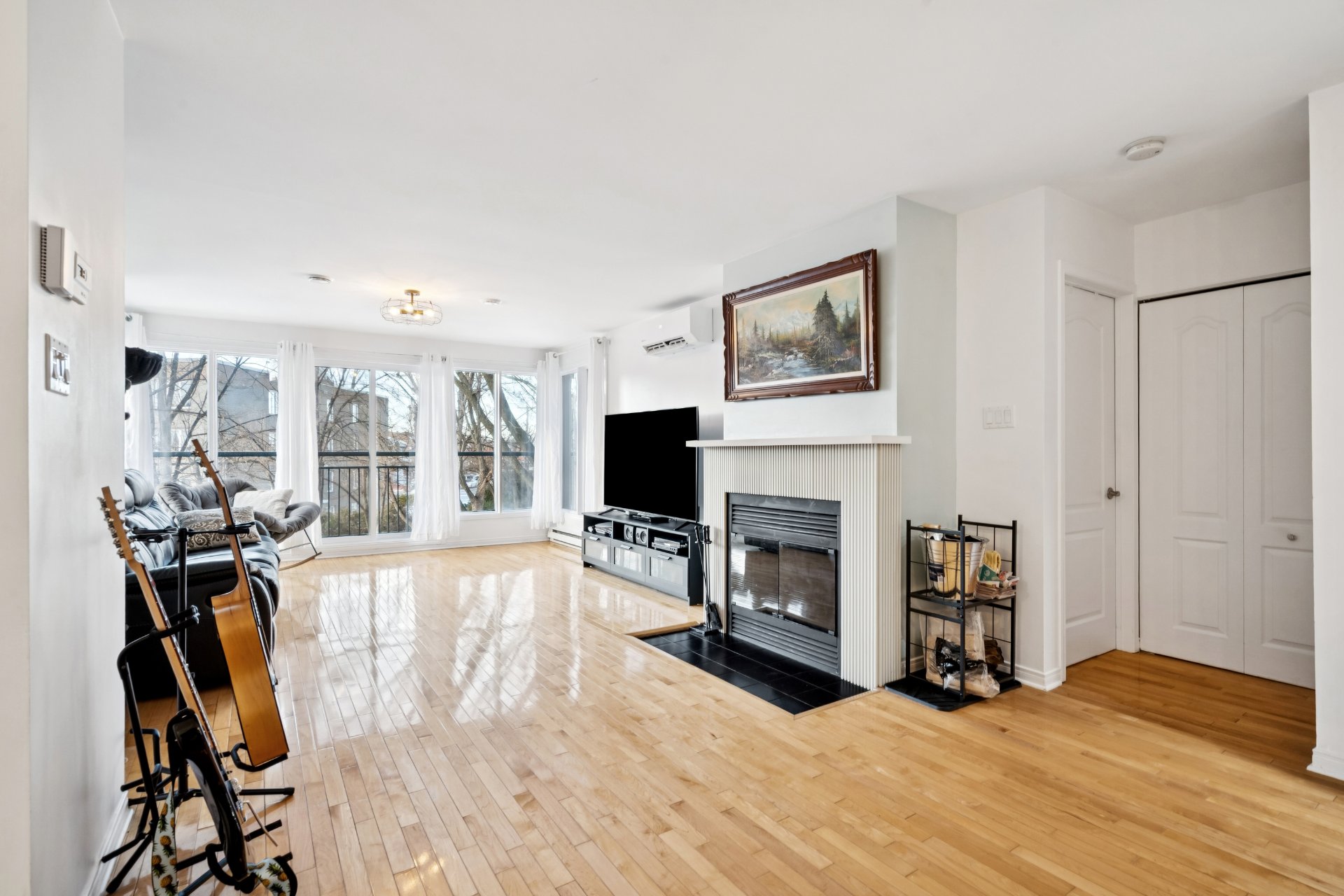 Stores, rideaux, fixtures, thermopompes murale x2, hotte, foyer au bois, lave-vaisselle.