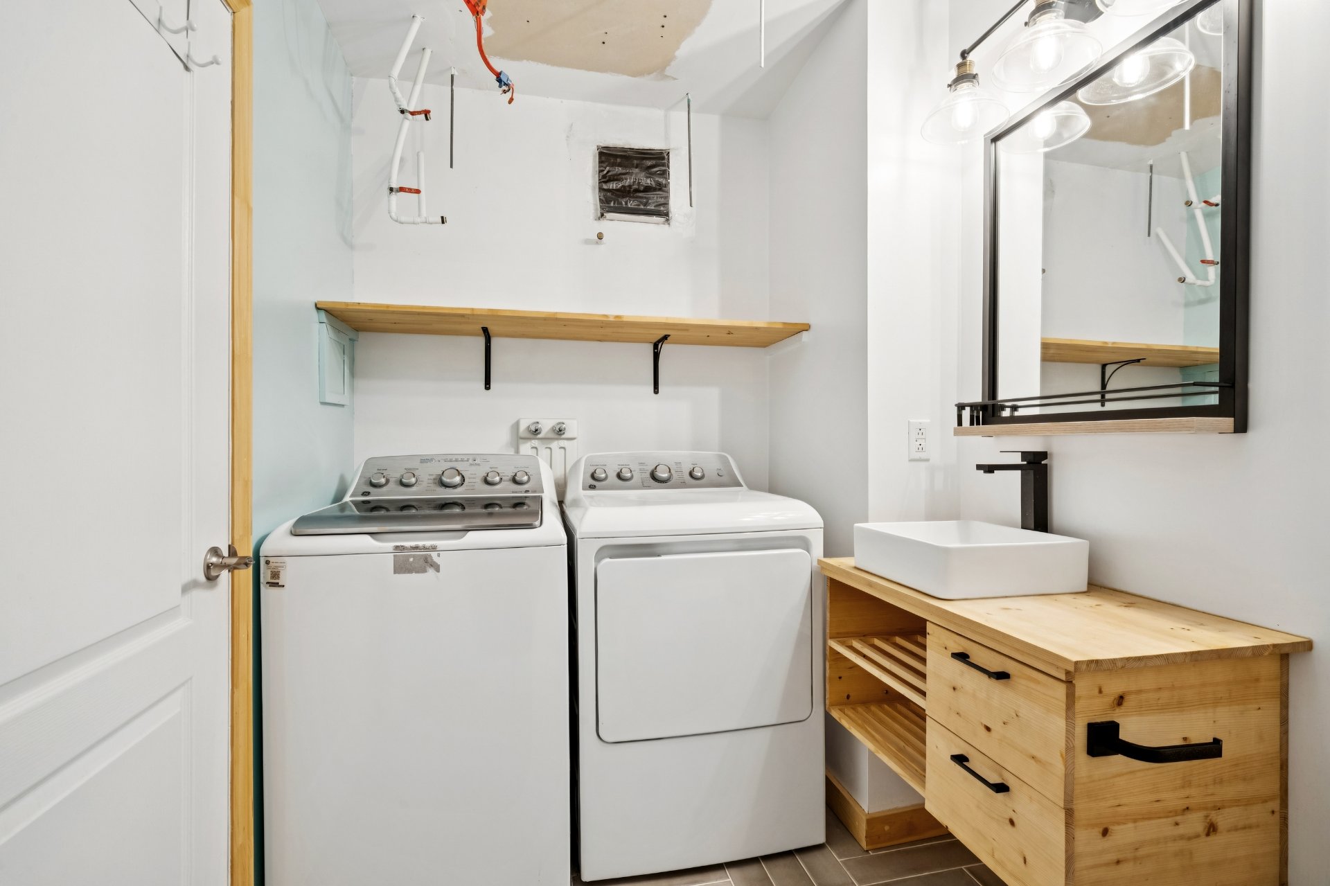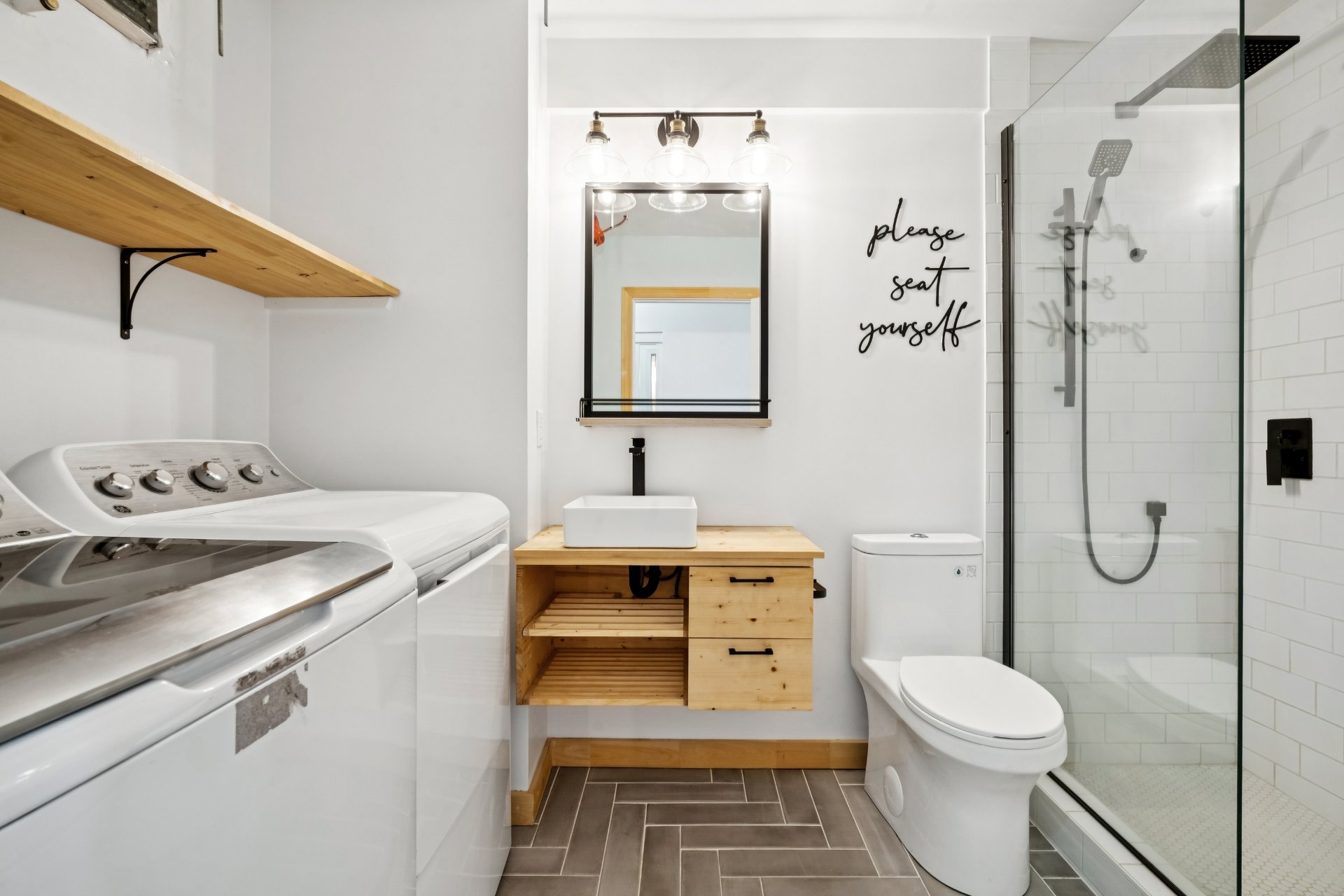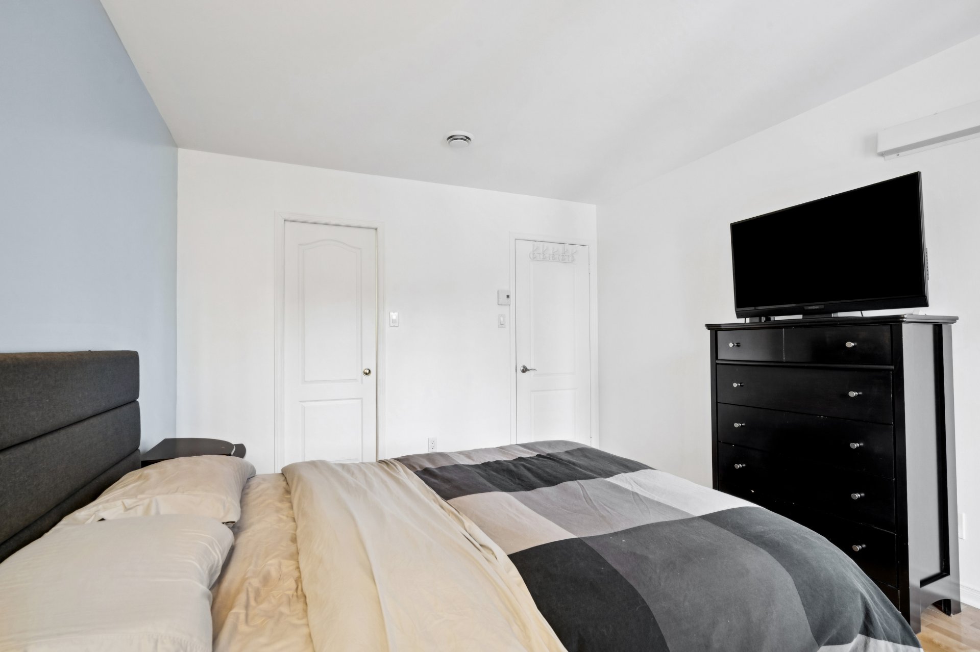Stores, rideaux, fixtures, thermopompes murale x2, hotte, foyer au bois, lave-vaisselle.