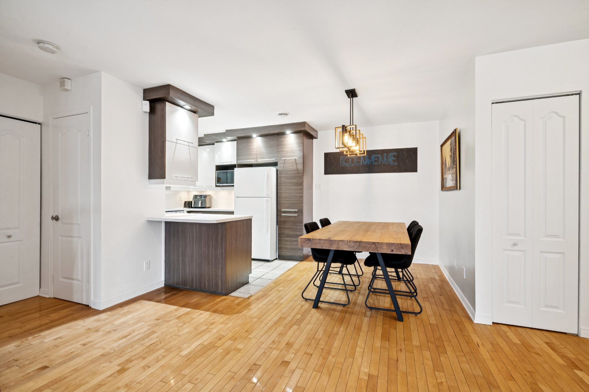 Découvrez ce superbe condo de 1 057,7 pc à Terrebonne, baigné de lumière grâce à une fenestration abondante, entretenu avec soin et rénové au gout du jour. Vous serez séduit par sa cuisine moderne et fonctionnelle, son salon avec foyer et ses 2 chambres spacieuses, dont une suite principale avec walk-in et salle de bain privée. Une seconde salle de bain complète avec espace lavage, un garage chauffé, un stationnement extérieur pour les visiteurs et un espace de rangement intérieur comblent le tout. À proximité des écoles, parcs, Cégep, autoroute, golf, transports en commun et bien plus encore. Une visite s'impose!