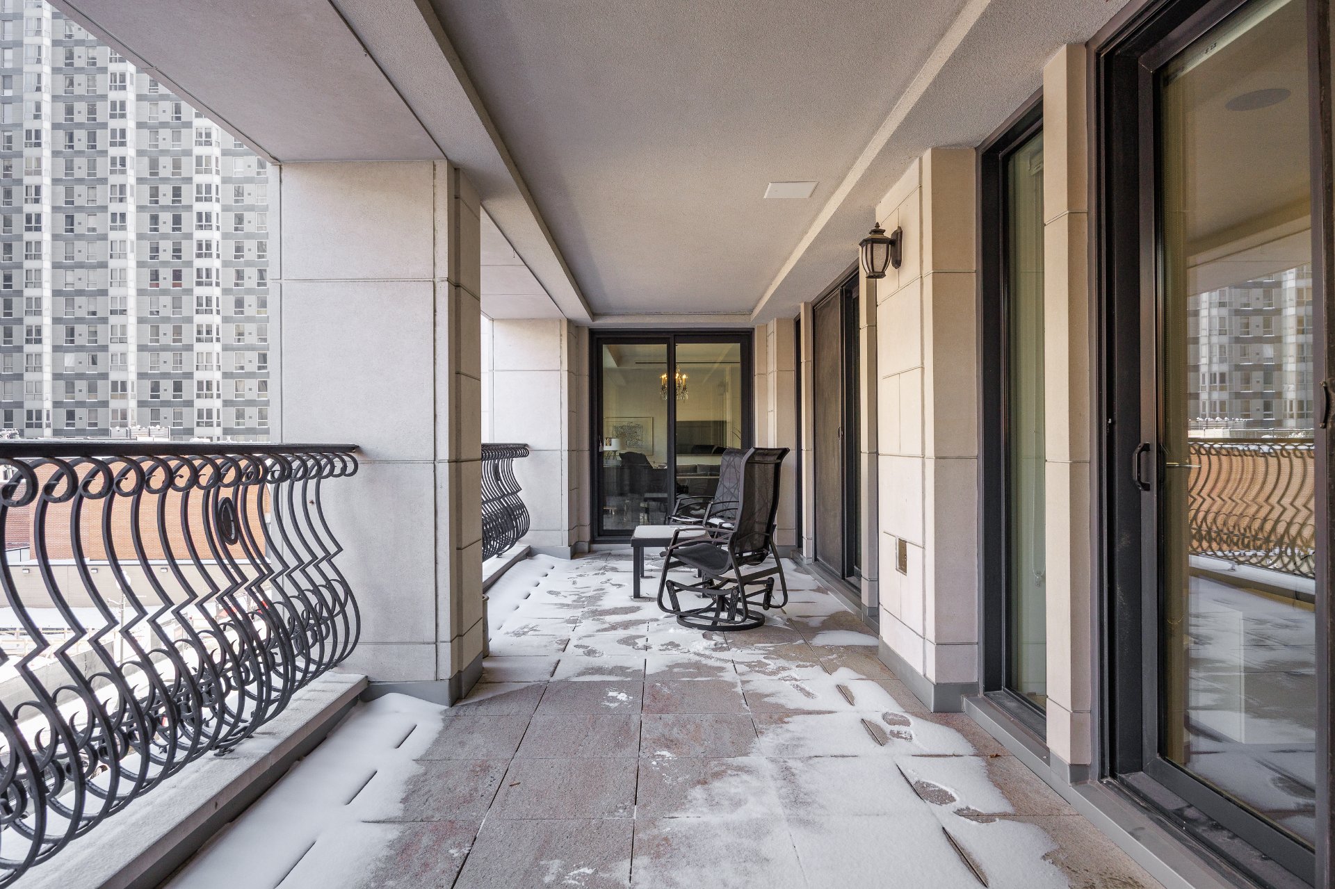 balcon accessible depuis le salon et les deux chambres. Un