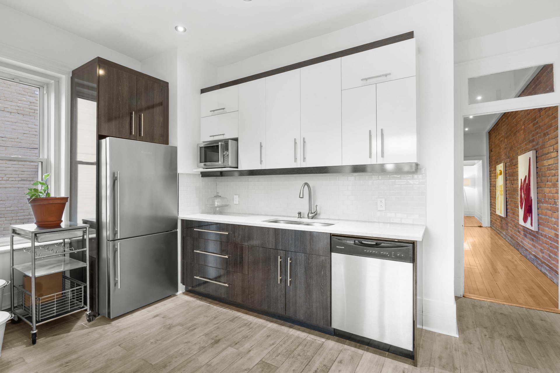 Discover this charming apartment with original woodwork, located in the heart of Victoria Village! Soaring 10-foot ceilings throughout. Hardwood floors and an exposed brick wall in the hallway add to the warmth and character of this century-old property! Upon entering, you'll find a bright living room with large bay windows. The central dining room is perfect for entertaining! The renovated kitchen at the rear provides access to a balcony. There are also three good-sized bedrooms and a bathroom with a combined shower/tub.