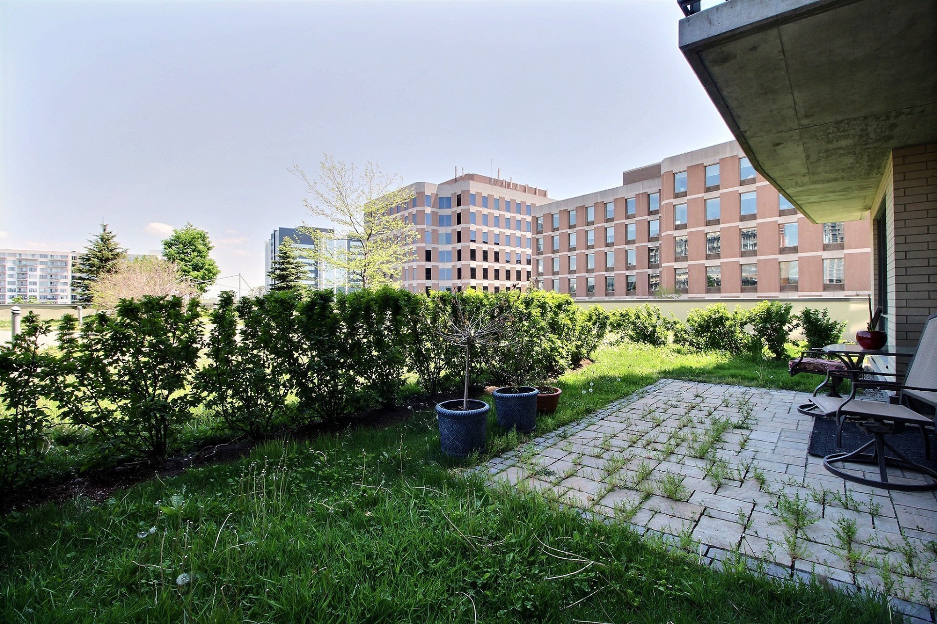 Private terrace overlooking landscaped gardens with a