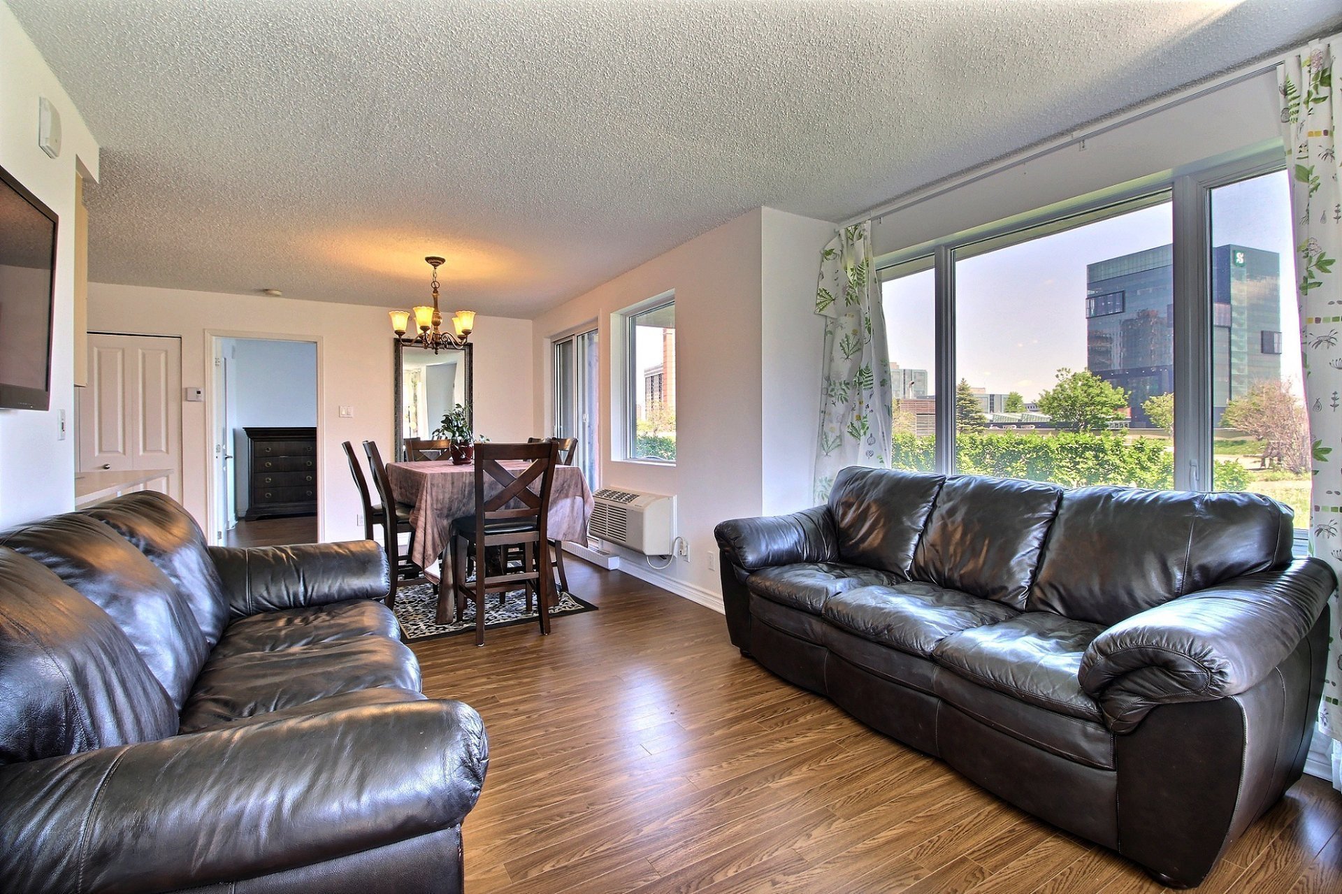 Turnkey corner condo at Blu Rivage, just steps from the Longueuil metro. Southwest orientation floods the space with natural light all day. Enjoy a private terrace overlooking landscaped gardens with a partial view of Montréal. Features two spacious bedrooms, including a primary suite with ensuite bathroom, indoor parking, and storage locker. Includes all appliances: refrigerator, stove, dishwasher, range hood/microwave, washer, and dryer. Wall-mounted A/C for year-round comfort. Prime location near Université de Sherbrooke, shops, cafés, restaurants, and services -- just minutes from Old Longueuil and Place Longueuil.