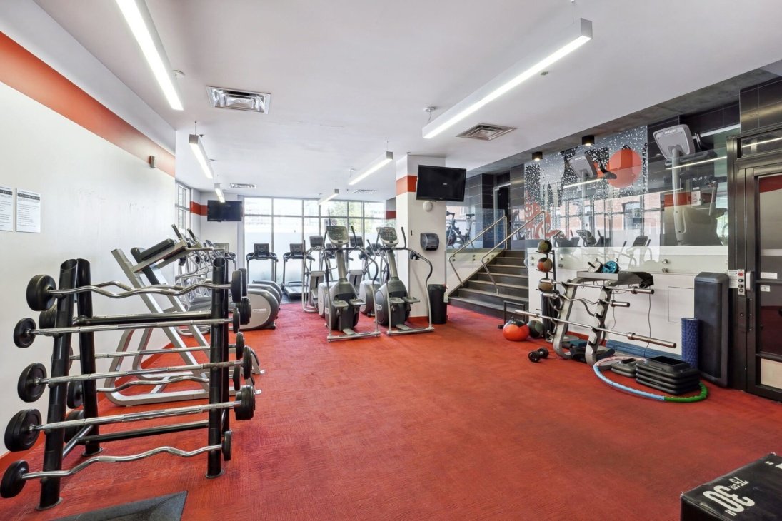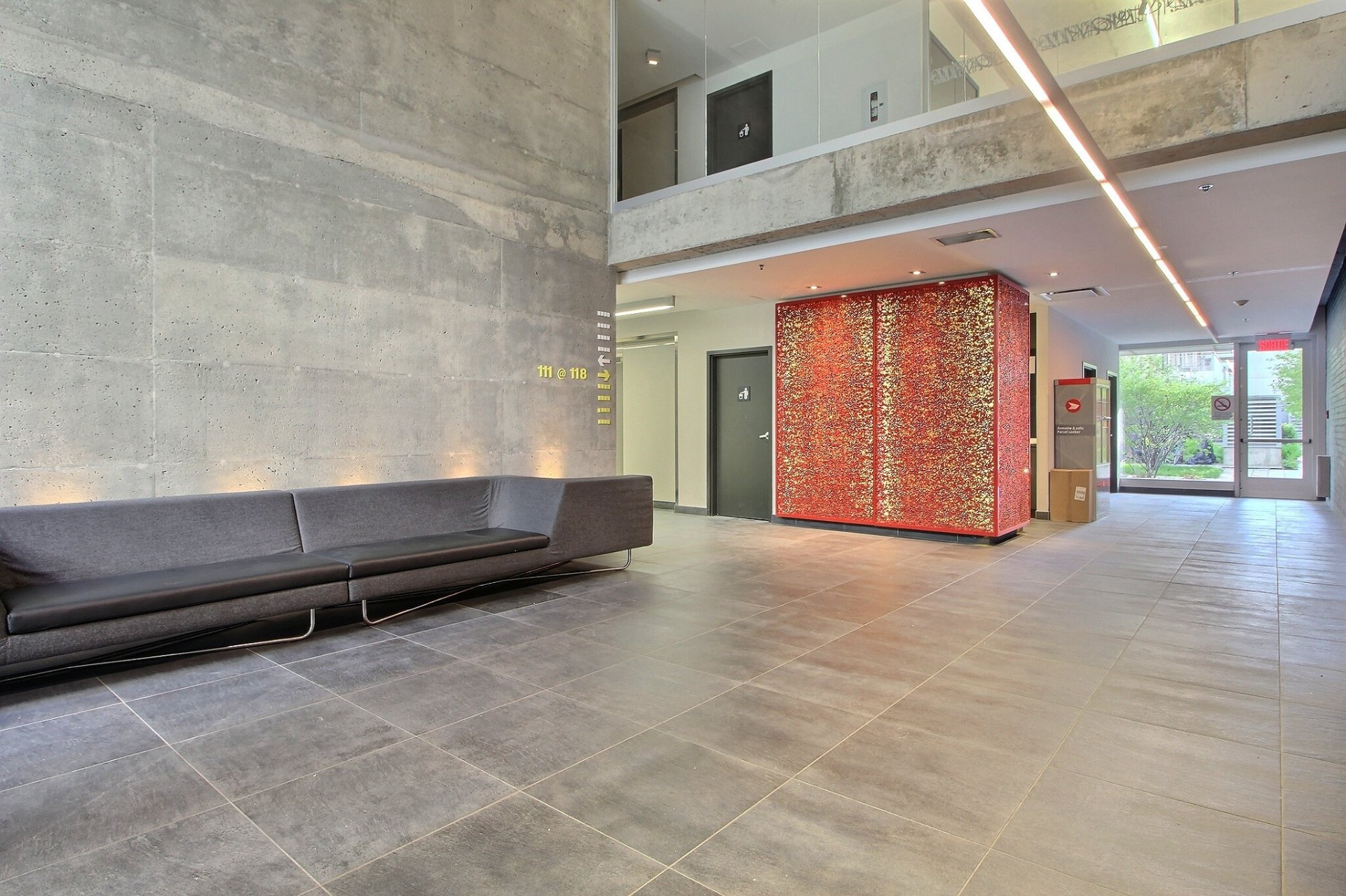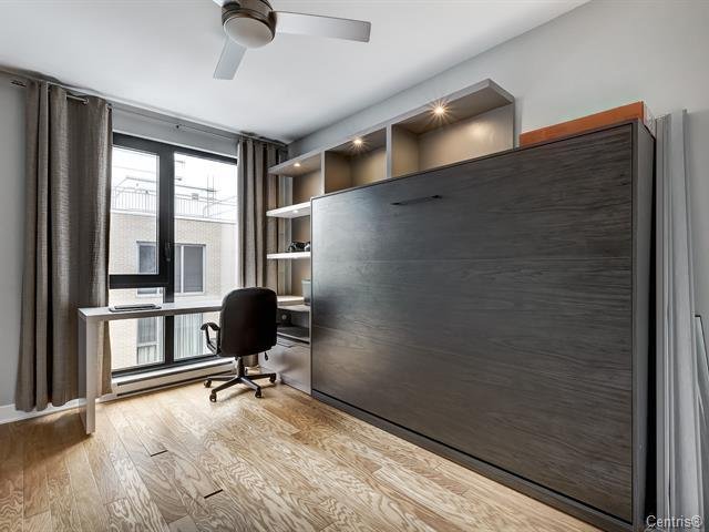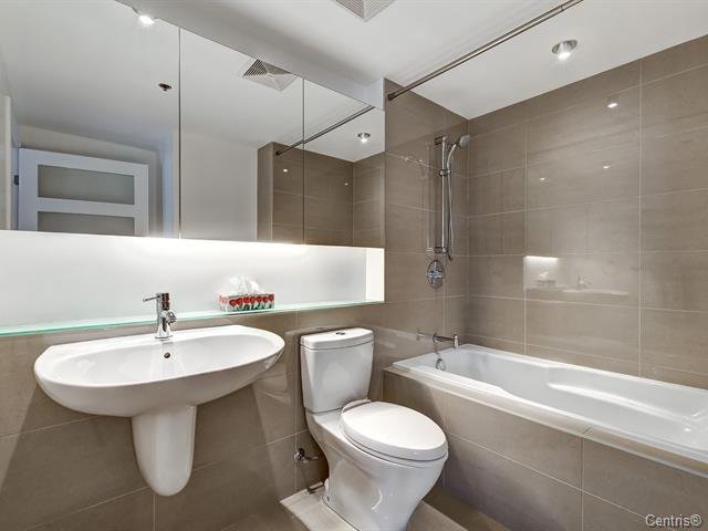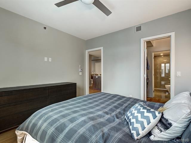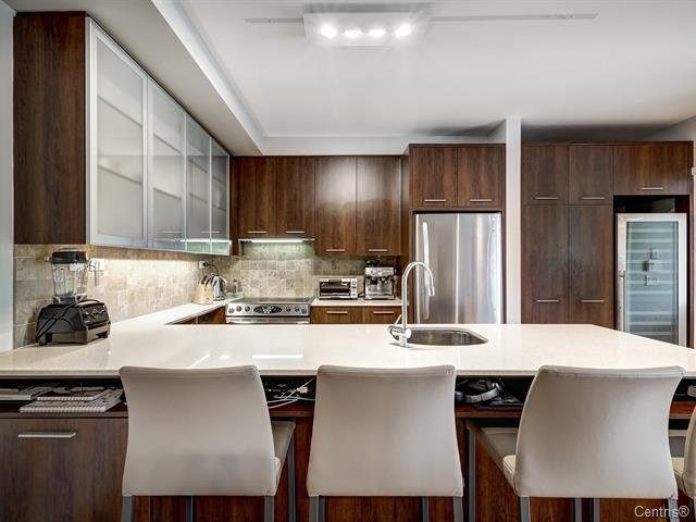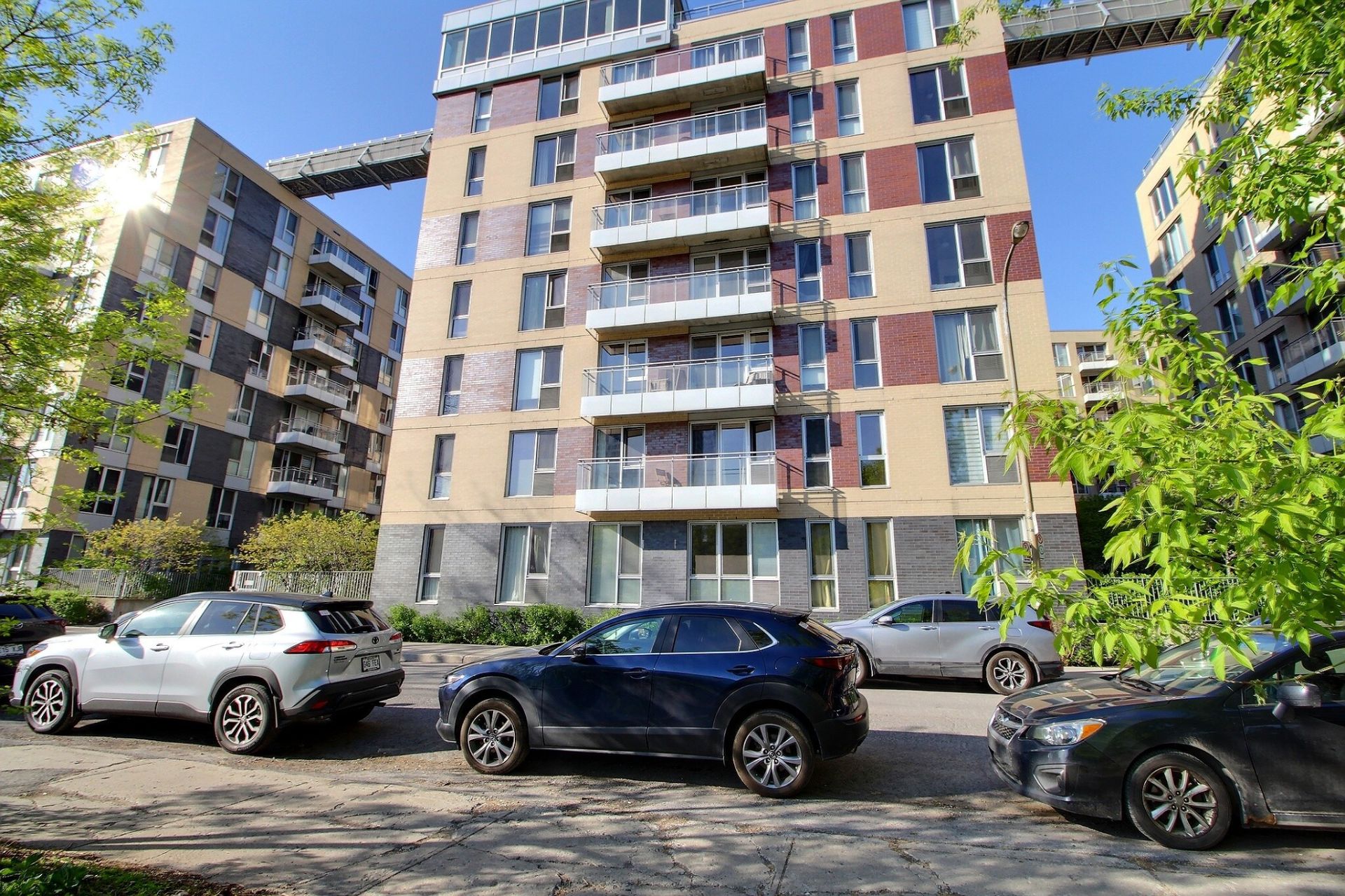 Steps from the Lachine Canal, bike paths, public transit, cafés, and downtown. An opportunity to live in one of Montreal's most sought-after waterfront communities. Key Features: South-facing unit with open-concept layout, private balcony with clear views of the Lachine Canal, contemporary kitchen with induction cooktop, built-in microwave, refrigerator, and modern hood. Two spacious bedrooms, ideal for rest or home office. Elegant bathroom and discreet laundry area with stacked washer/dryer. Indoor parking + storage locker included Very nice building amenities such as a 6,000 sq. ft. fitness center, 22nd-floor rooftop terrace and pool.