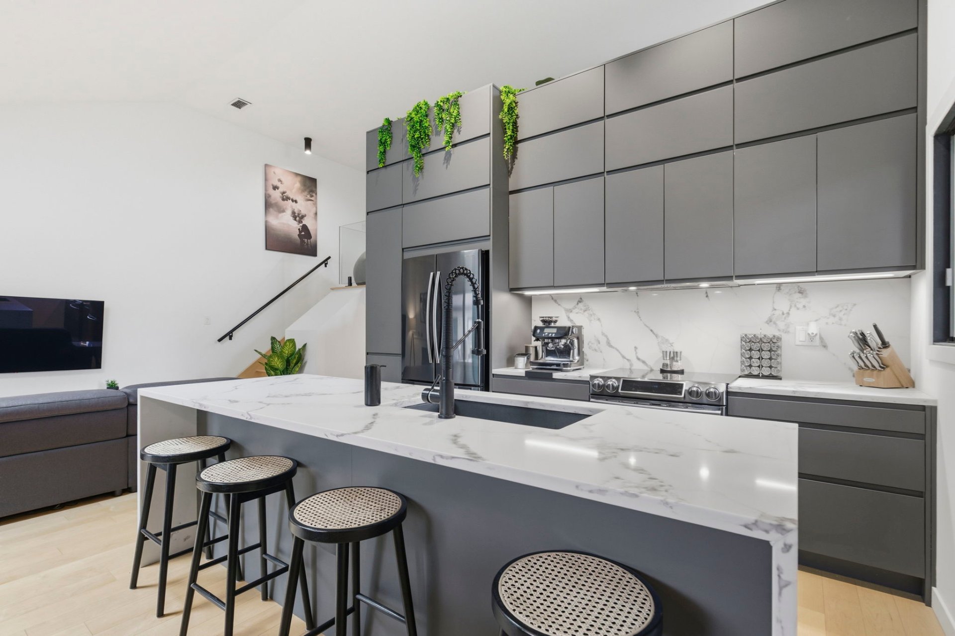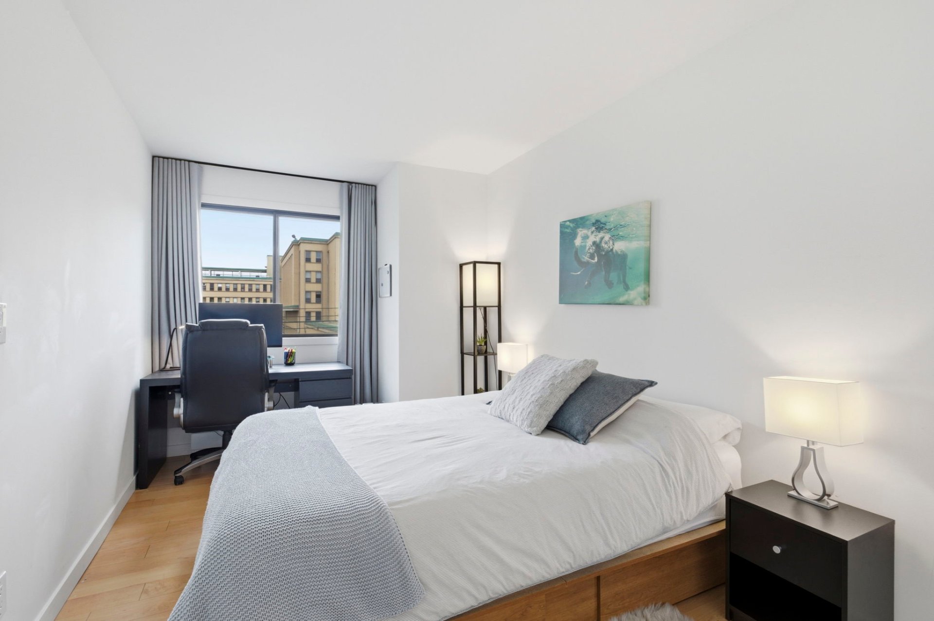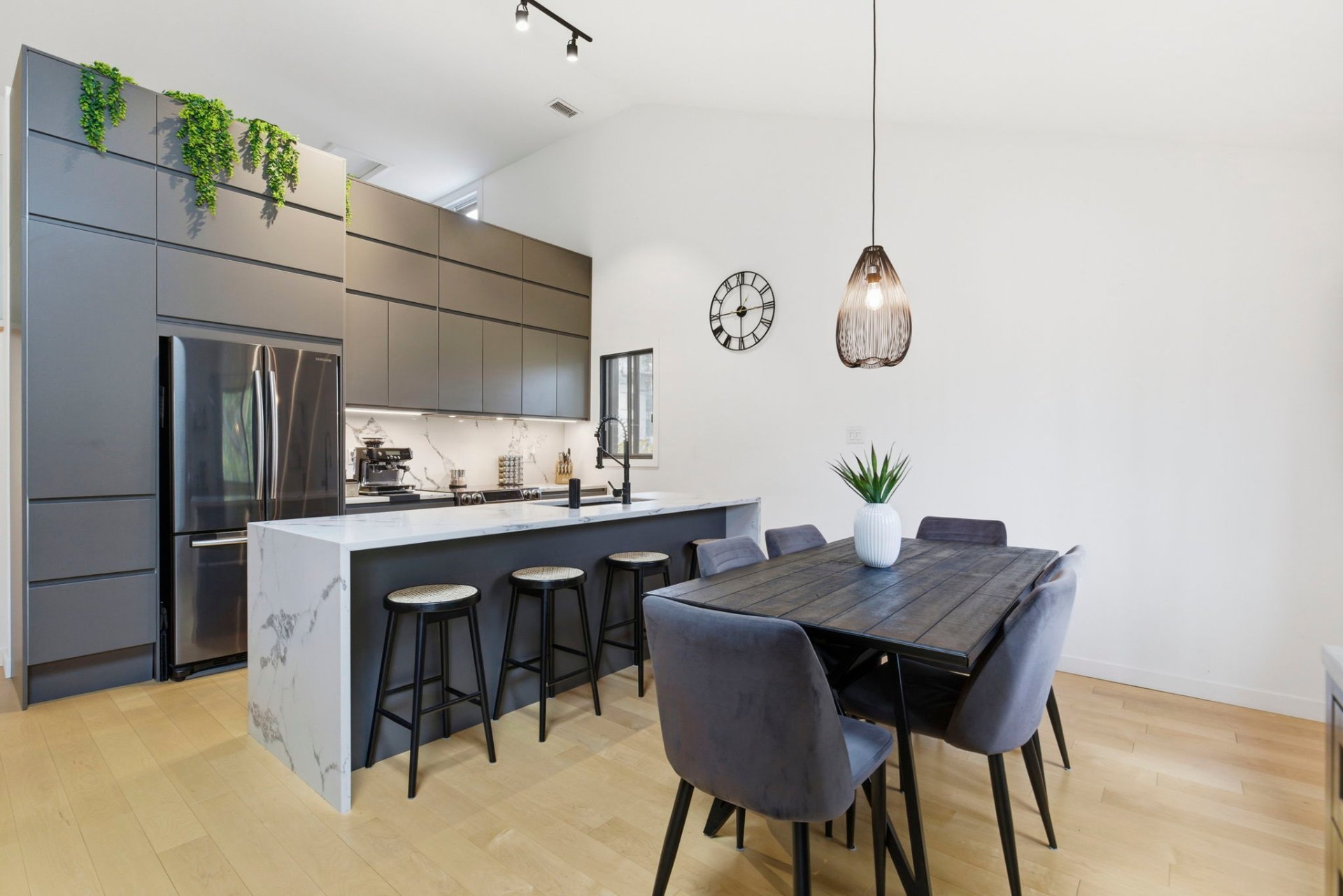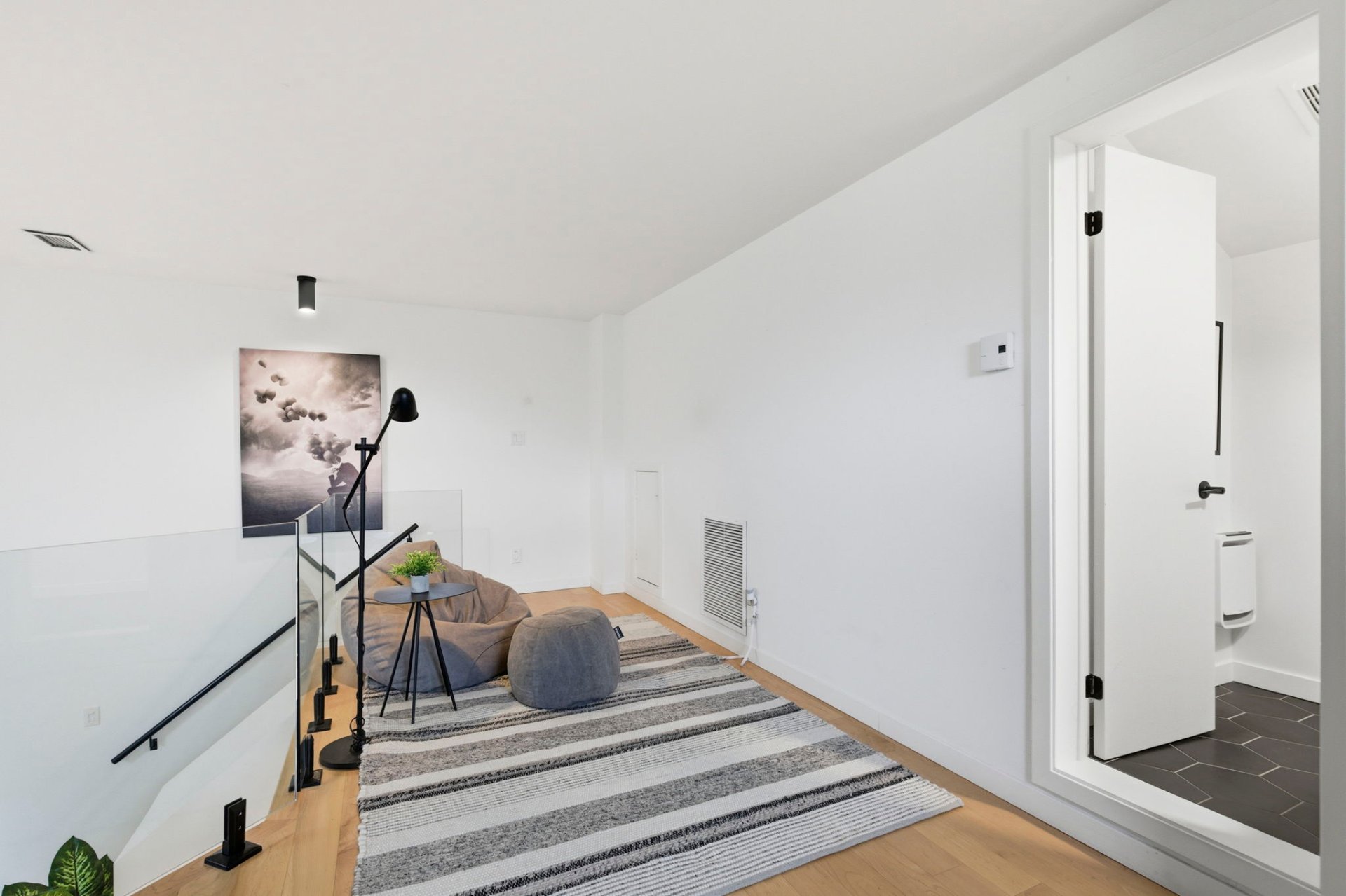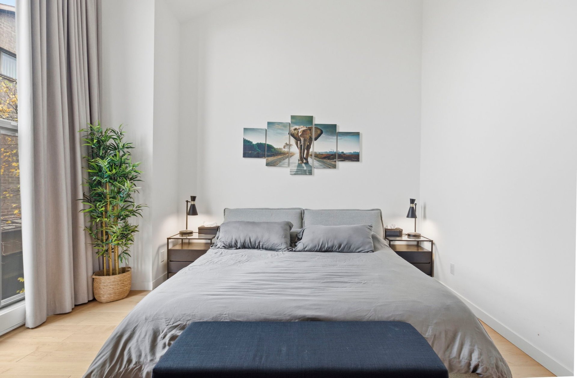 Contemporary-style 1,350 sq. ft. condo with garage in the Cité-Jardin area of Rosemont, near the Assomption metro station. The living room, the centerpiece of the house, captivates with its warm ambiance and impressive volume thanks to the cathedral ceiling. The fully renovated kitchen blends harmoniously into the living area. The view of the living room from the mezzanine adds an exceptional touch to the apartment. Two bathrooms, one of which was renovated in 2020, maintain the same modern style of the property. Two closed bedrooms. One terrace and one balcony. Central heat pump installed in 2023.