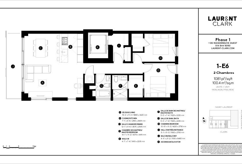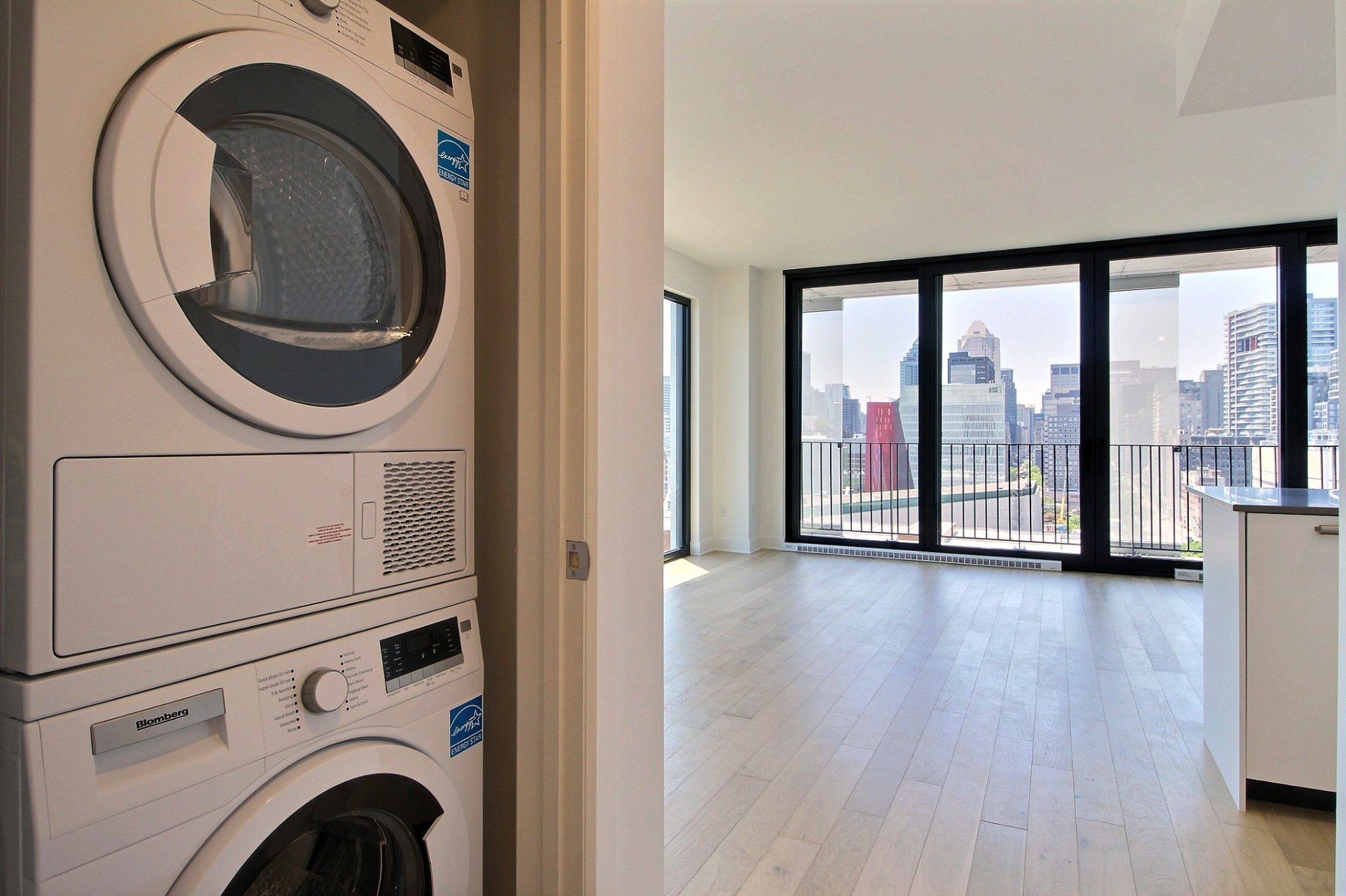 Magnificent condo located in the prestigious Laurent & Clark development, in the heart of the Quartier des Spectacles. Spacious corner unit with private elevator, panoramic view of Mont-Royal, southwest windows and high-end finishes. Two bedrooms, including a master suite with walk-in closet and en suite bathroom 2 full bathrooms Indoor parking with electric charging station Private storage High-quality construction (LEED certification) No short-term rentals permitted Enjoy the energy of downtown while living in a quiet, bright and exclusive space. Two lockers and a garage included.