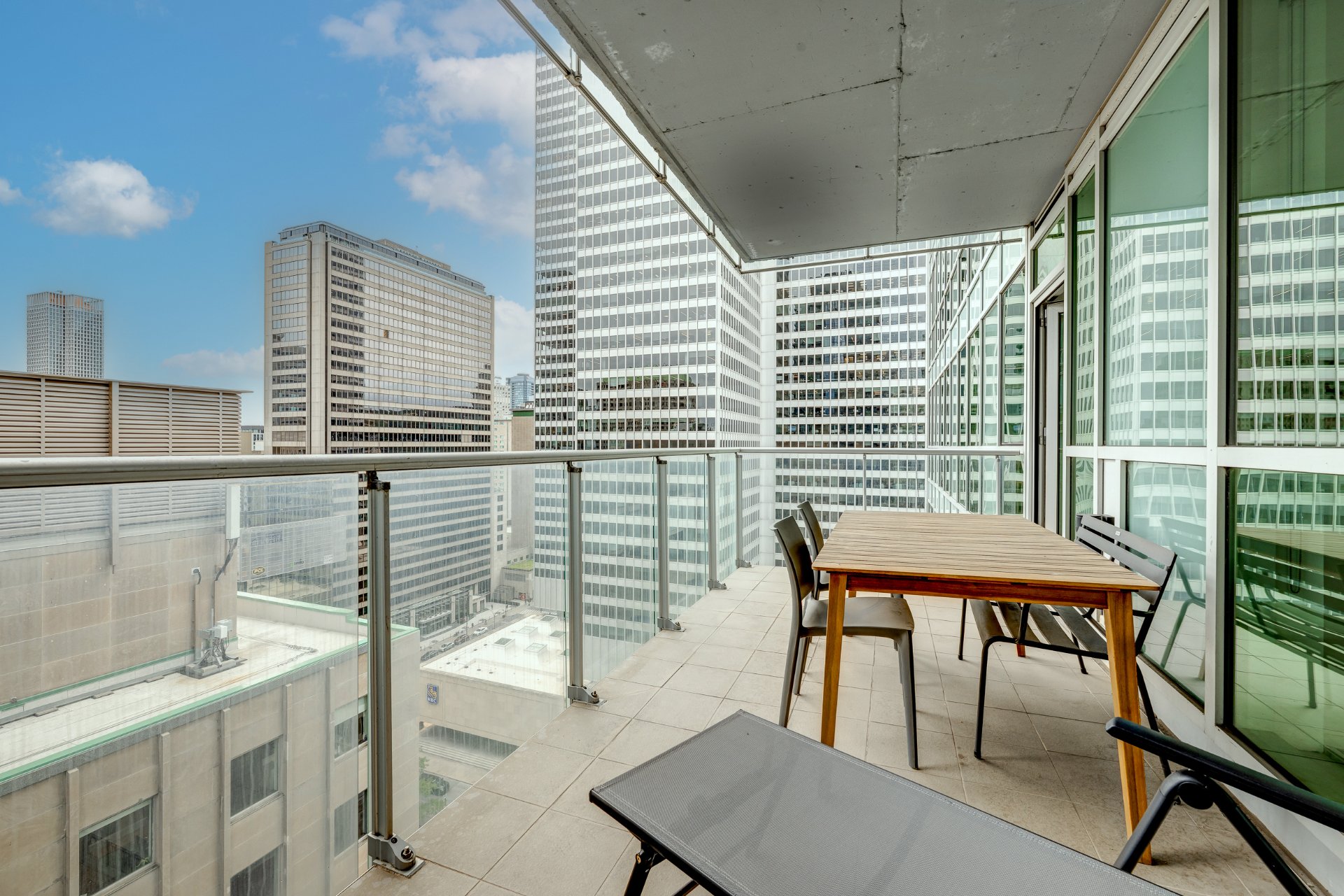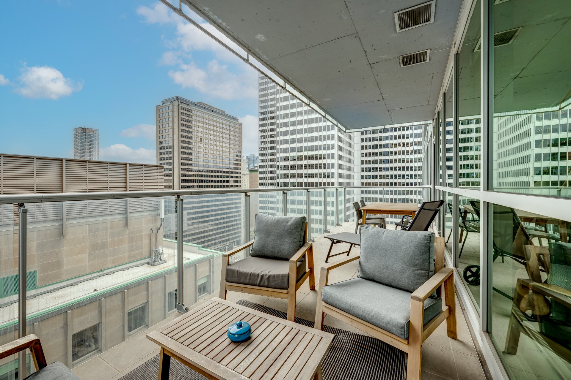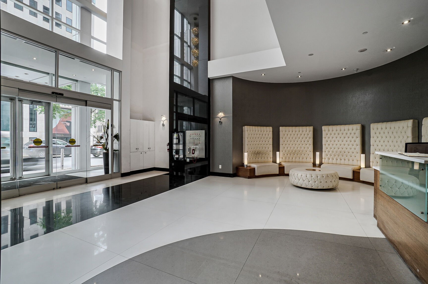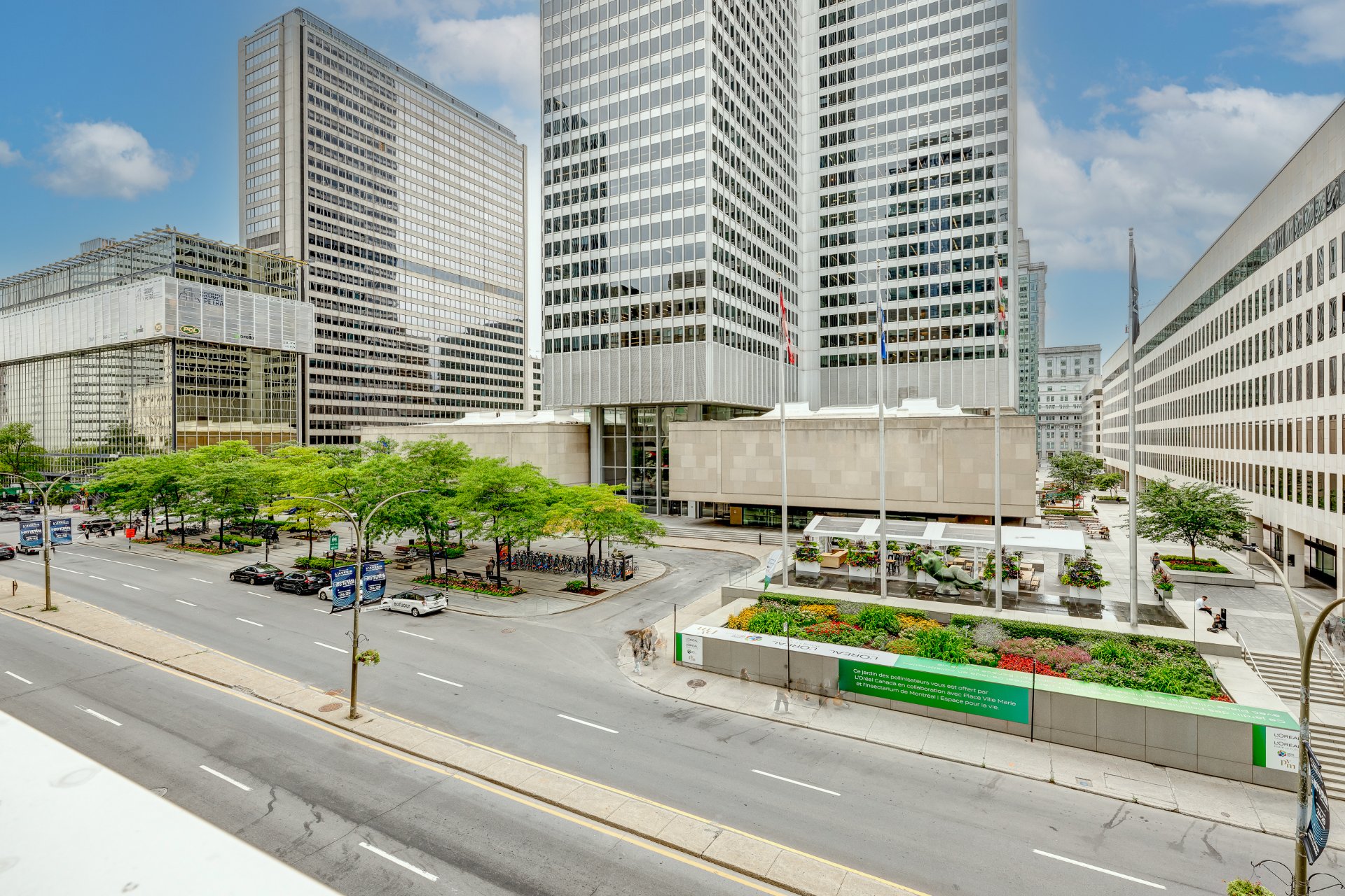 Located on the 17th floor of this iconic downtown Montréal building, next to Place Ville-Marie, you'll find this magnificent condo filled with natural light. It features a large open living area (kitchen, dining room, and living room). There are two bedrooms, each with an ensuite bathroom. All appliances are included in the sale. A large balcony offers a panoramic view extending all the way to the river. An indoor parking space and an indoor storage space complete this unit. Selling fully furnished is also an option.