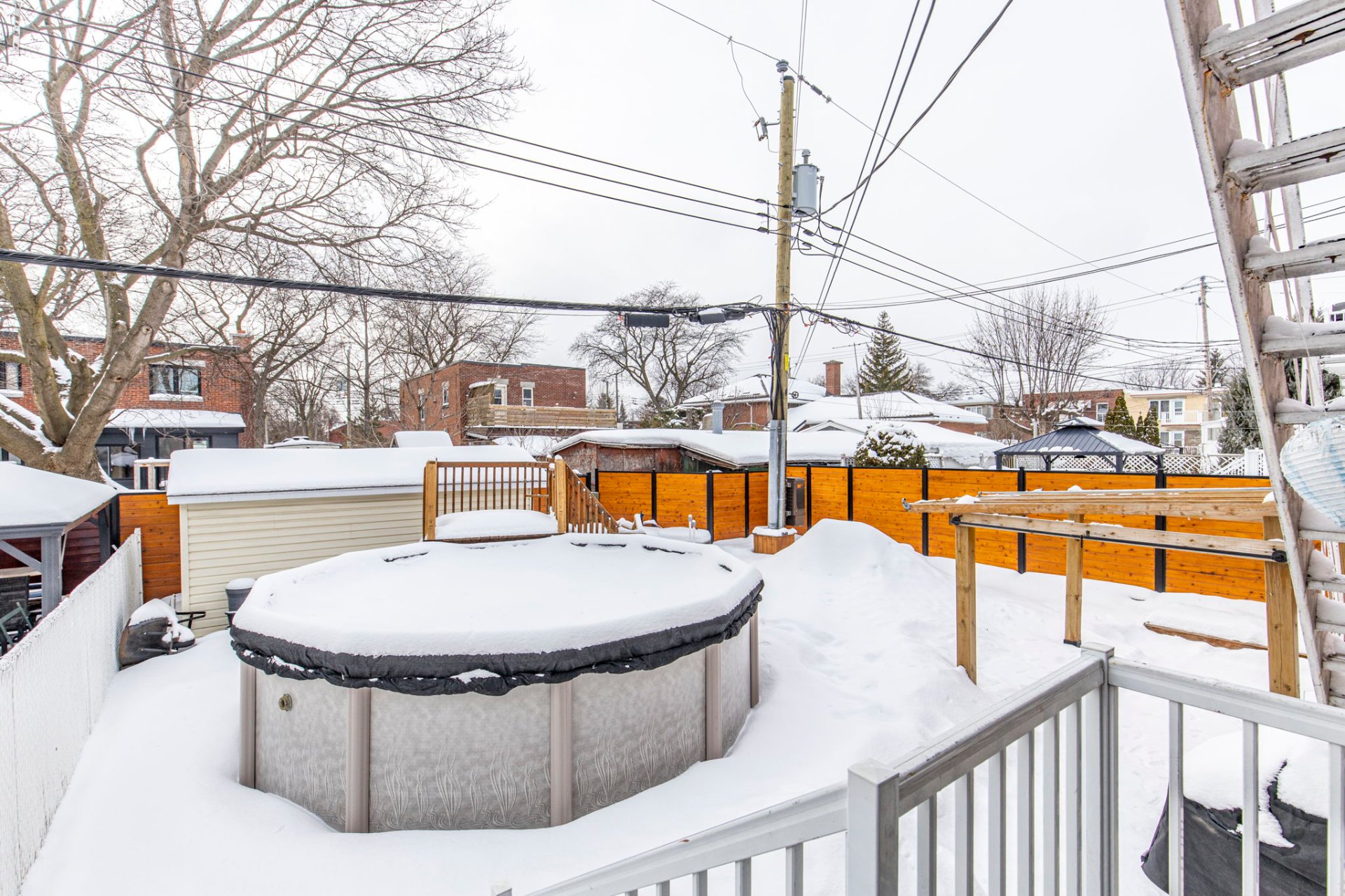 Lave-vaisselle, 2 mobiliers de rangement de la cuisine, étagère de rangement du hall d'entrée, lustres, thermopompe murale, système d'alarme avec caméra, piscine hors terre, chauffe-eau de piscine, pergola, cabanon, b...
