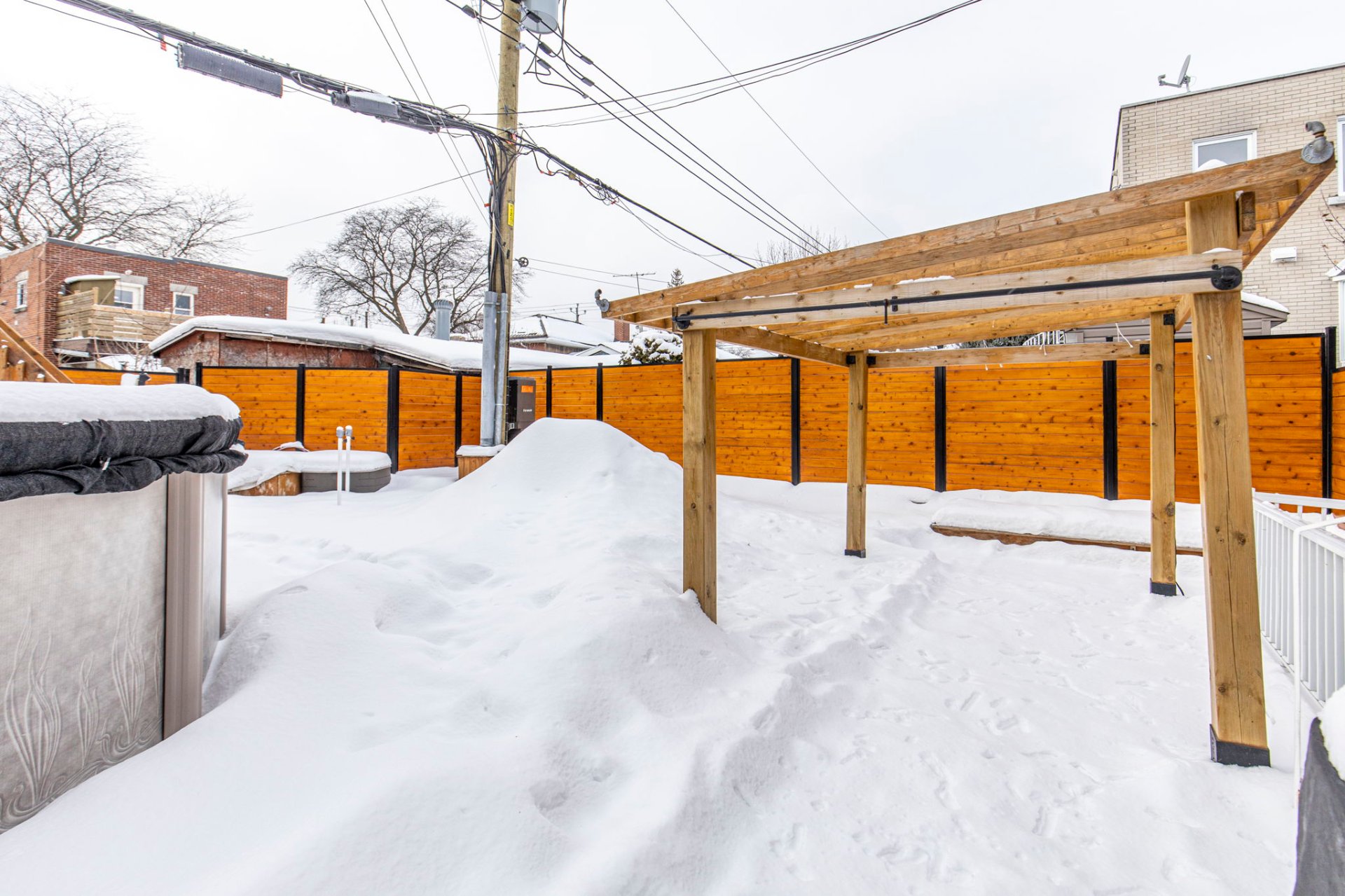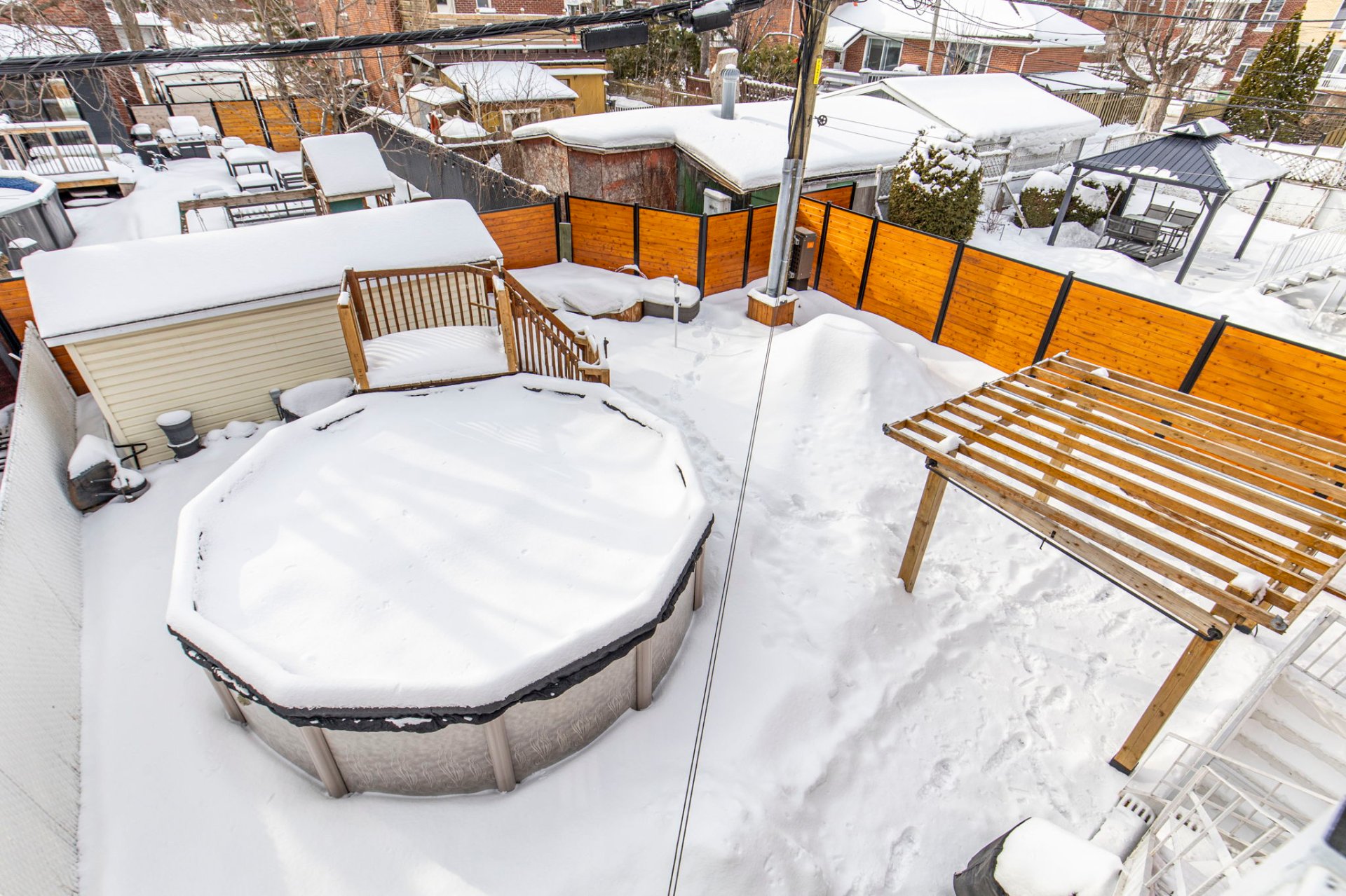 Lave-vaisselle, 2 mobiliers de rangement de la cuisine, étagère de rangement du hall d'entrée, lustres, thermopompe murale, système d'alarme avec caméra, piscine hors terre, chauffe-eau de piscine, pergola, cabanon, bac de rangement dans la cour, installation ballon-poire, support à vélos, abri d'auto
