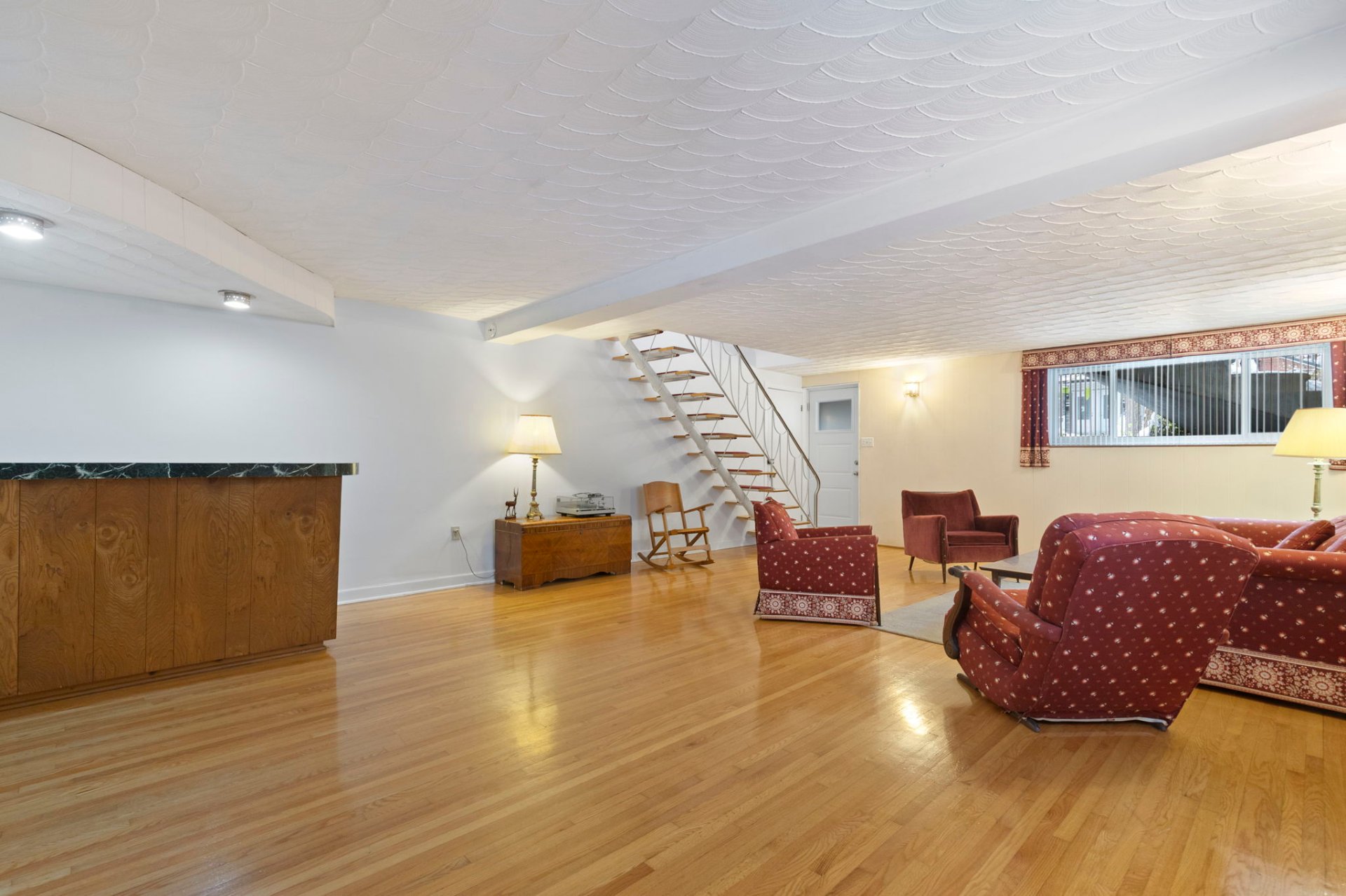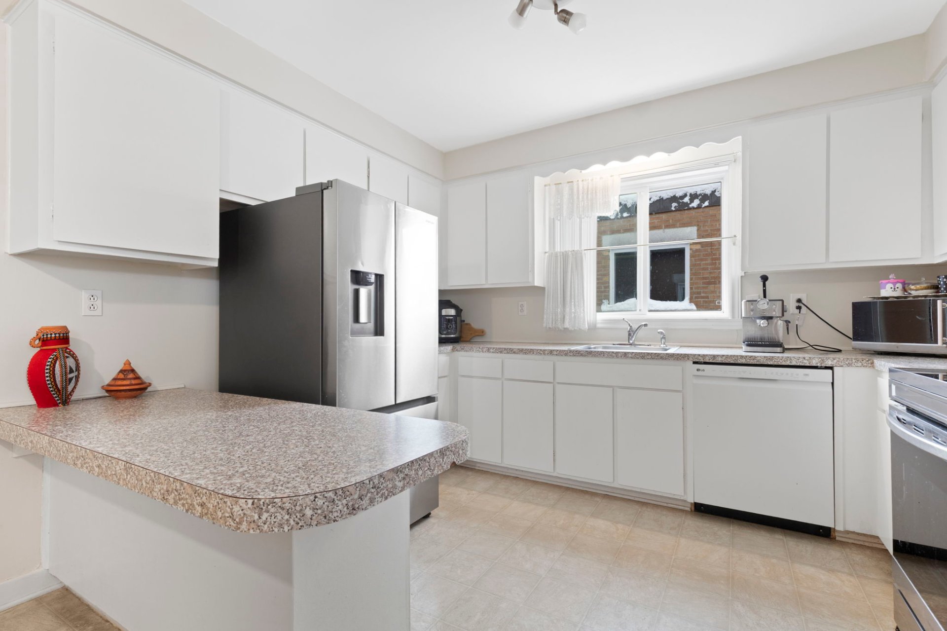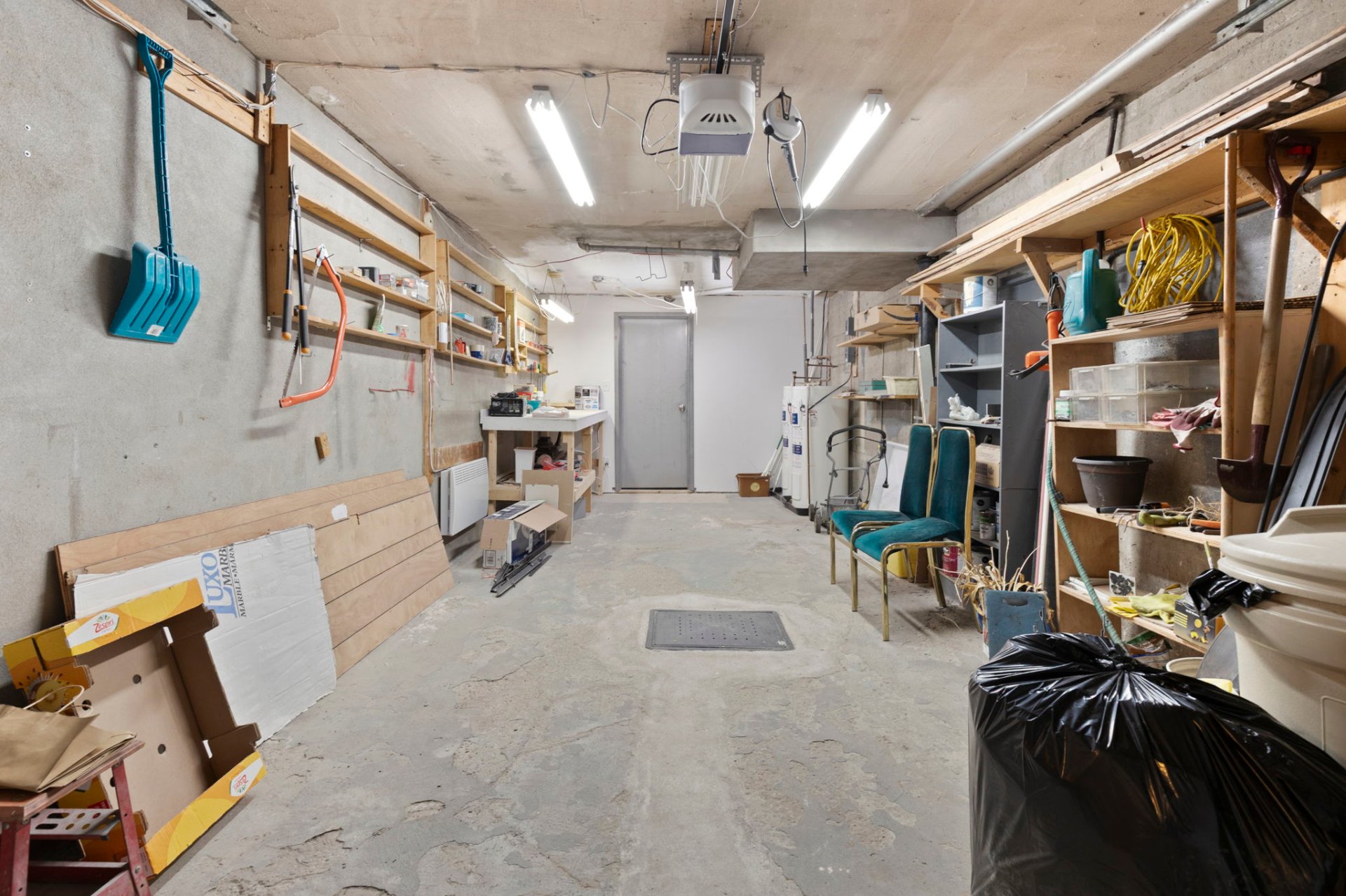 Réfrigérateur, cuisinière, 2 lave-vaisselles (RDC et logement à l'étage), 2 hottes (RDC et logement à l'étage), 2 thermopompes murales (RDC et logement à l'étage), miroir du sous-sol, étagère dans salle de rangement, établi au garage, lustres, stores, rideaux, ouvre-porte de garage, abri d'auto, tapis extérieurs en caoutchouc