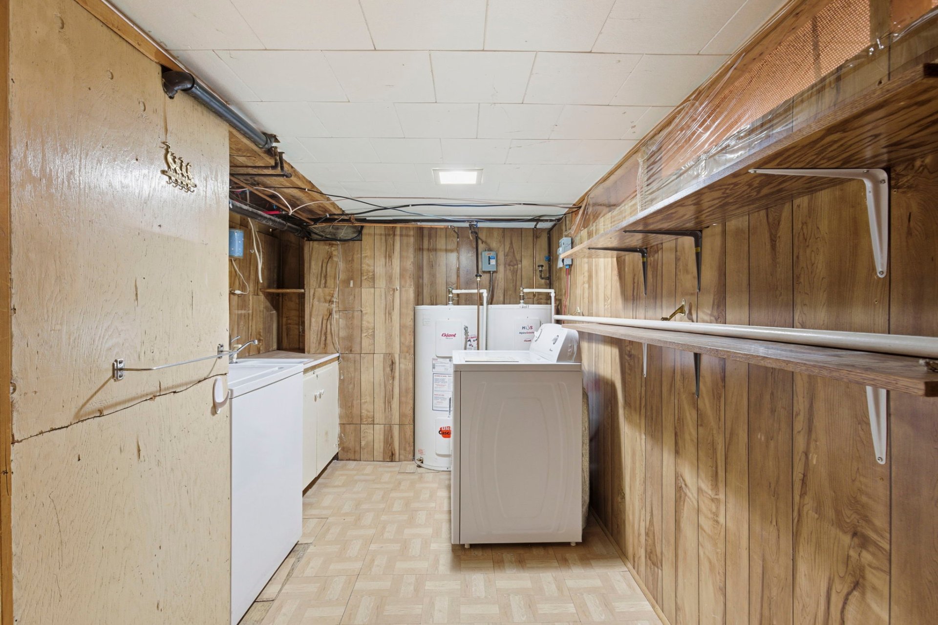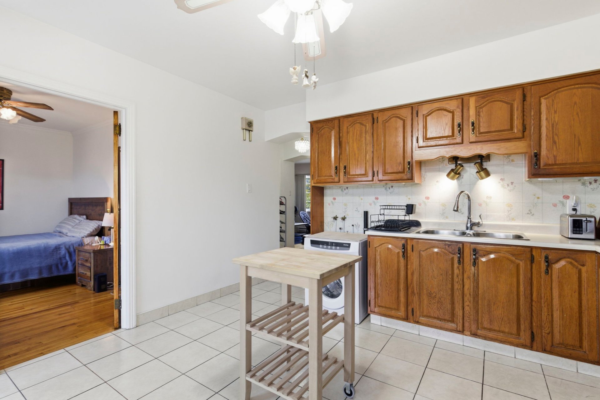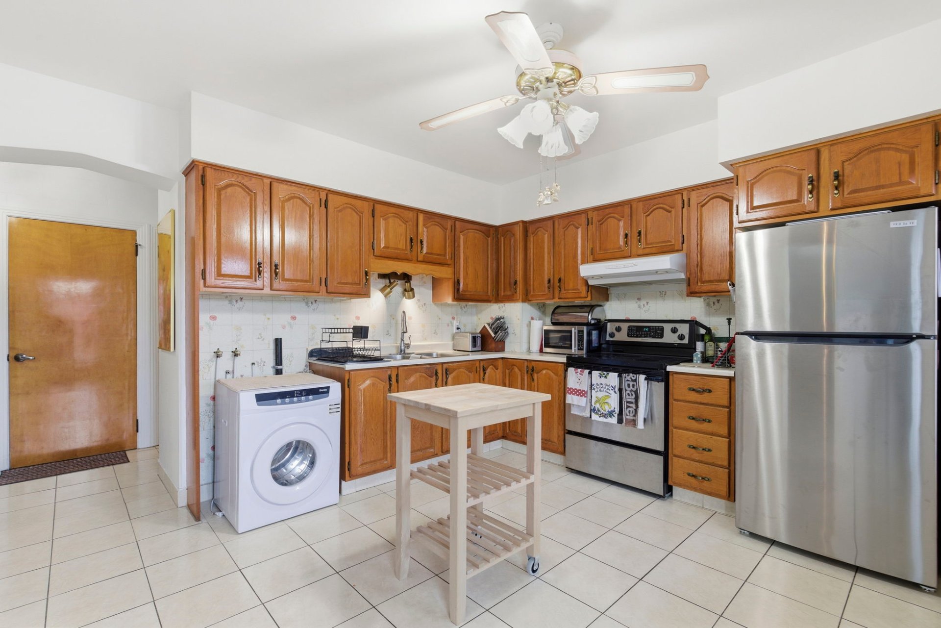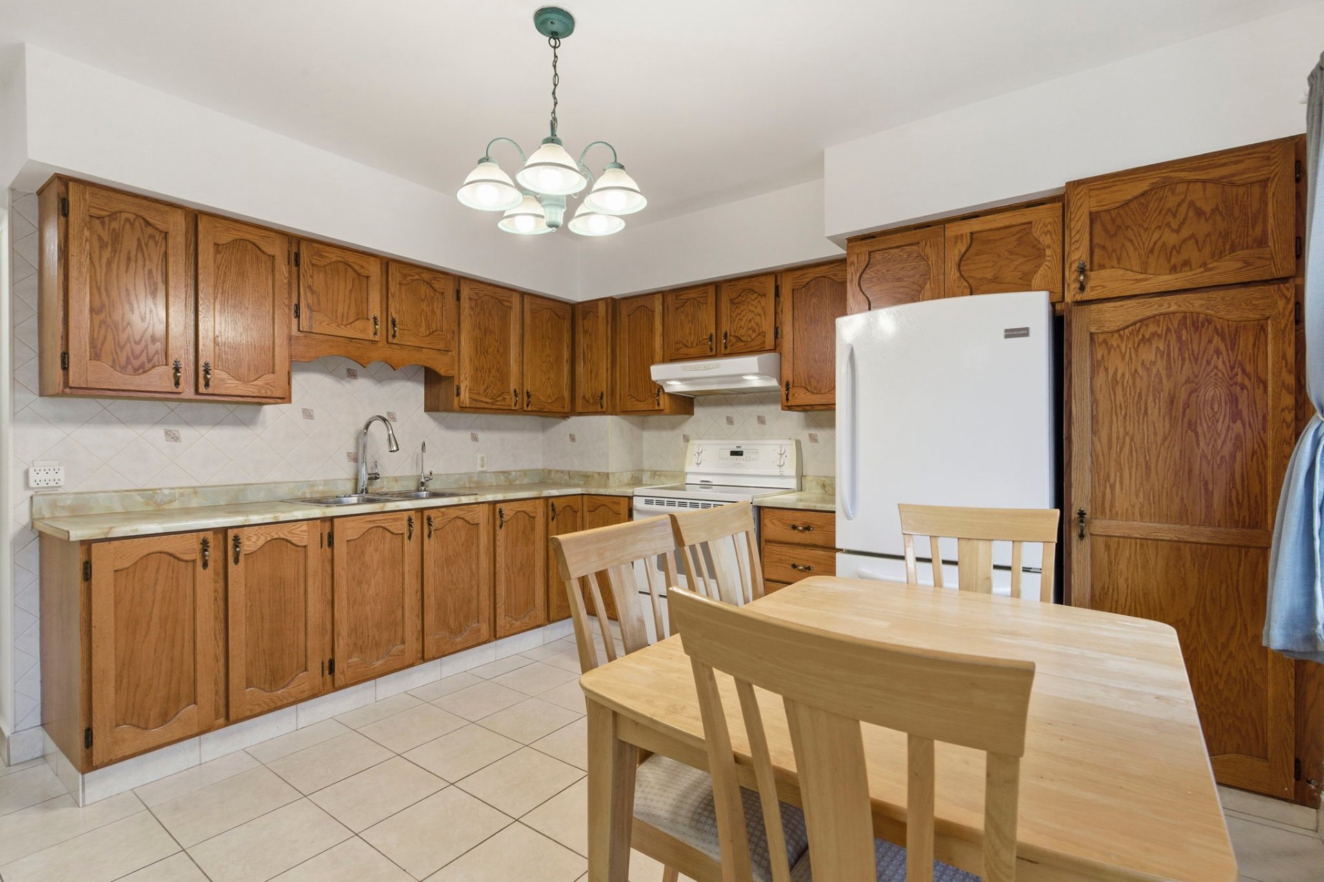 Luminaires, cuisinière, réfrigérateur, laveuse, sécheuse, vaisselier dans la salle à manger arrière, ensemble de chambre à coucher au RDC.