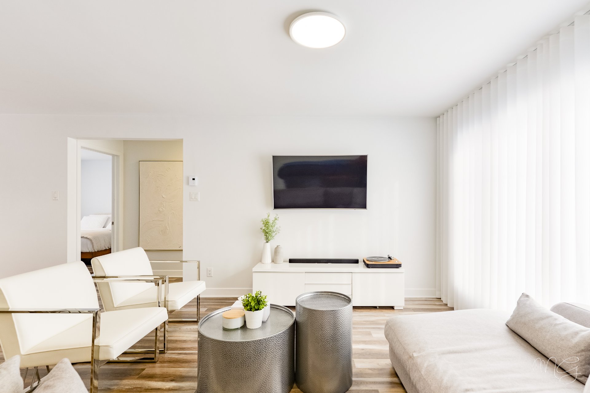 Voir plus Voir moinsRéfrigérateur, cuisinière, laveuse, sécheuse, SPA, mobilier (ouvert à vendre le tout meublé)
