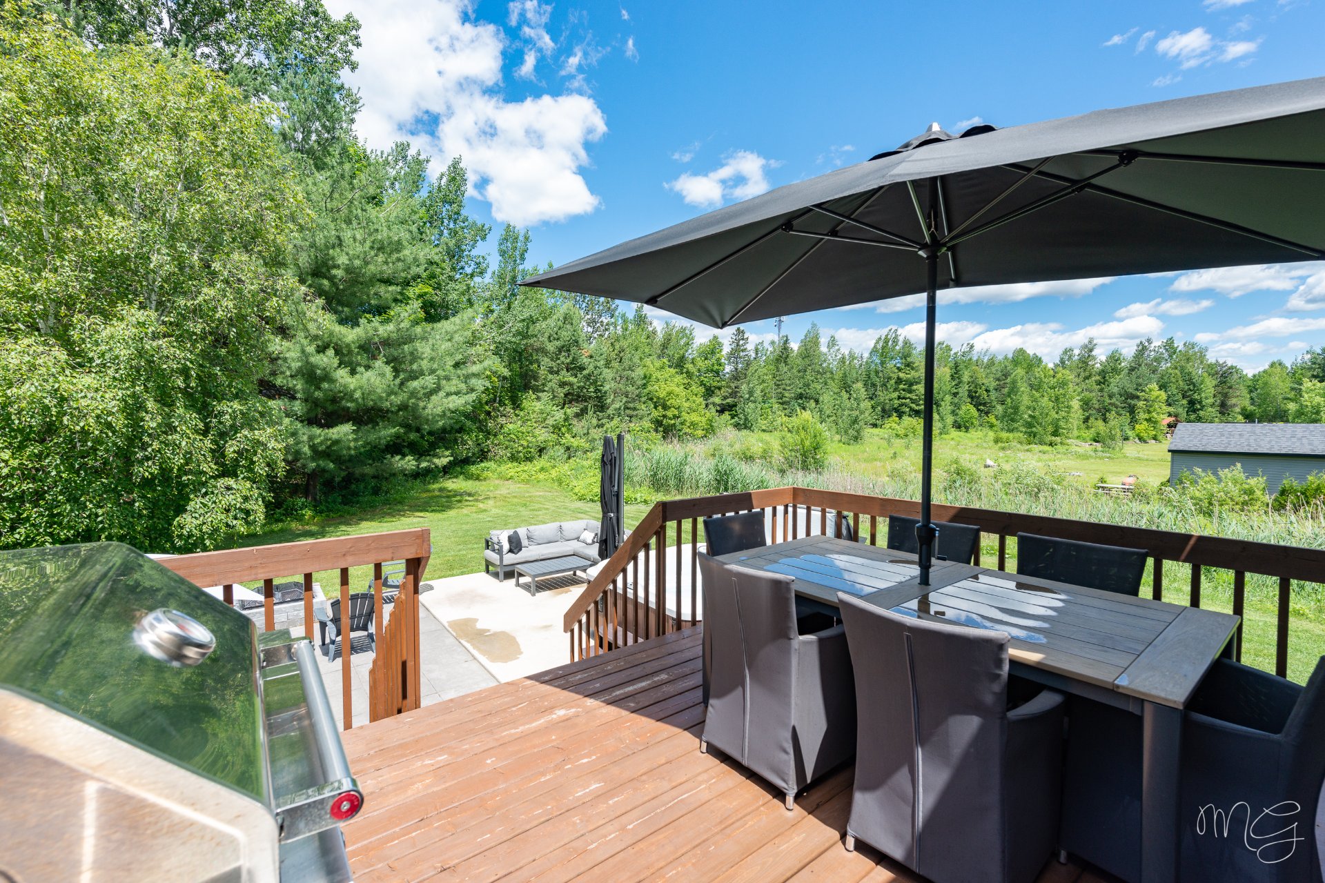 Luminaires, stores, pôles, rideaux, hotte de cuisinière, lave-vaisselle, système de traitement d'eau au sel (adoucisseur), système d'alarme relié à la centrale (45$/mois), balayeuse centrale & accessoires, thermopompe murale, support murale à télévision, système de caméra, miroirs des SDB, cabanon, borne électrique