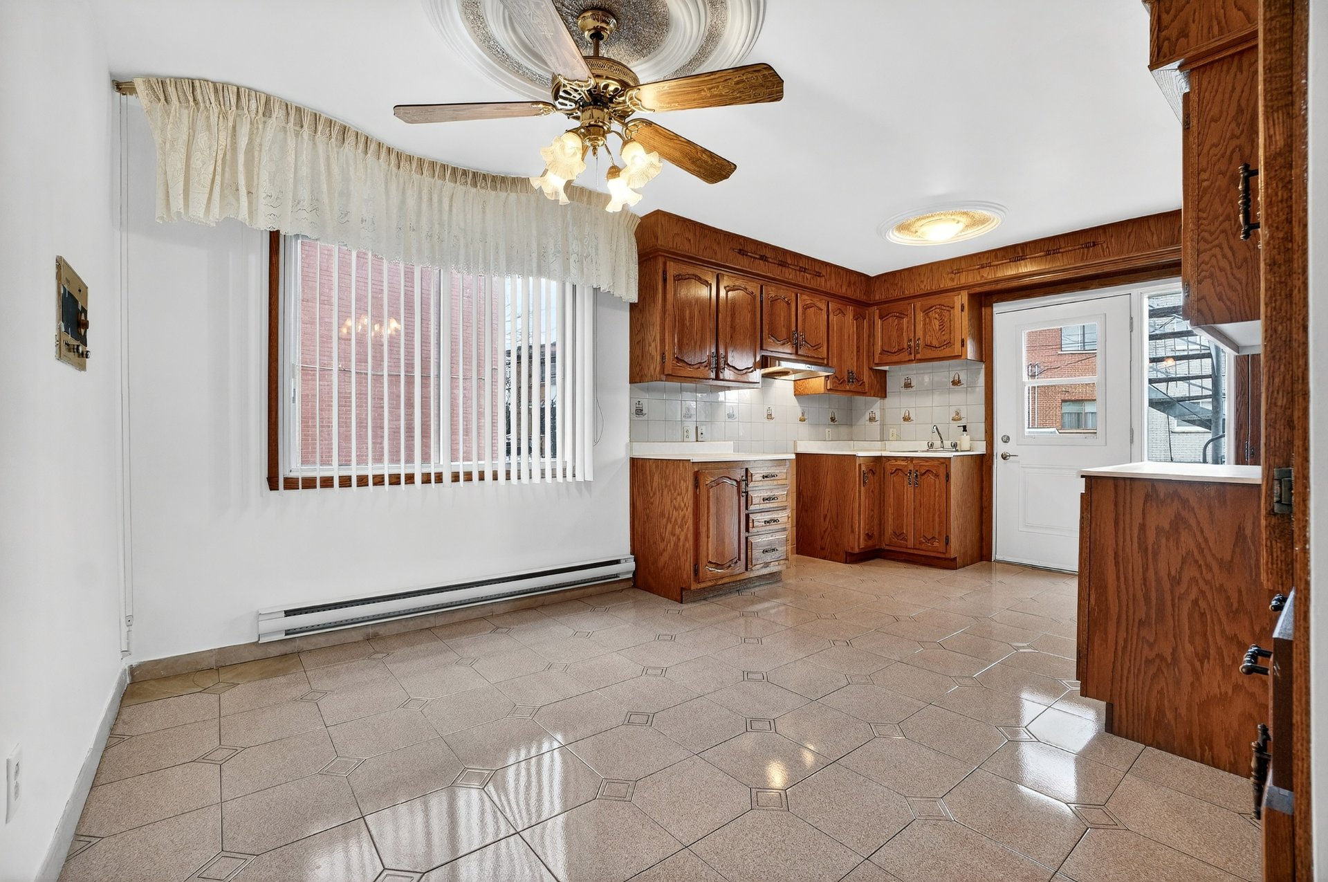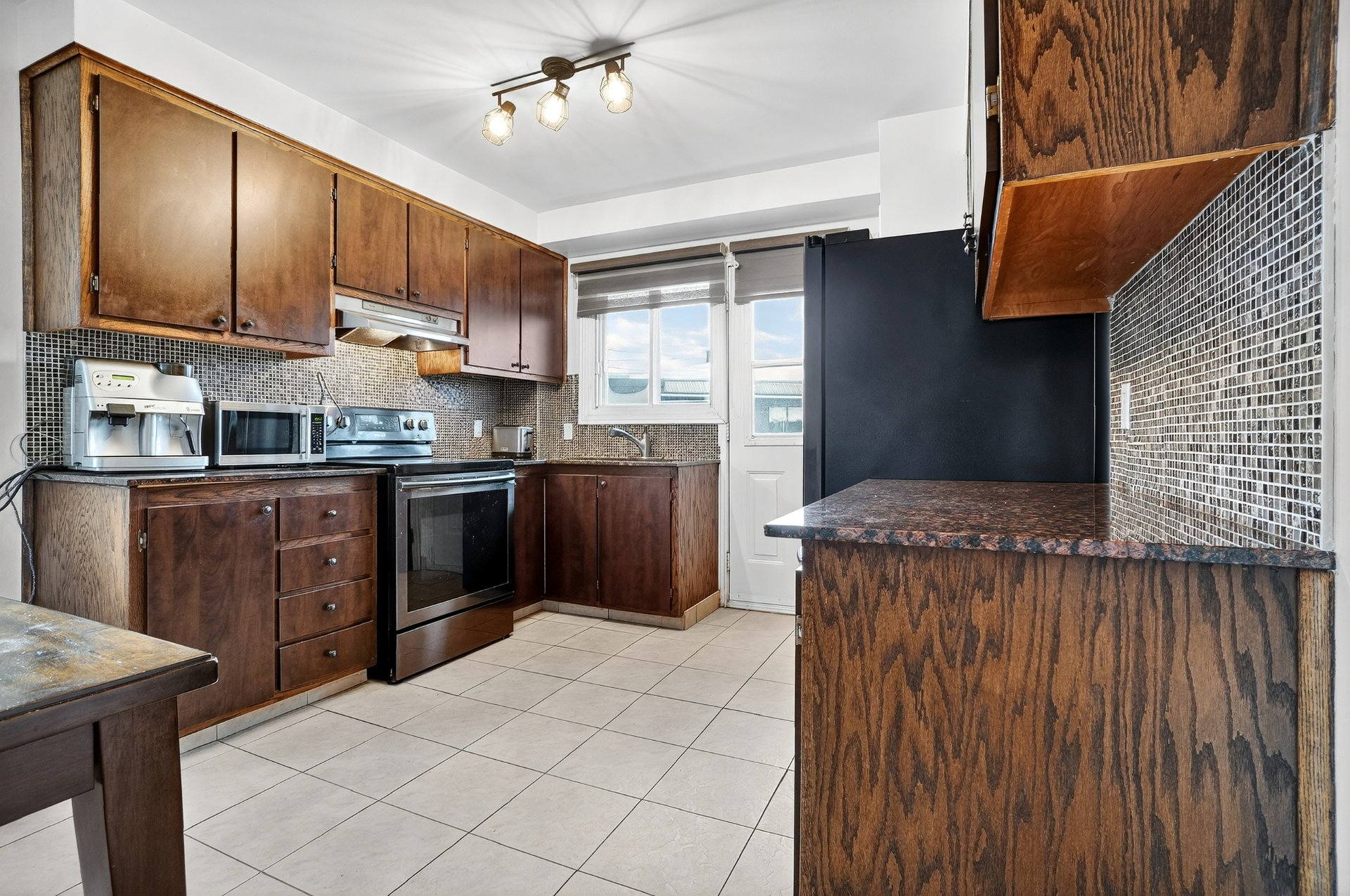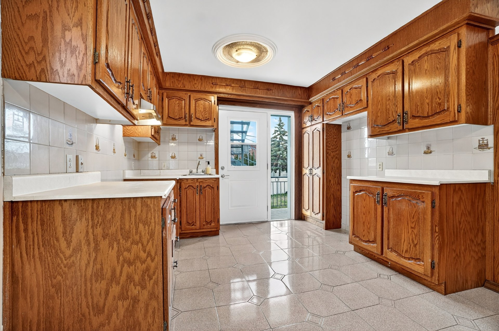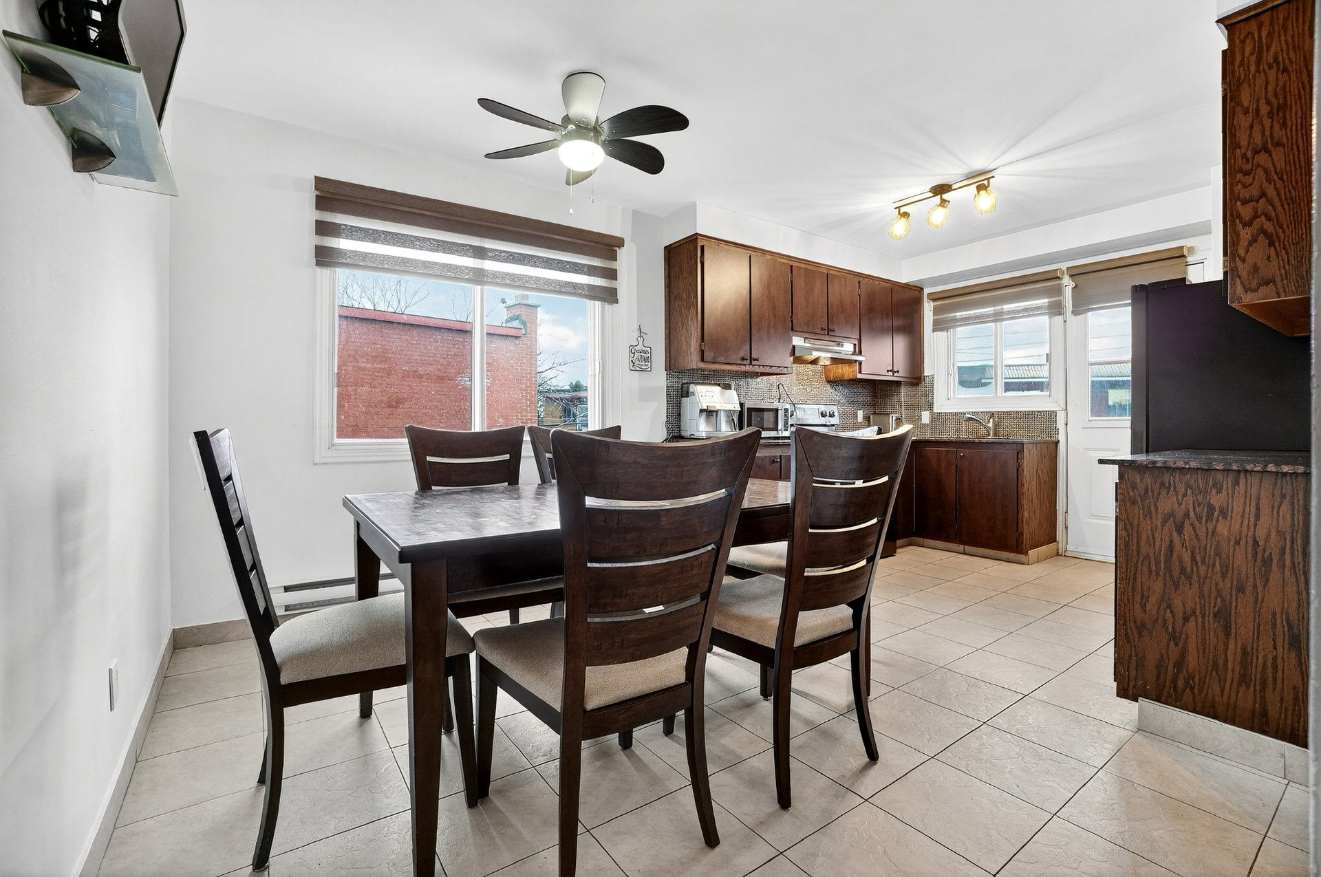 Welcome to 7955 Jean-Nicolet, Succession sale. Possible double occupancy. - Main floor the kitchen features oak cabinetry and ceramic tile flooring, and the bathroom also has ceramic tile. The three bedrooms and living room have hardwood floors. - Basement: Fully finished, it includes a kitchen, a family room, a full bathroom, and a bedroom. - Upper floor (5 1/2): This lovely upper floor features three bedrooms, a kitchen, a living room, and a renovated bathroom.The property also includes a double garage with a workshop. The front door was recently replaced.Large fenced lot.The location is ideal,close to all amenities