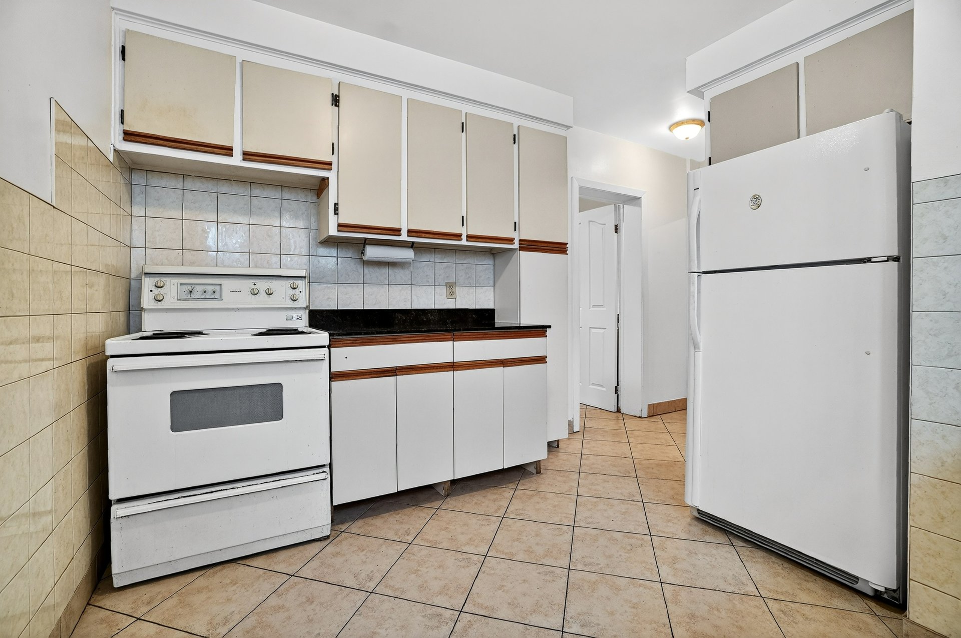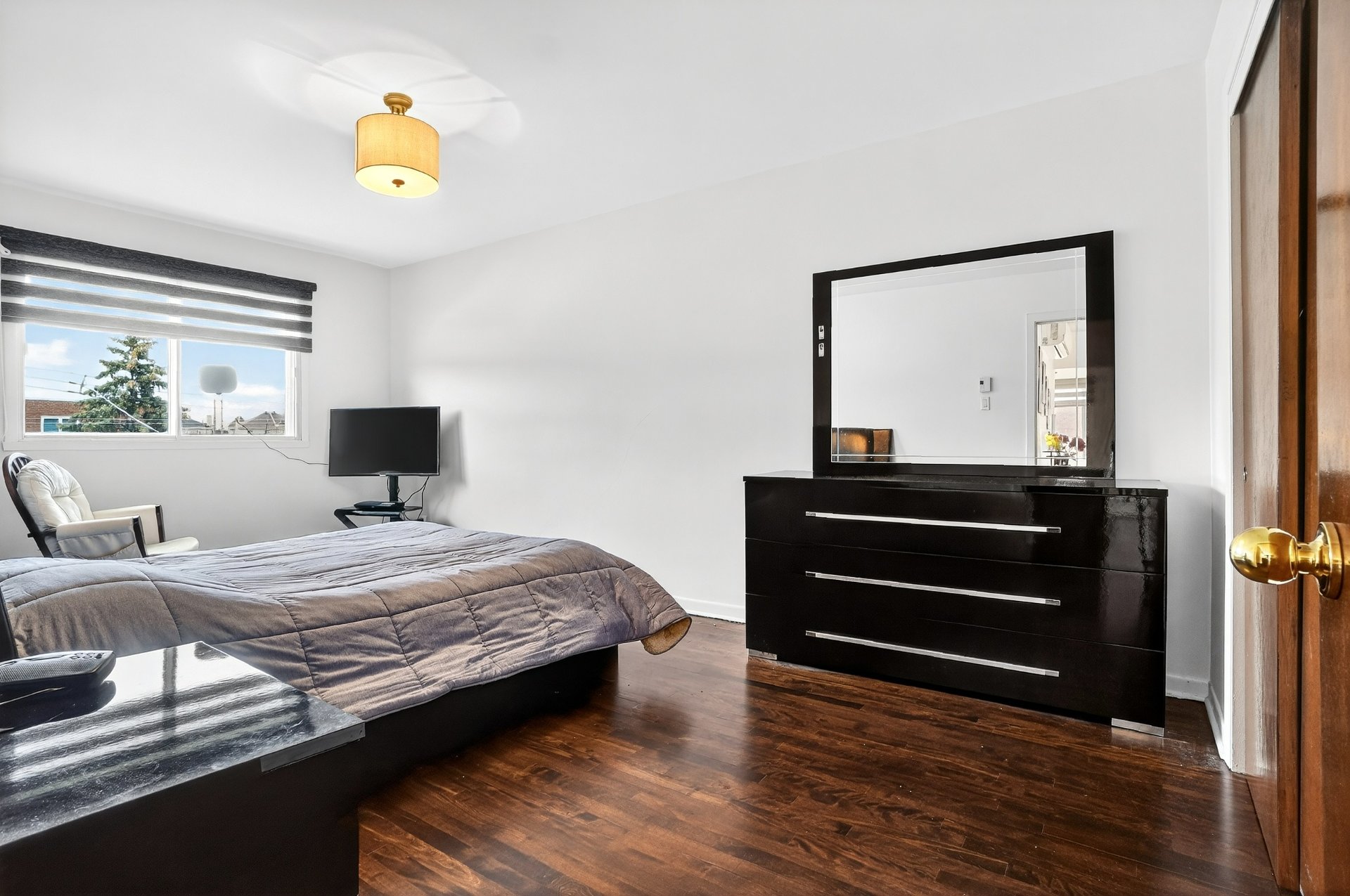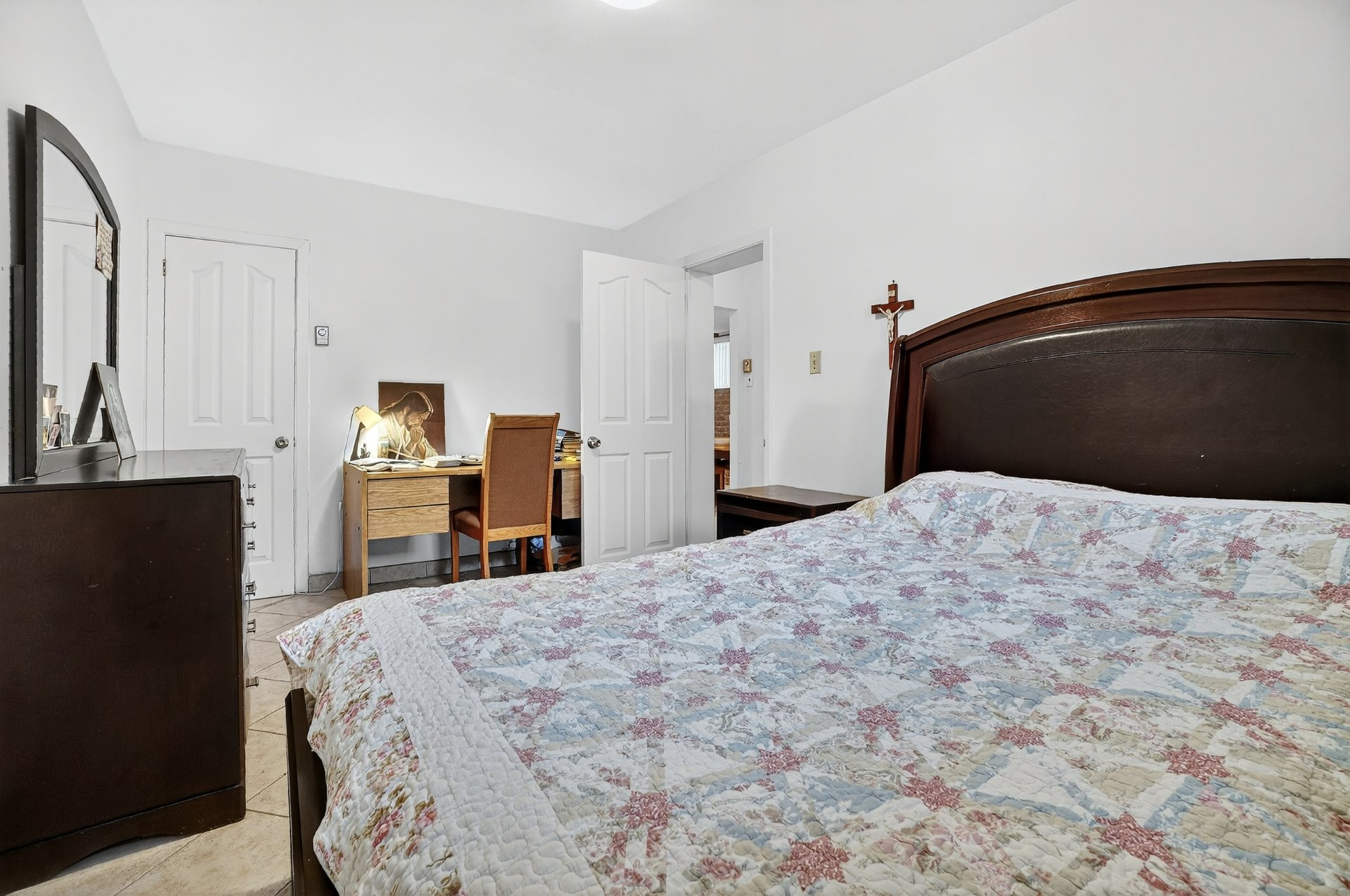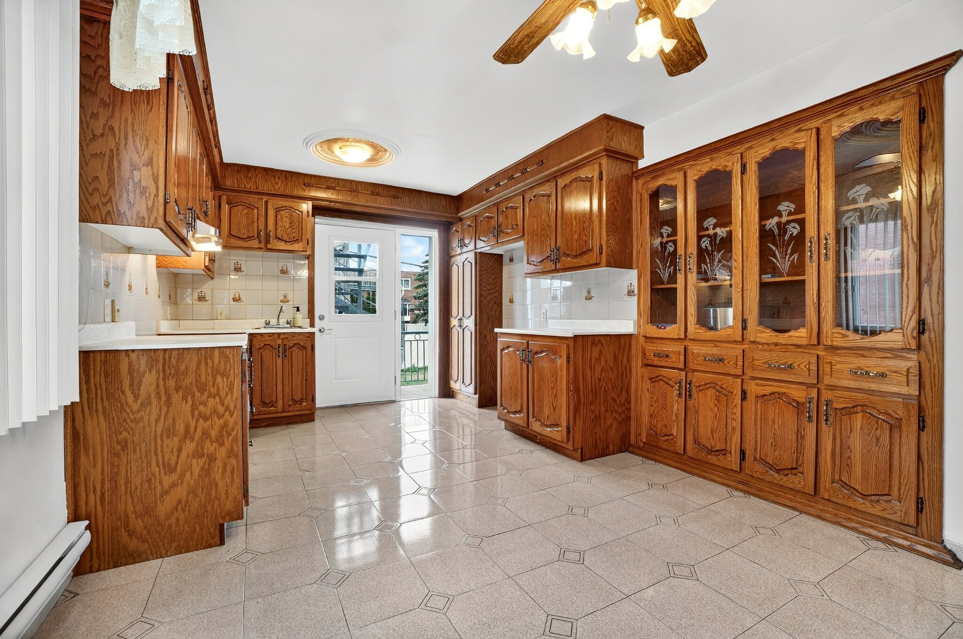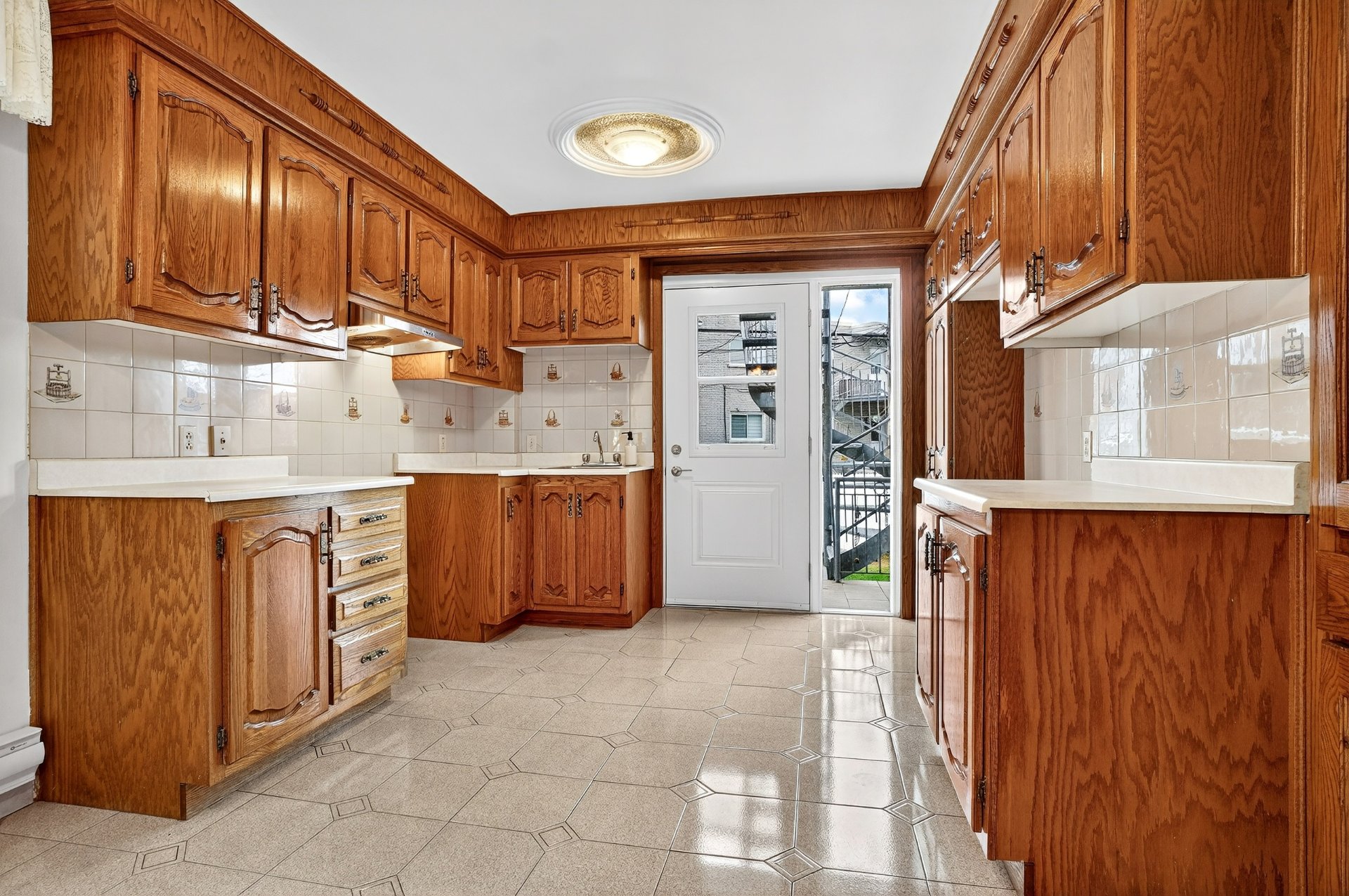Welcome to 7955 Jean-Nicolet, Succession sale. Possible double occupancy. - Main floor the kitchen features oak cabinetry and ceramic tile flooring, and the bathroom also has ceramic tile. The three bedrooms and living room have hardwood floors. - Basement: Fully finished, it includes a kitchen, a family room, a full bathroom, and a bedroom. - Upper floor (5 1/2): This lovely upper floor features three bedrooms, a kitchen, a living room, and a renovated bathroom.The property also includes a double garage with a workshop. The front door was recently replaced.Large fenced lot.The location is ideal,close to all amenities