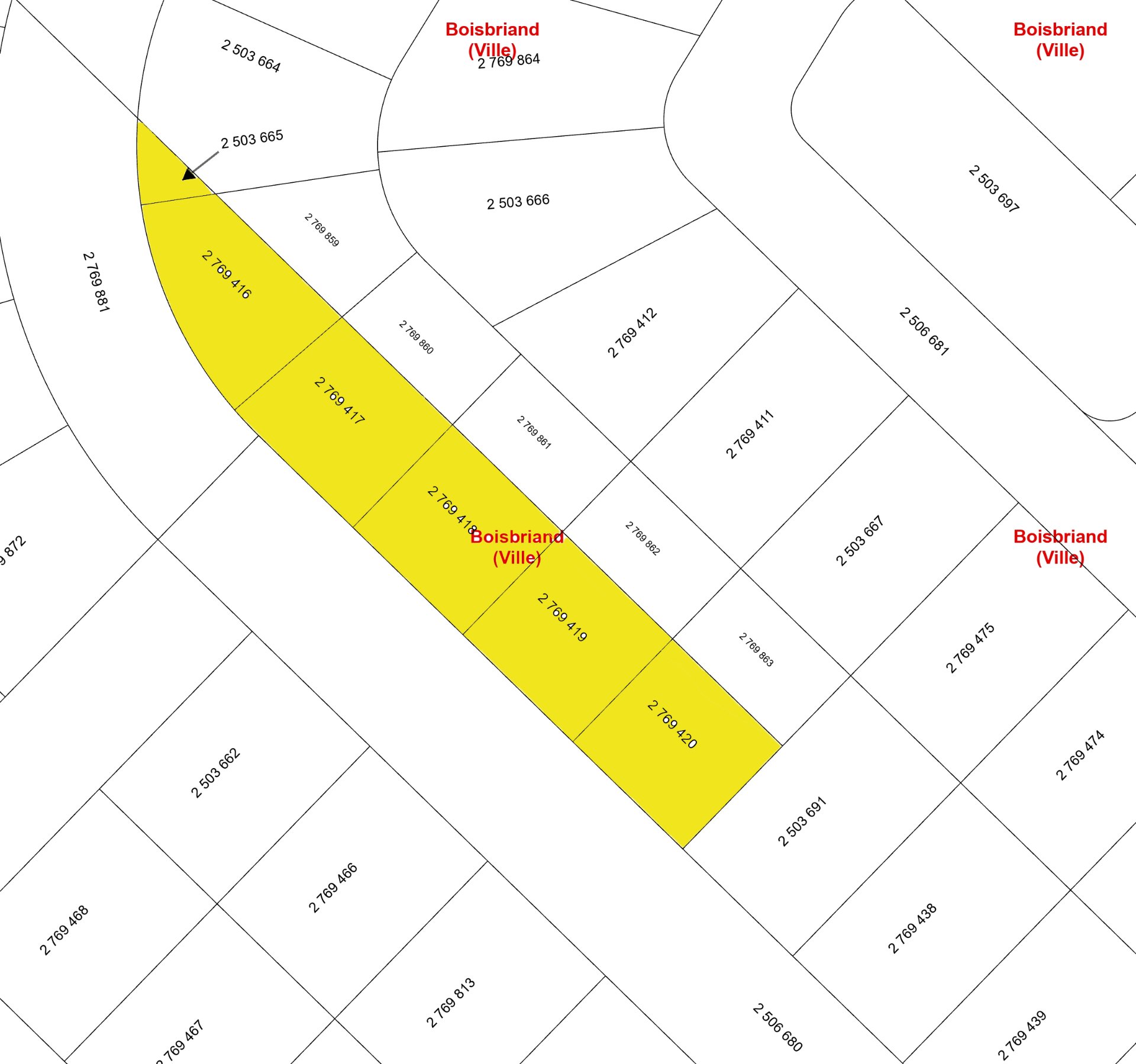 The group of lots forms a residential project that has already been subdivided and registered in the cadastre, each identified by its own lot number, in a strategic sector of Boisbriand. Although currently designated as agricultural land following a refusal by the CPTAQ in 1997 a refusal that applied at the time to a territory much larger than the one concerned by the present project, the context has evolved. A future application, this time targeted and limited solely to this already subdivided area for residential purposes, could receive a different response from the competent authorities.