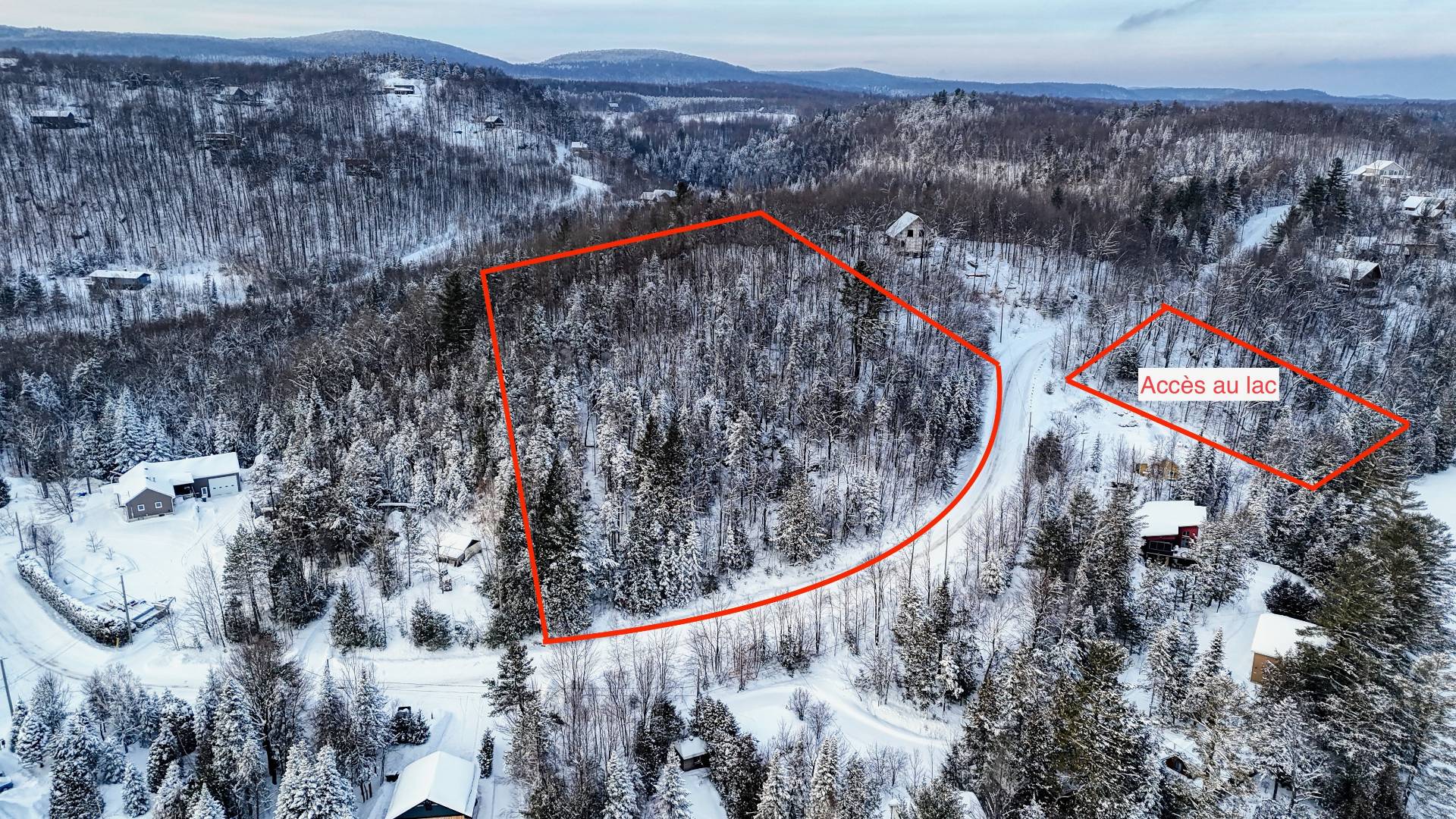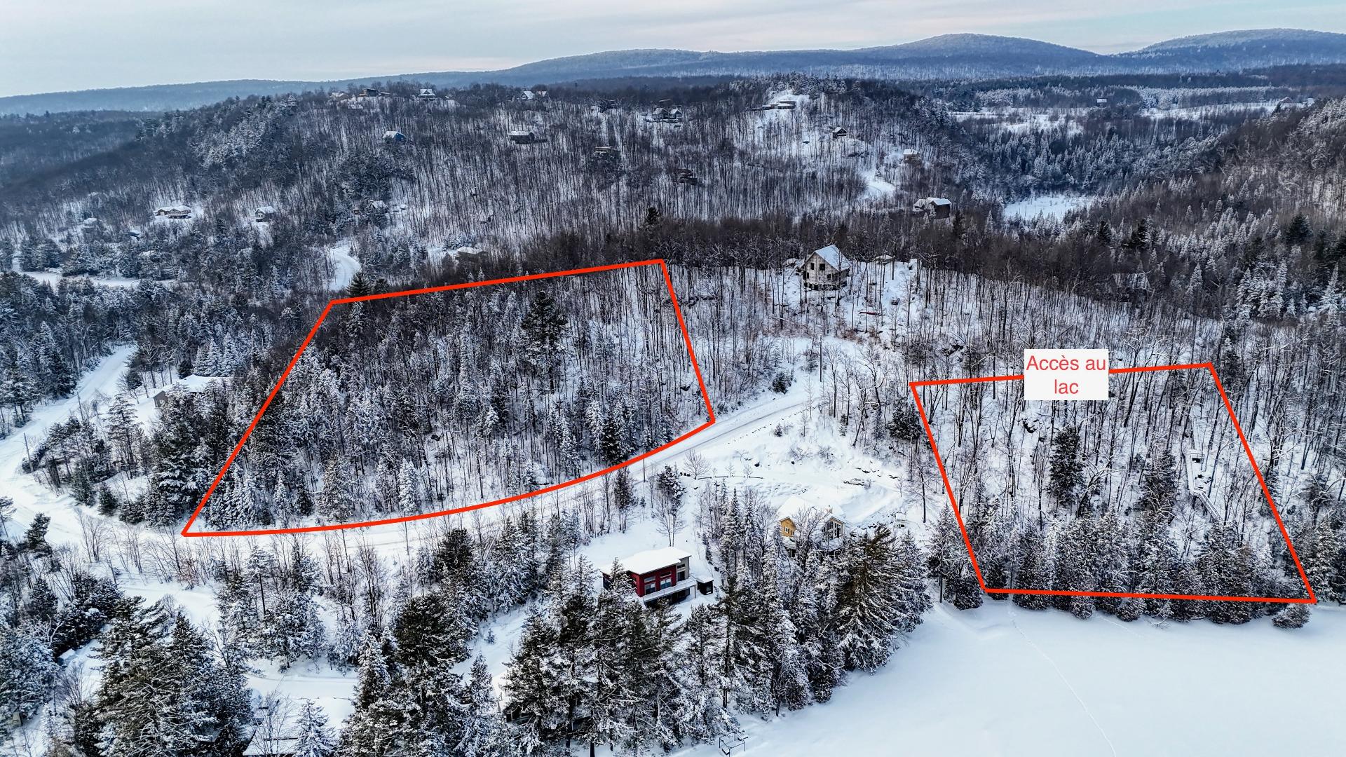 Prestigious 7.5-acre elevated lot offering excellent potential for views of Lake Simoneau and the mountains. Includes a 1/6 share of a waterfront lot of over 41,000 sq ft, with a dock and grand staircase. The main lot, comprised of three registered parcels, allows for the construction of two residences. A partially developed access road and site plans are already in place. A rare opportunity to realize an exclusive residential project in one of Orford's most sought-after areas.
