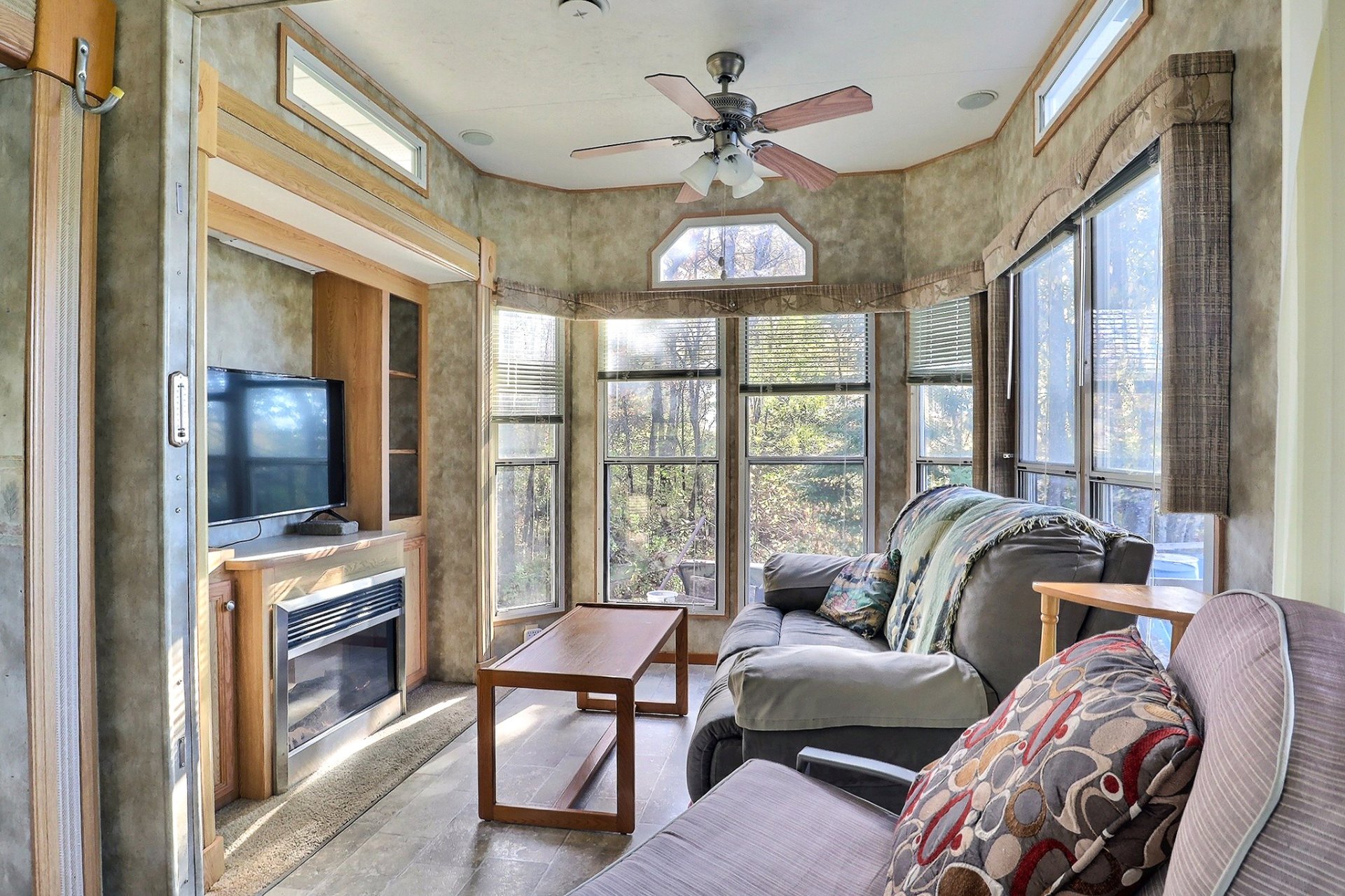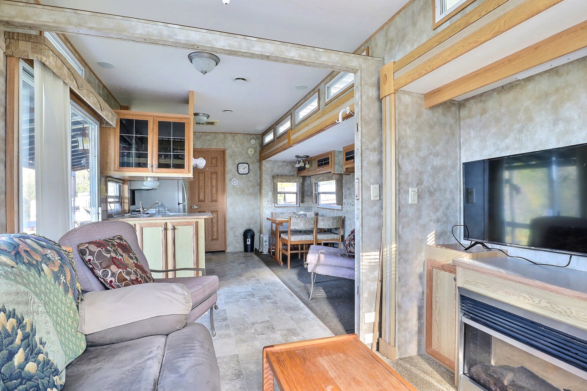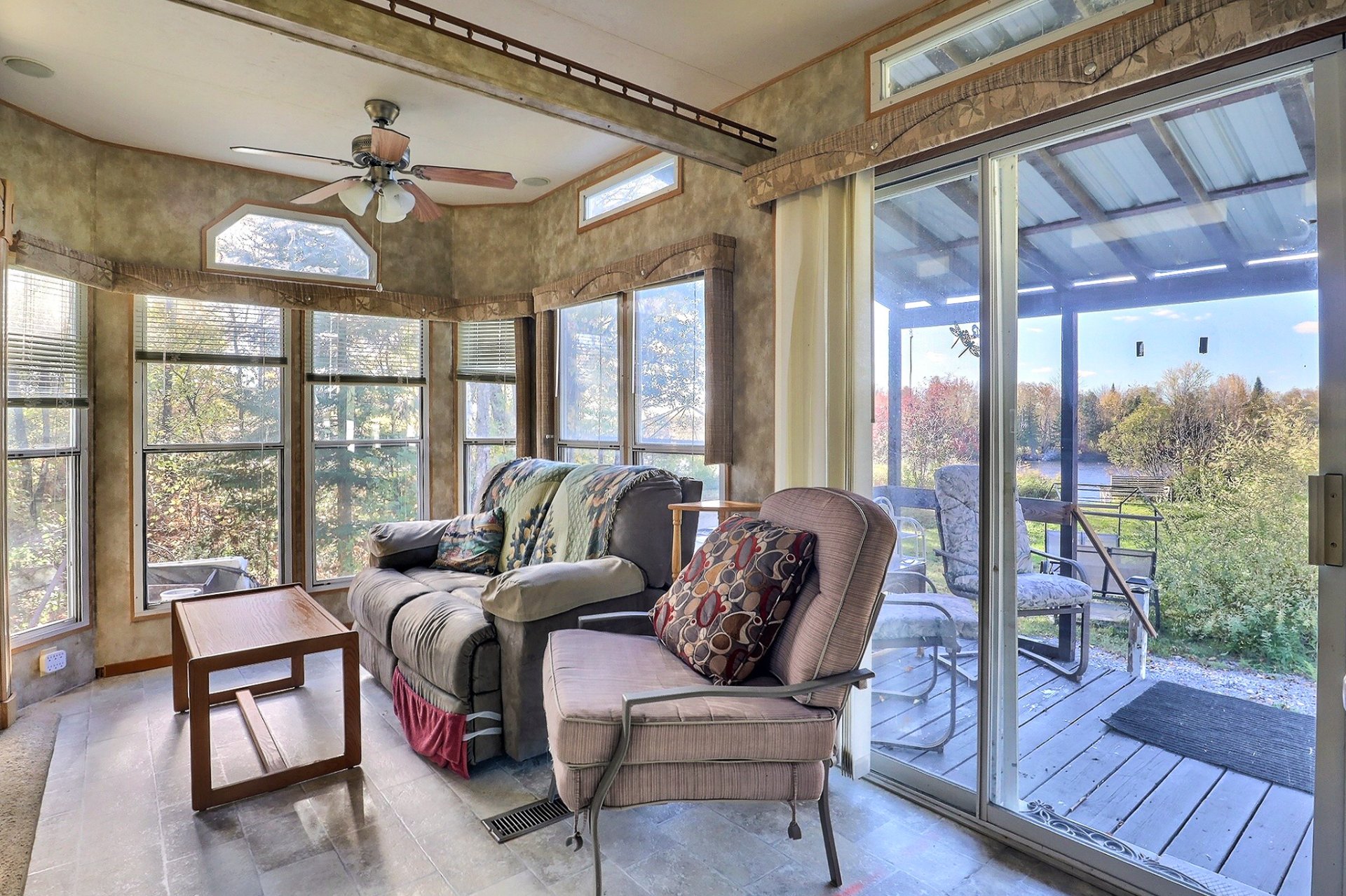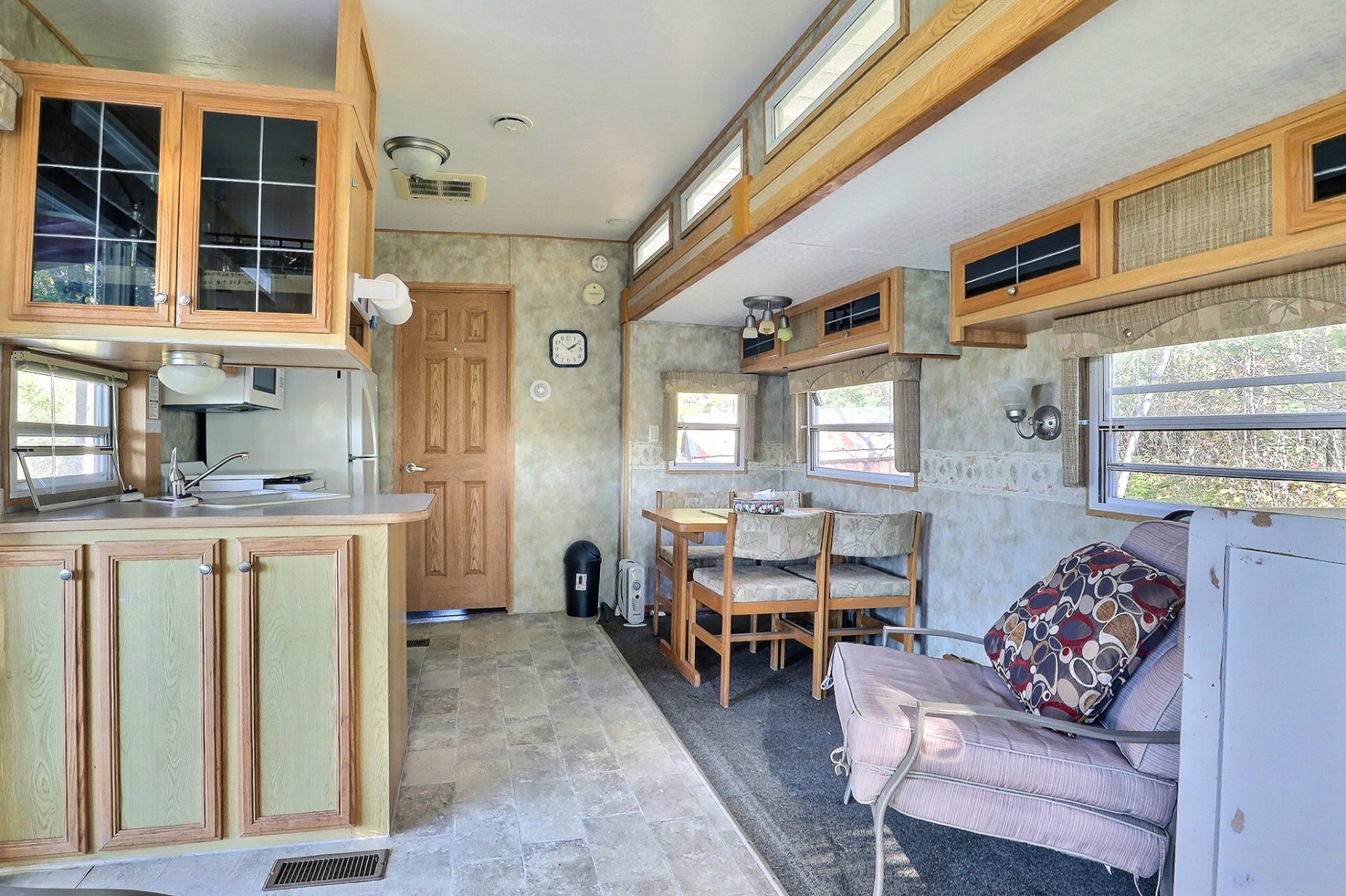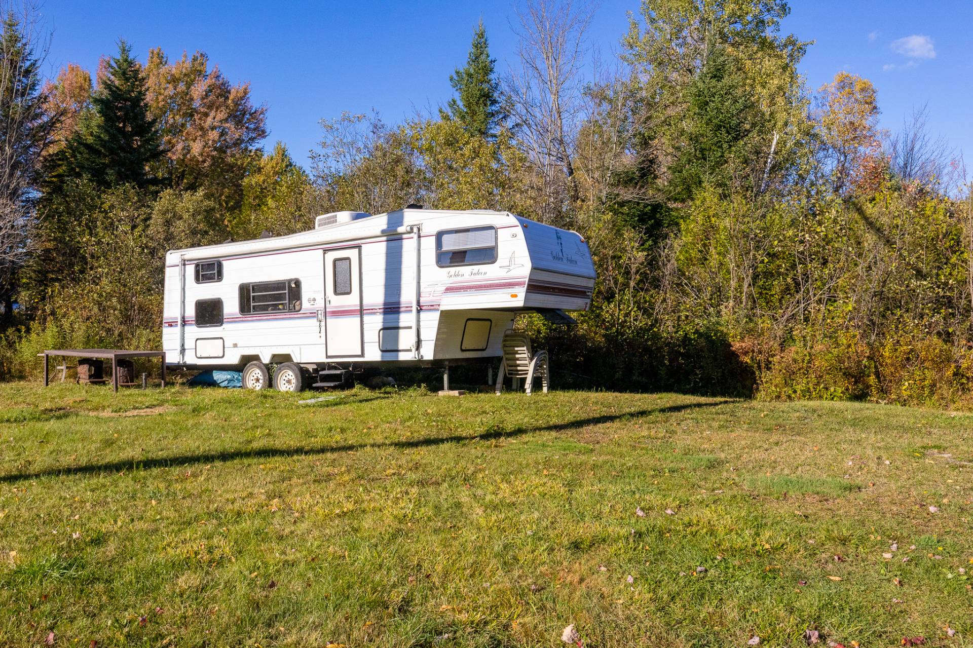 Land of 53,325 ft² on the edge of the Saint-François River, located at 2121 chemin Fontaine in Weedon, including a 38-foot trailer with a gallery and a fifth-wheel drive, as well as several pieces of equipment and furniture currently in place. With nearly 255 linear feet at the water's edge, it offers a peaceful setting to enjoy outdoor activities. Navigation possible over several kilometers connecting the river to salmon and Lake Louise. Close to snowmobile and mountain bike trails. Land in flood zone 0-20 years, not buildable, with Hydro-Québec transport line.