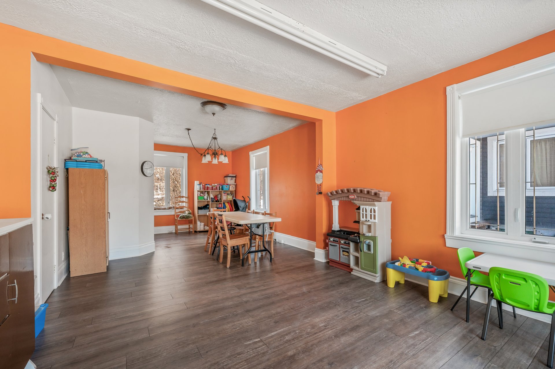 Charmante propriété en brique offrant un beau potentiel, que ce soit pour y maintenir une garderie familiale à la maison ou simplement pour y accueillir votre propre famille. Elle propose 3 chambres sur le même étage ainsi qu'une grande pièce actuellement utilisée pour la garderie, pouvant facilement être convertie en salle familiale, bureau, salle de jeux ou même chambre supplémentaire selon vos besoins. Vous apprécierez aussi la cour arrière intime, le cachet chaleureux de la propriété et son grand potentiel d'aménagement. Une opportunité polyvalente et pleine de possibilités!