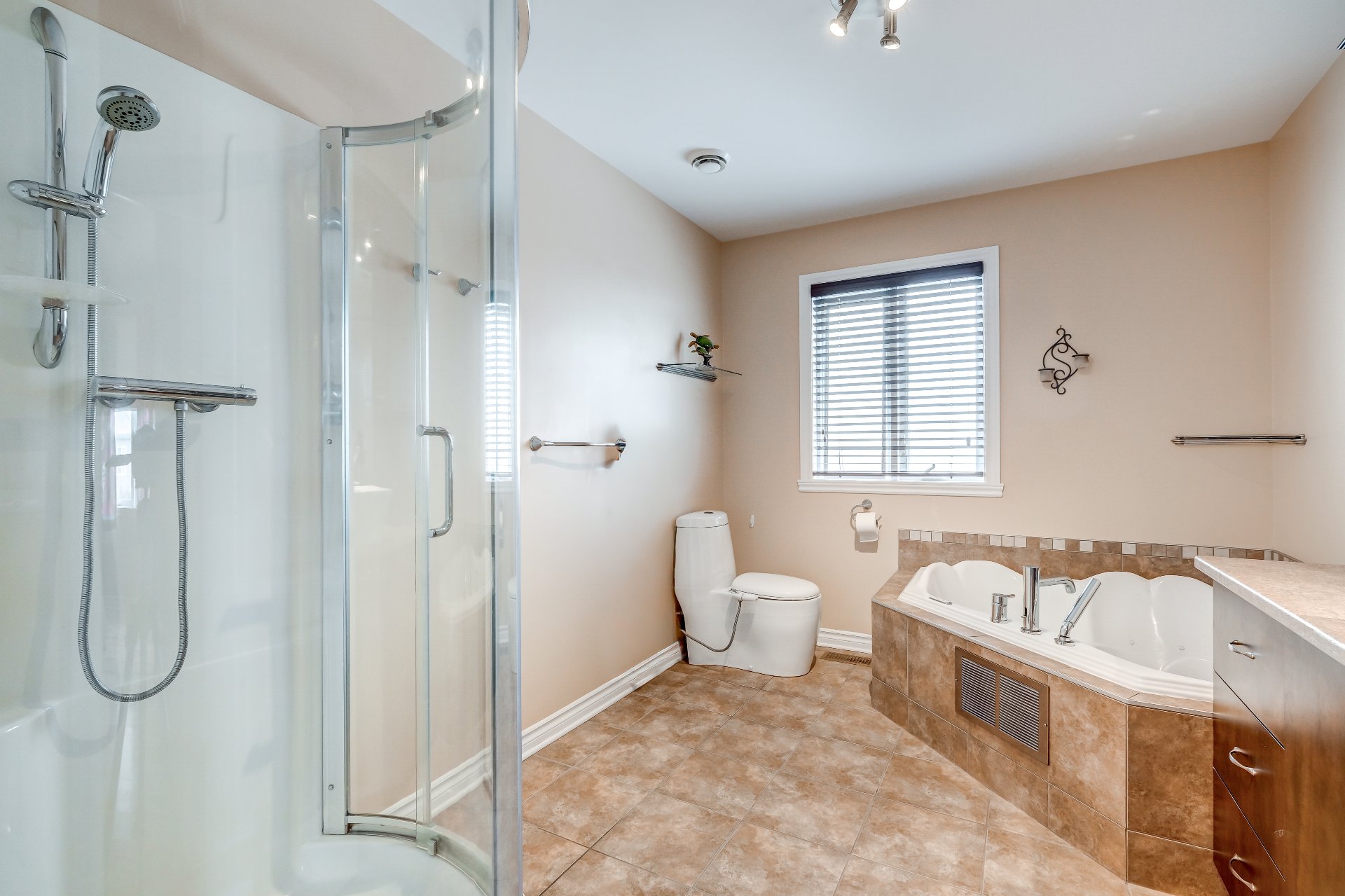 Fixtures, stores, rideaux, balayeuse centrale et ses accessoires, ouvre-porte électrique du garage, spa (15 ans), accessoires de piscine, gazebo, tablettes de verre de la salle de bain à l'étage, bibliothèque dans le ...