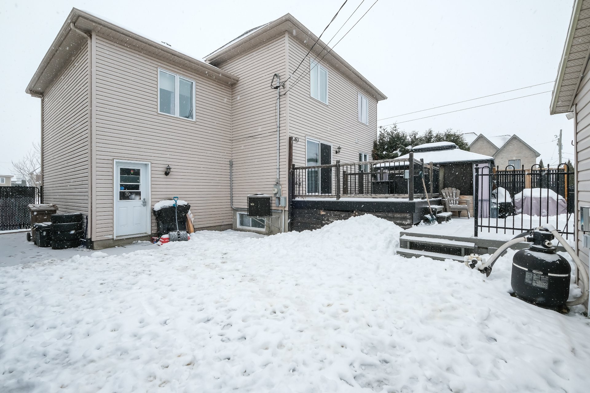Superbe propriété à étages avec garage intégré et piscine semi-creusée, idéalement située sur un coin de rue au coeur d'un quartier familial et paisible. Parfaite pour une grande famille, elle offre 7 chambres à coucher modulables selon vos besoins, 2 salles de bain et une salle d'eau. Vous profiterez d'un sous-sol entièrement aménagé, d'une vaste cour intime agrémentée d'une piscine et d'un espace gazebo, idéal pour savourer pleinement les beaux jours. Parmi ses nombreux atouts, la propriété dispose d'un aspirateur central, d'un climatiseur central et d'un magnifique foyer au gaz naturel, ajoutant confort et élégance à l'ensemble!