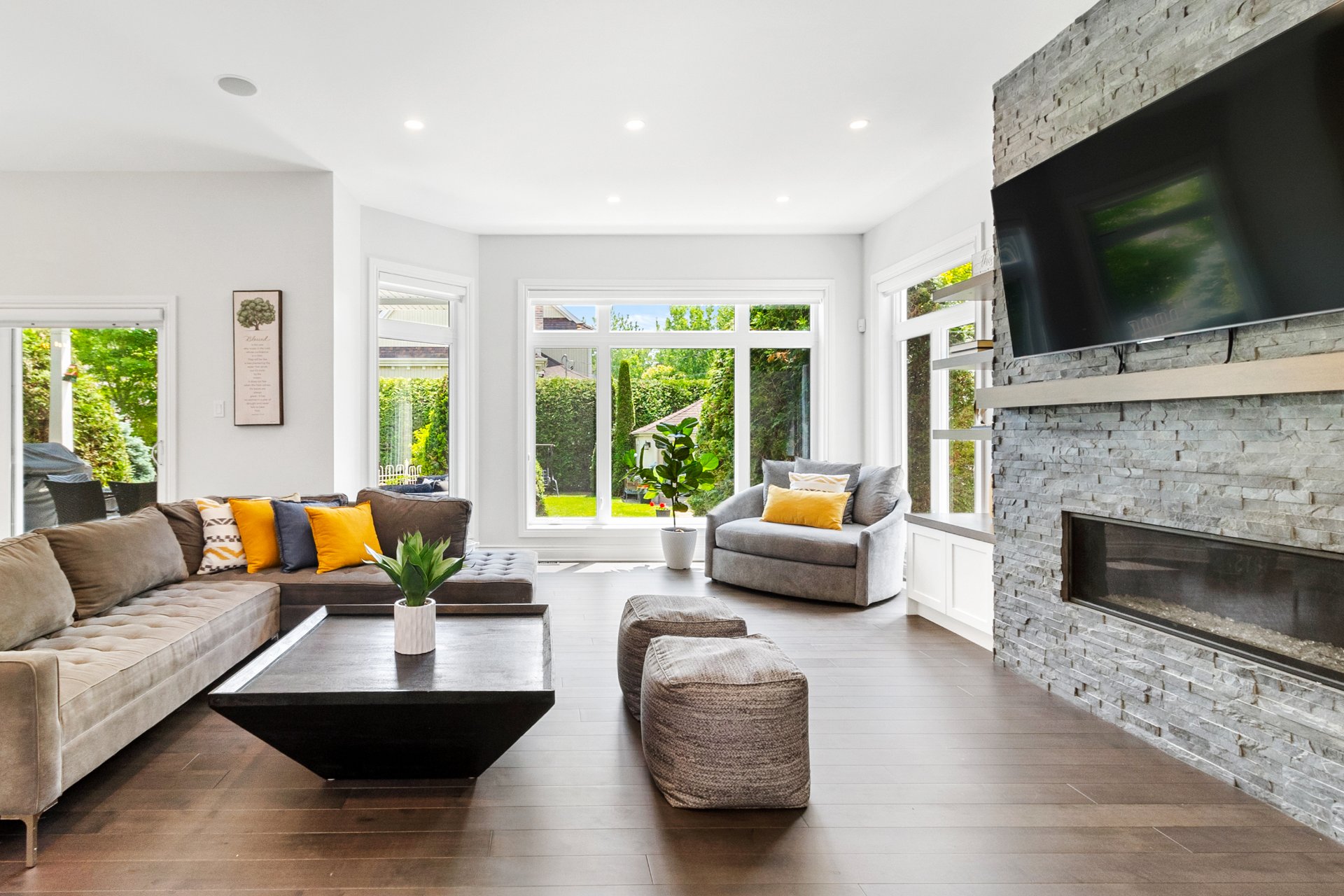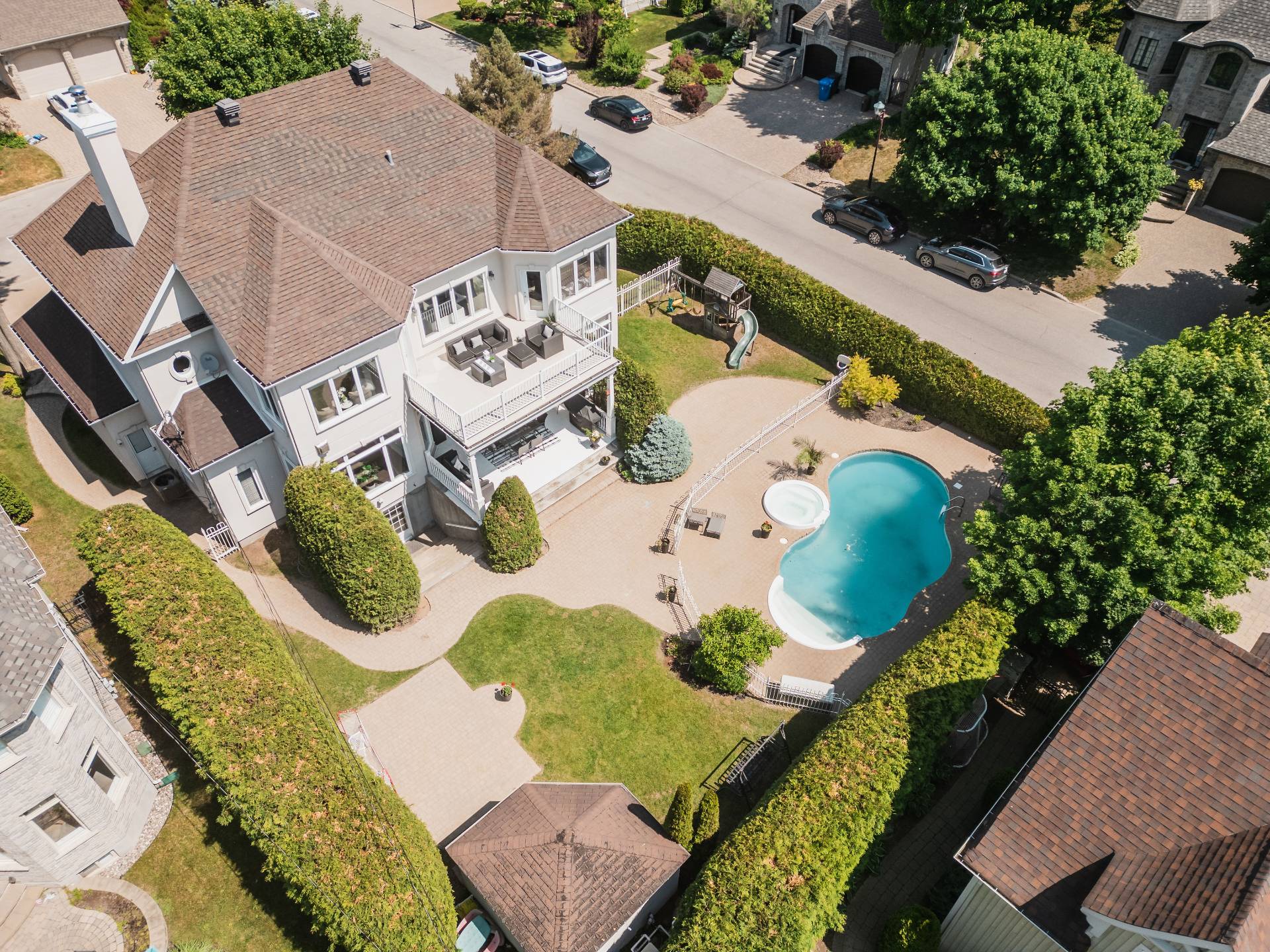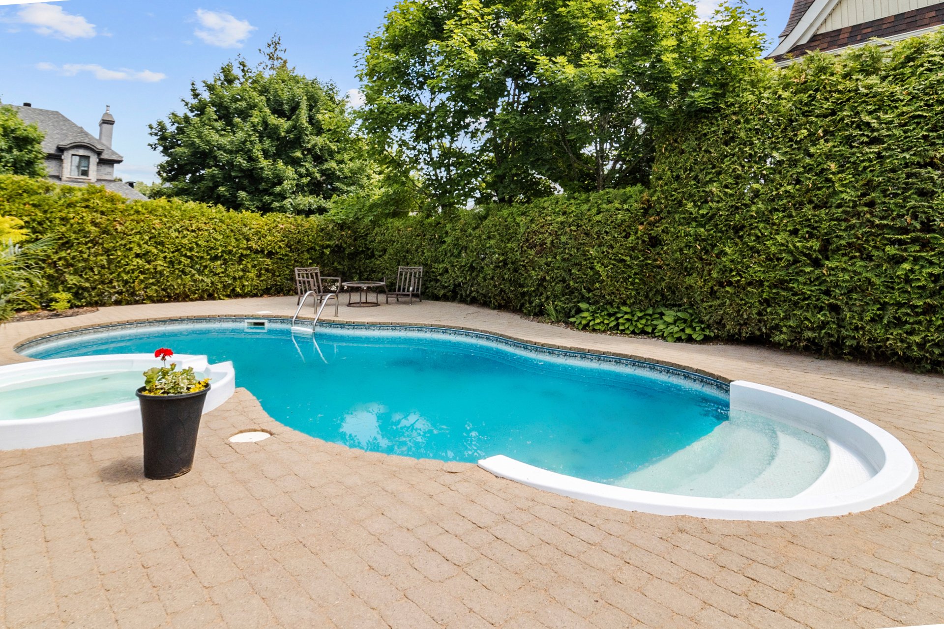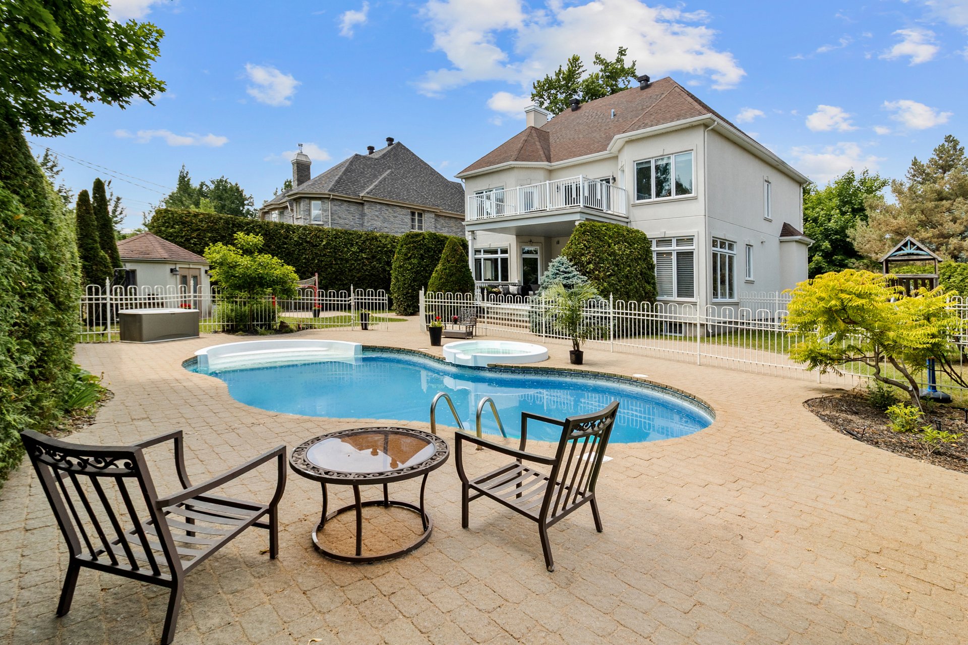 Tous les luminaires, à l'exception de celui de la chambre principale, habillages de fenêtres (stores, rideaux et tringles). Réfrigérateur de la cuisine (2024), hotte de cuisine (2018), nouveau four encastré avec micro-ondes (2025), lave-vaisselle (2018), plaque de cuisson au gaz naturel. Ouvre-porte de garage électrique, système d'arrosage automatique, ainsi que tous les équipements de la piscine au sel et sa thermopompe.Sofa du sous-sol. Chauffe eau 2025