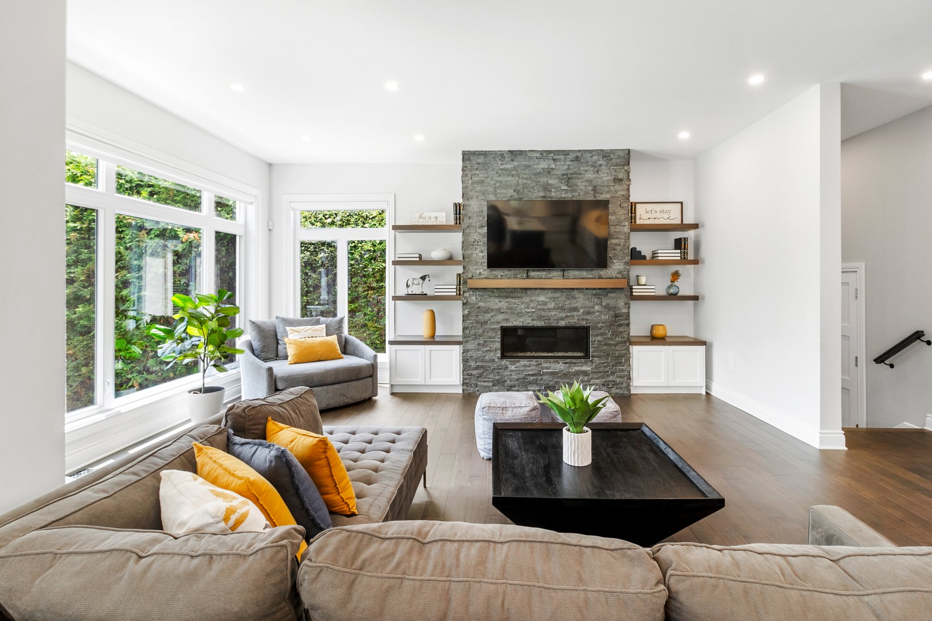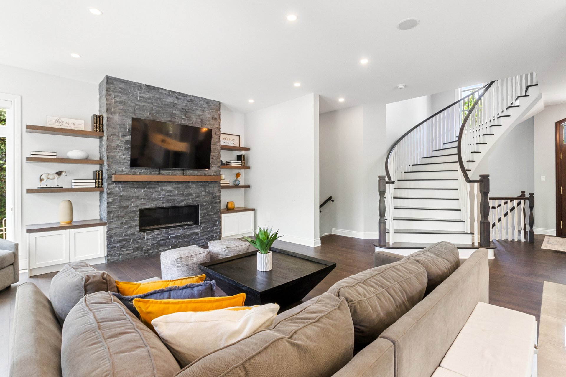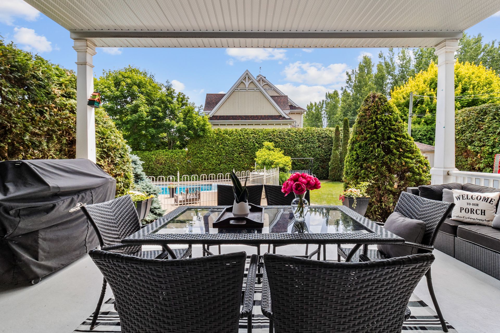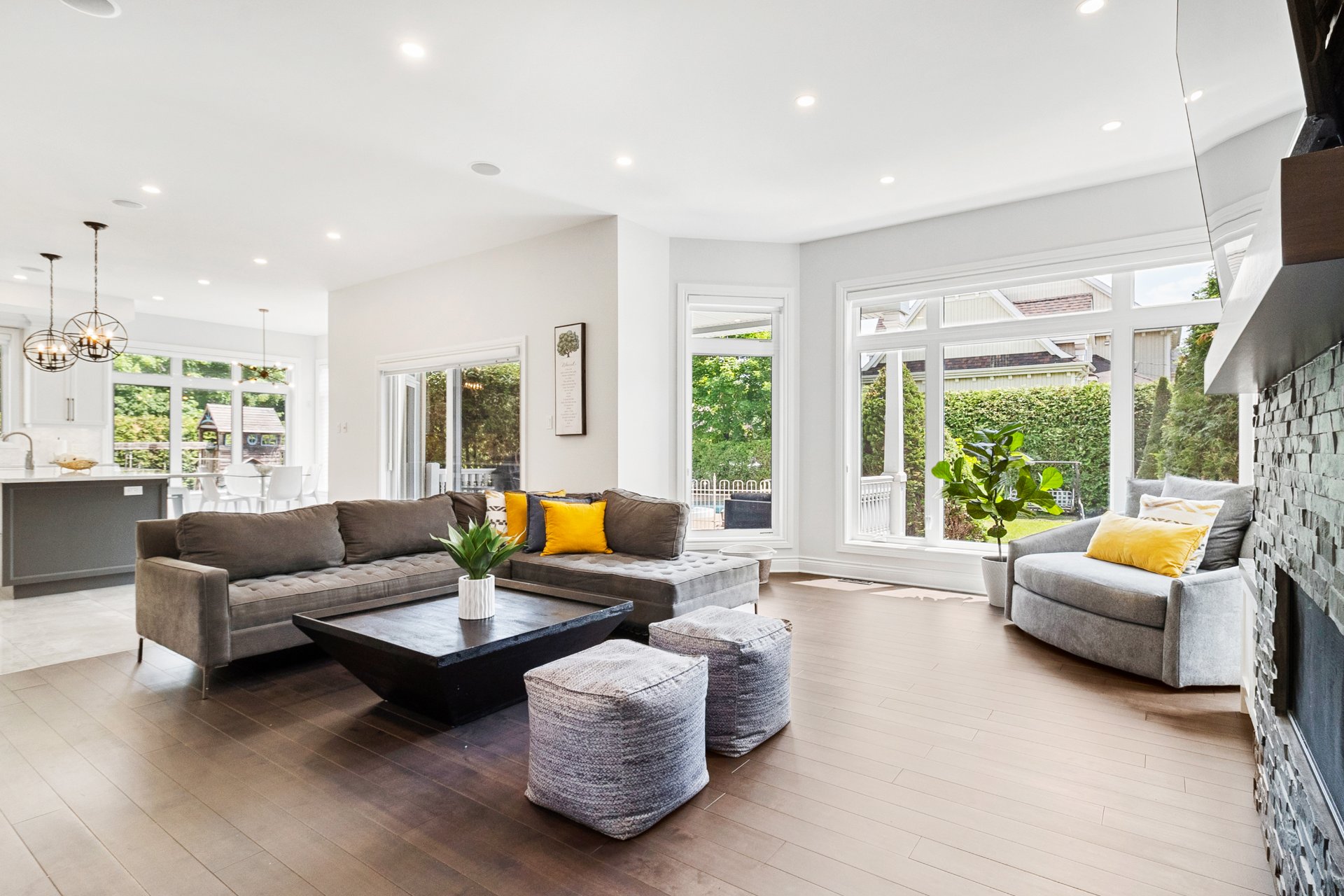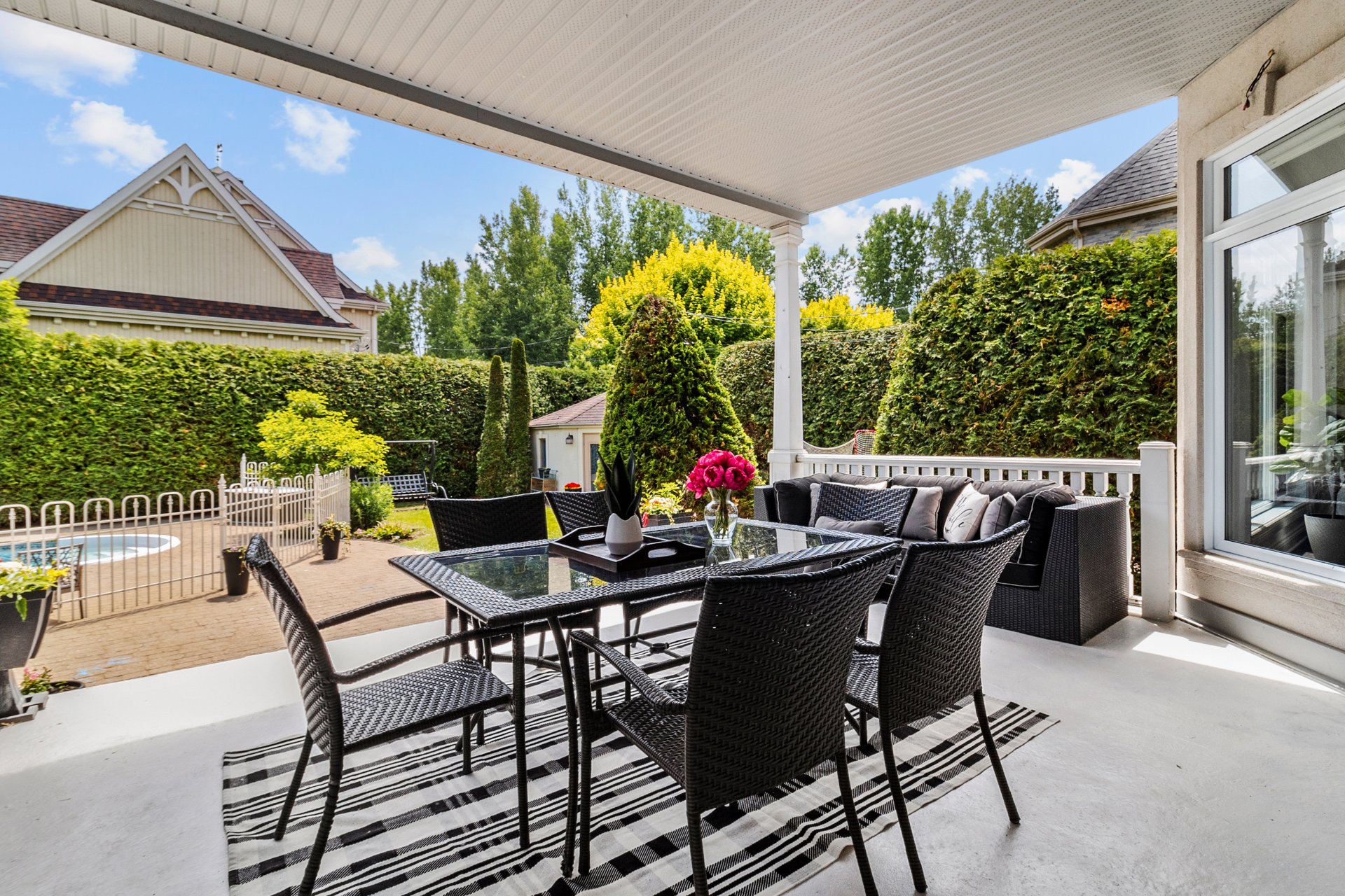 Tous les luminaires, à l'exception de celui de la chambre principale, habillages de fenêtres (stores, rideaux et tringles). Réfrigérateur de la cuisine (2024), hotte de cuisine (2018), nouveau four encastré avec micro-ondes (2025), lave-vaisselle (2018), plaque de cuisson au gaz naturel. Ouvre-porte de garage électrique, système d'arrosage automatique, ainsi que tous les équipements de la piscine au sel et sa thermopompe.Sofa du sous-sol. Chauffe eau 2025