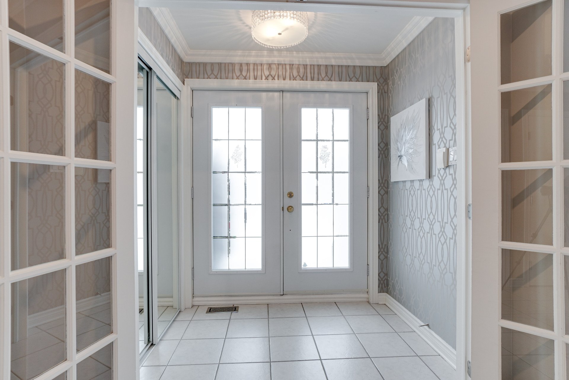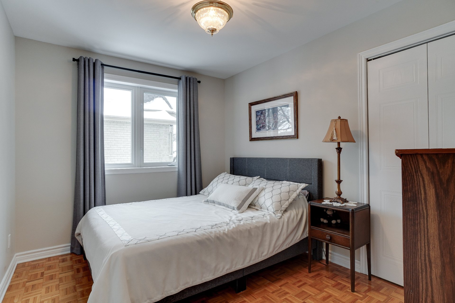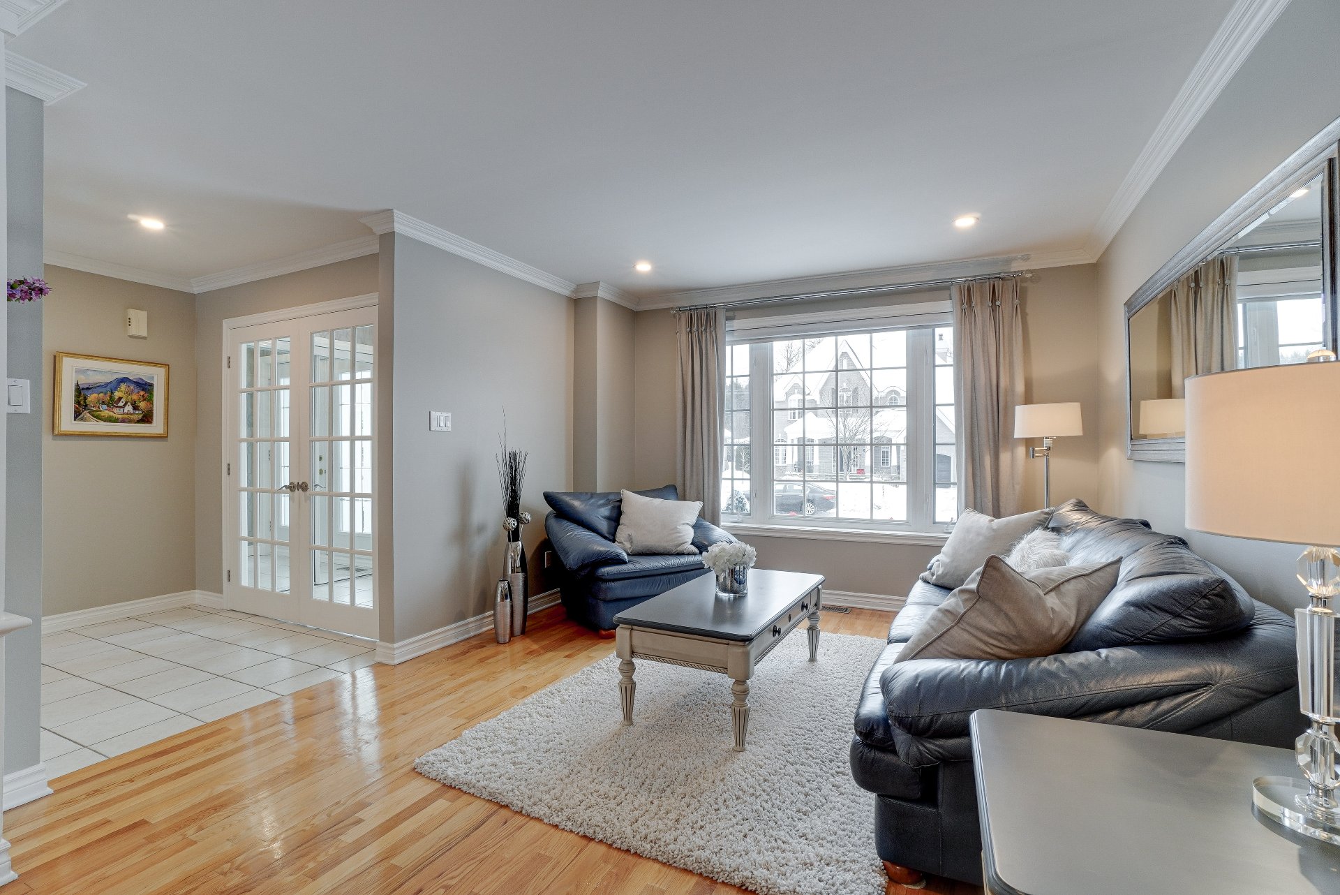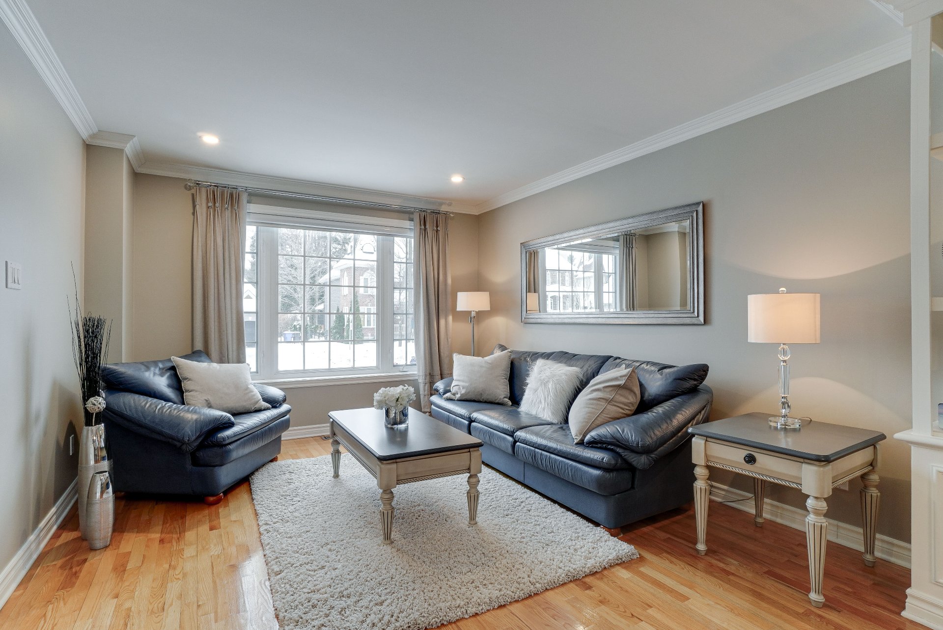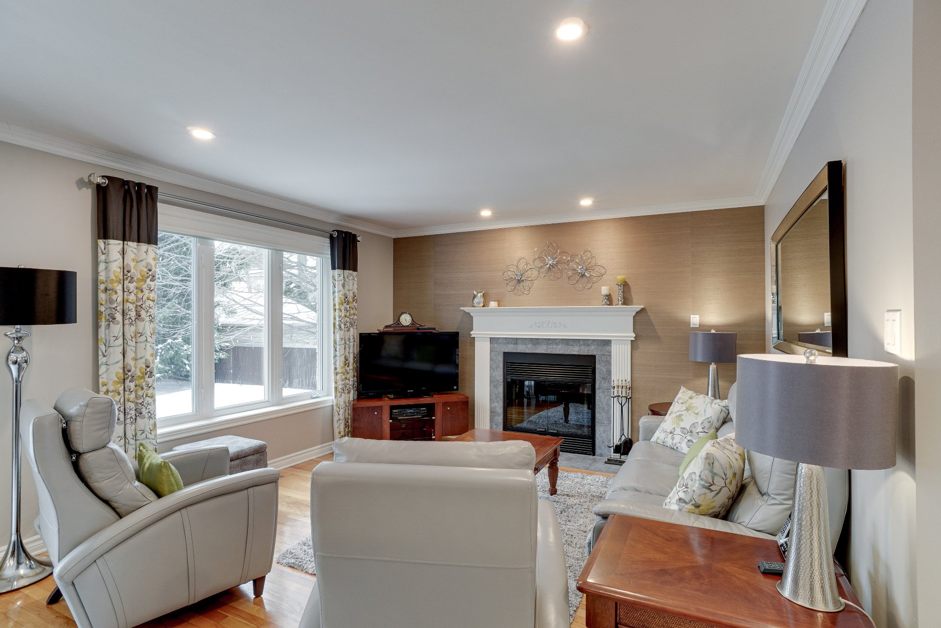 robot piscine, poles et rideaux de la porte patio et du salon arrière, lustre de la chambre principale, miroir maquillage fixé au mur chambre des maîtres