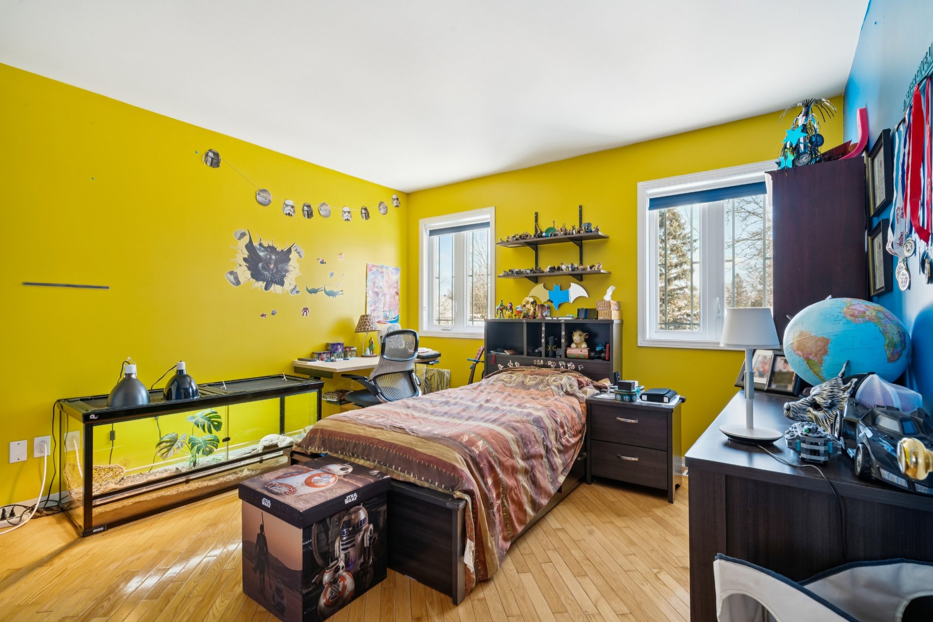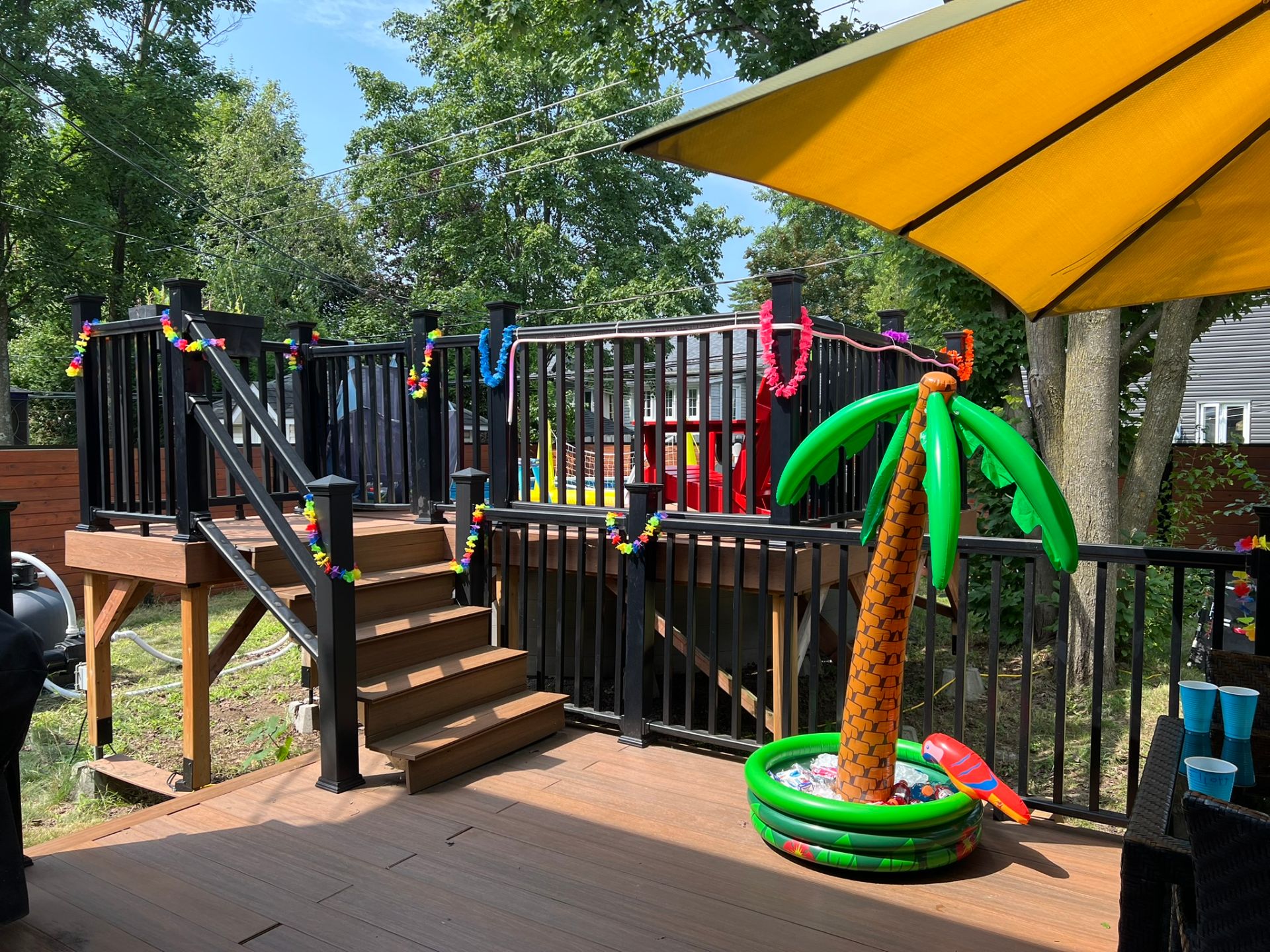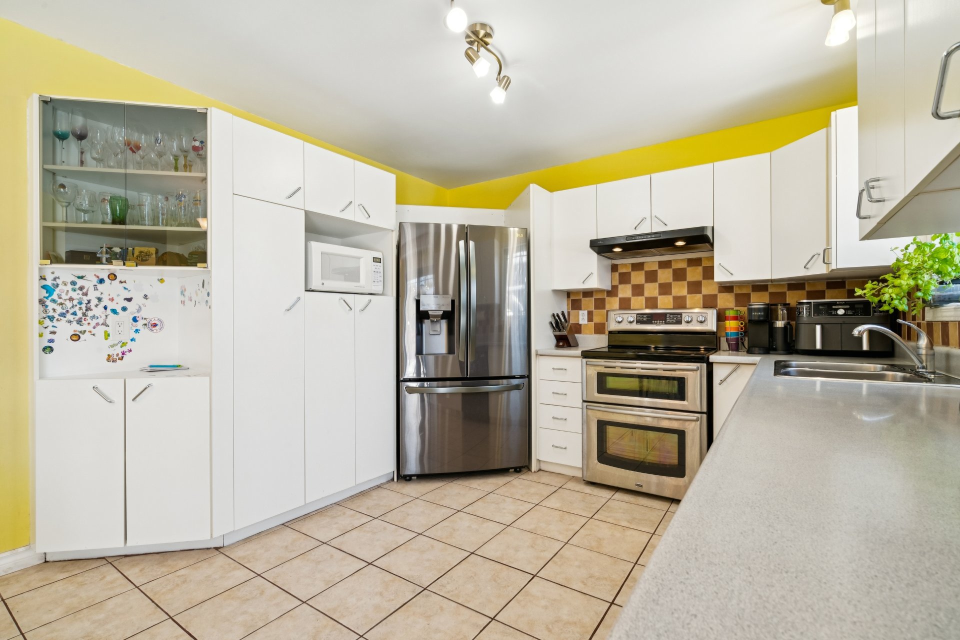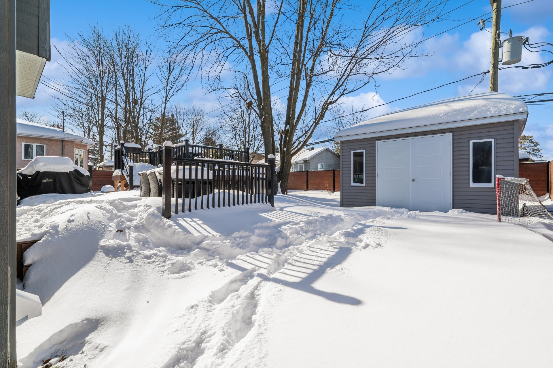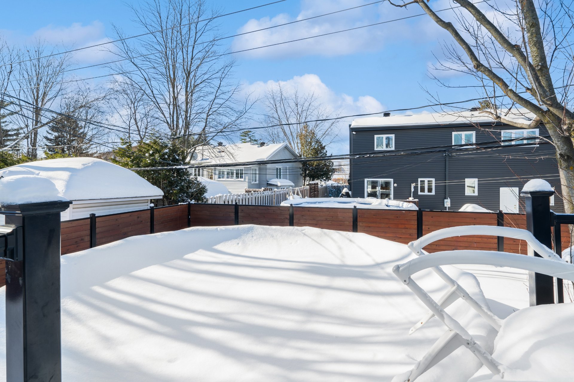 Borne de recharge voiture électrique, stores, rideaux, fixtures, thermopompe centrale, aspirateur central et accessoires, piscine et accessoires, cabanon, hotte, système de caméra.