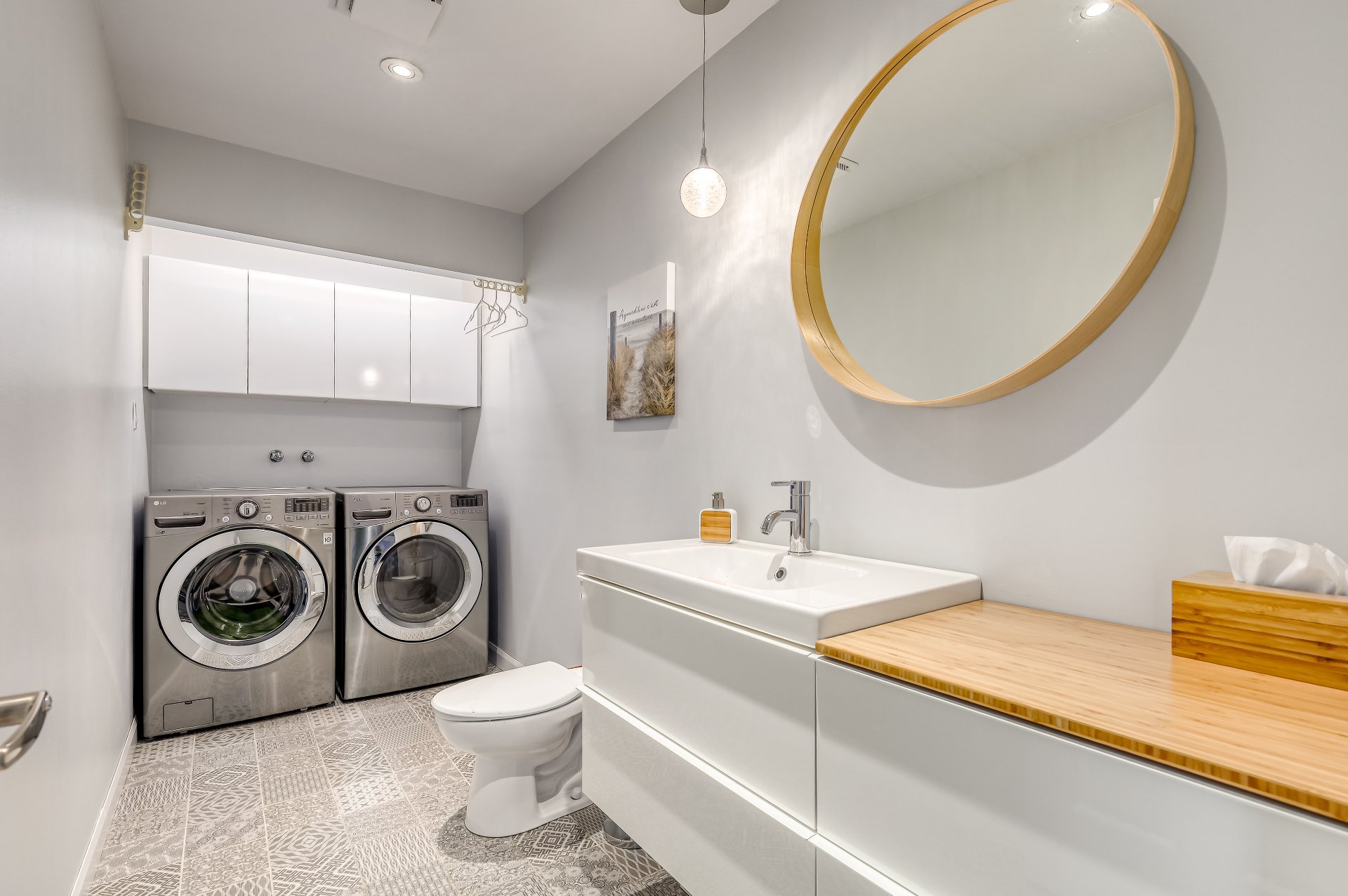 Le sous-sol offre une grande salle familiale, parfaite pour