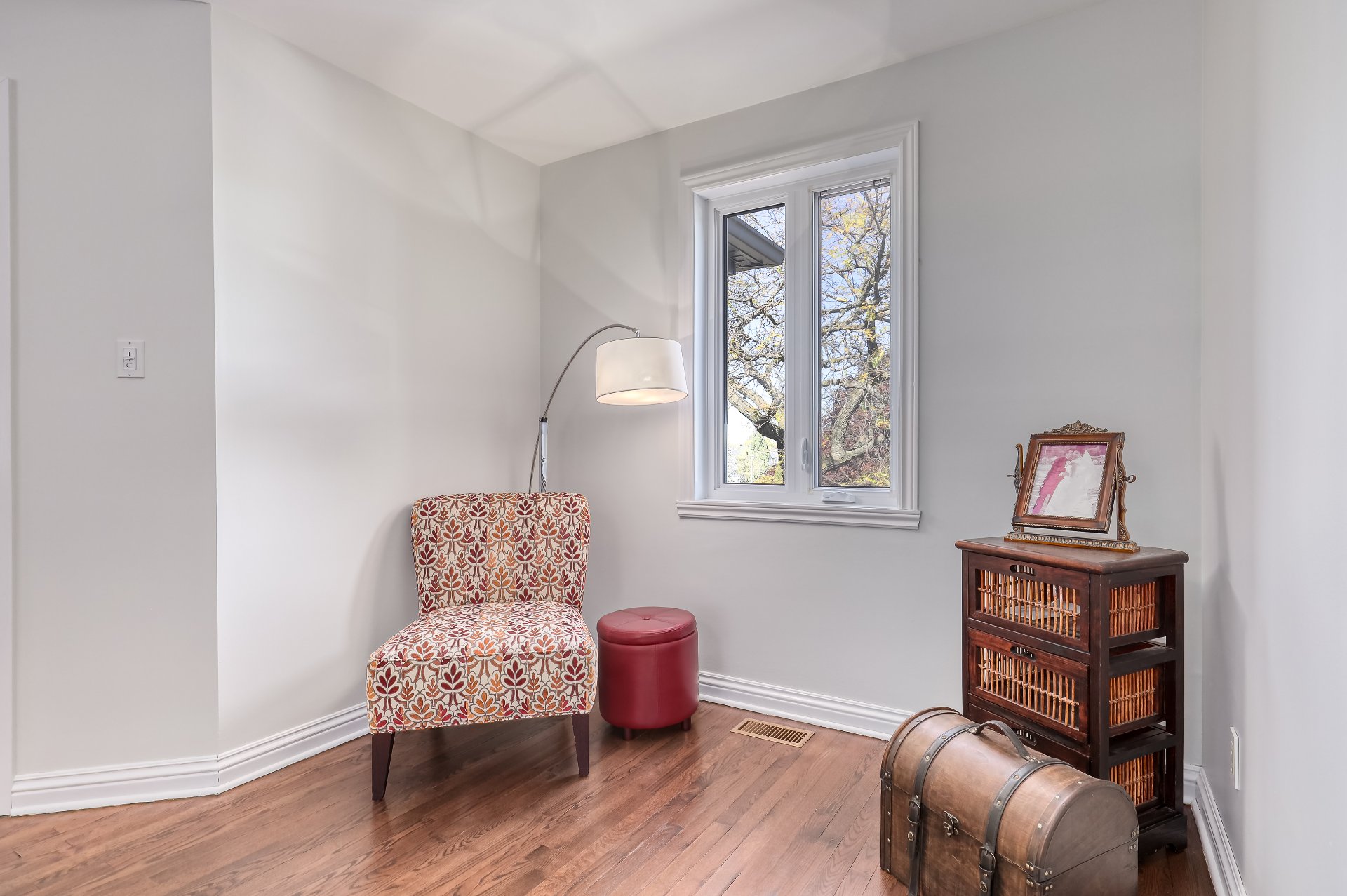 Haut-parleur du sous-sol, de marque Paradigm, miroir blanc de la salle à manger et le miroir dans le vestibule. Meubles et effets personnels des vendeurs.