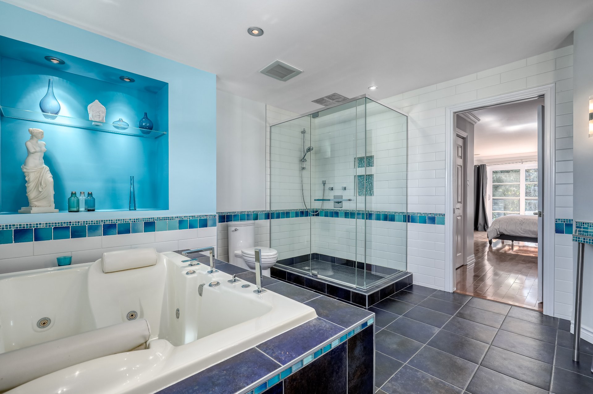 Douche indépendante, Baignoire à remous, Attenante à la chambre principale