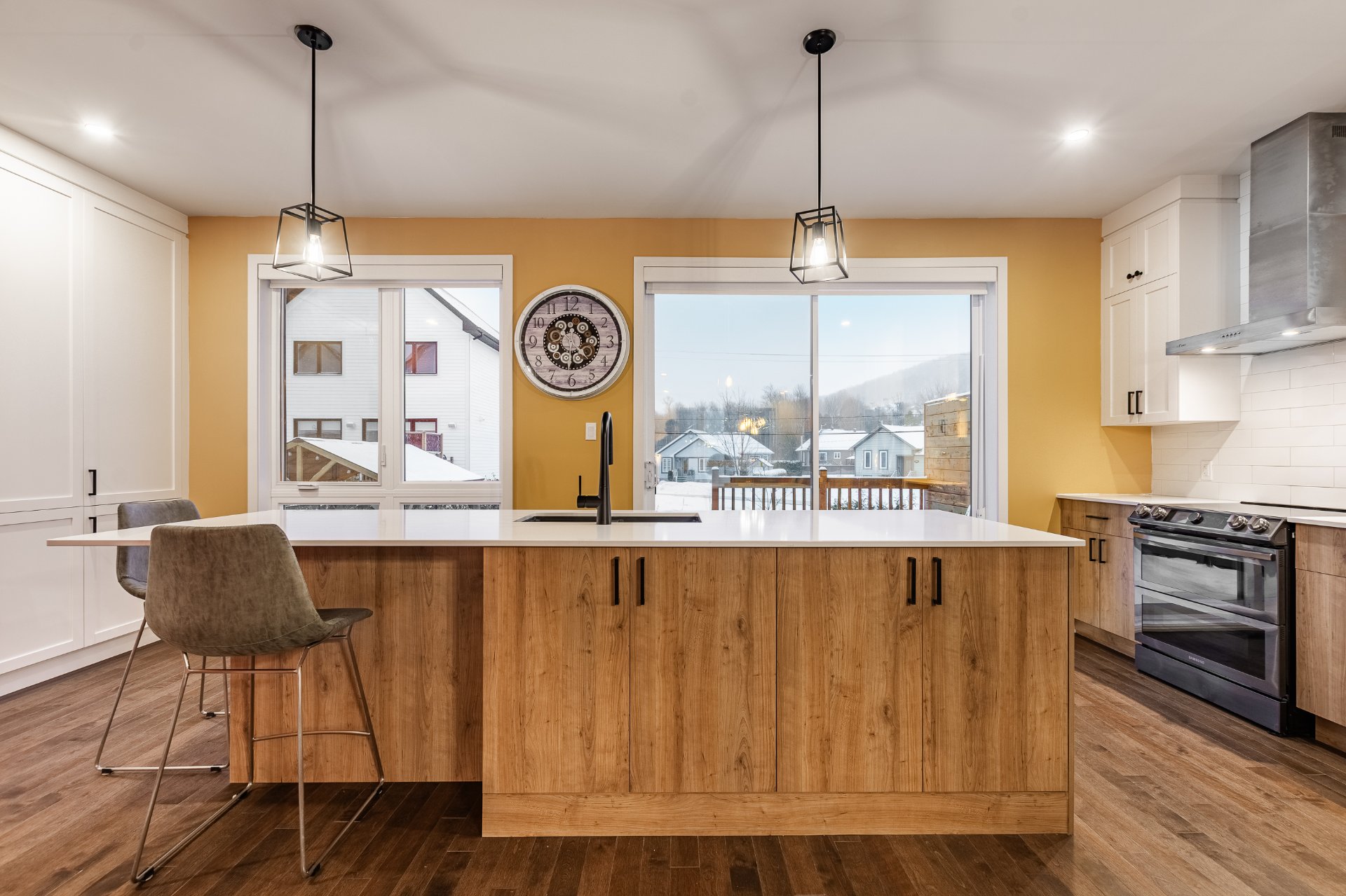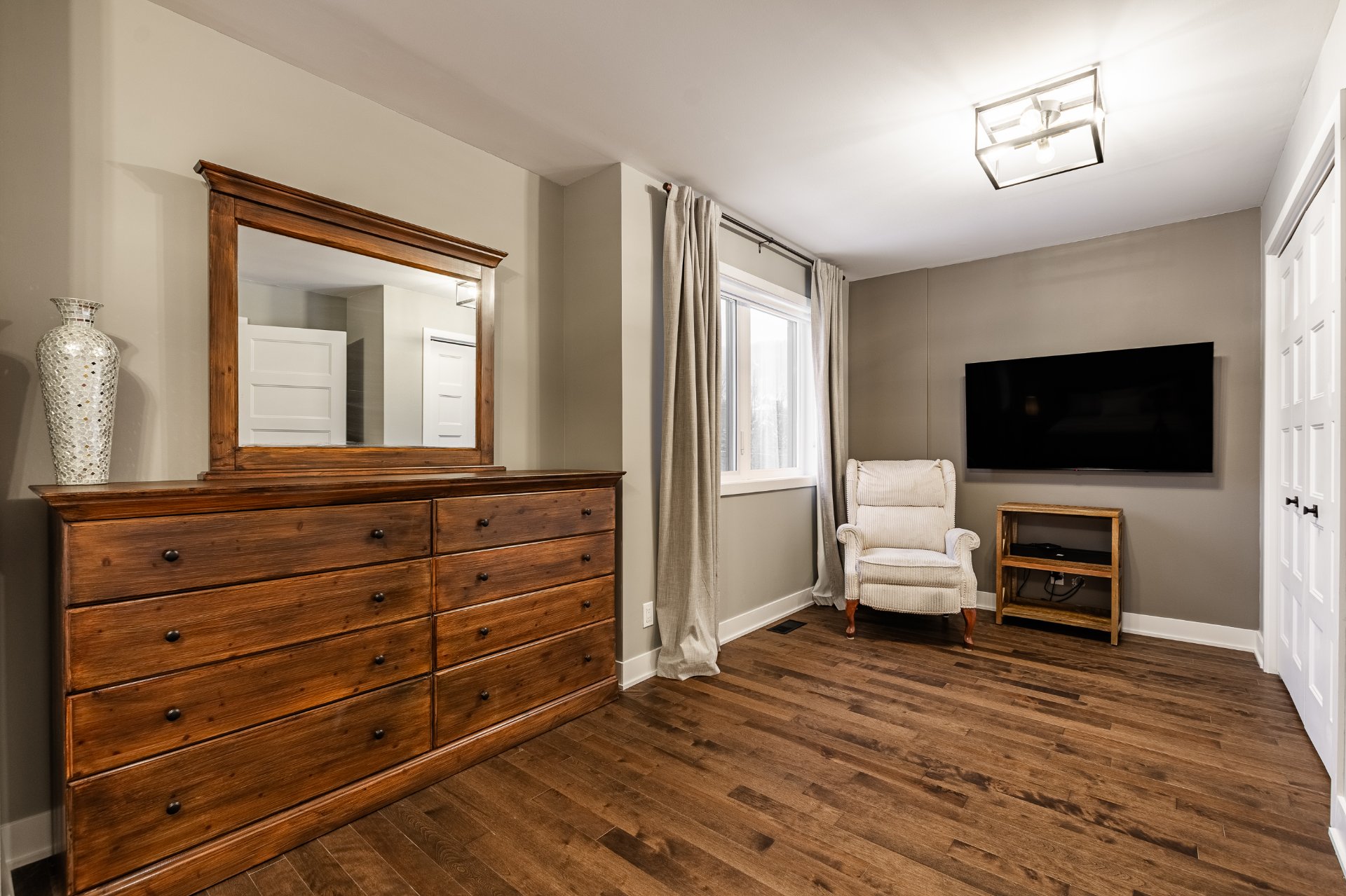 Stores électriques (4), store manuel, rideaux, pôles, balayeuse centrale et ses accessoires, luminaires, support à télé, installation électrique pour voiture électrique, gazebo extérieur, système Ecobee pour le chauffage.