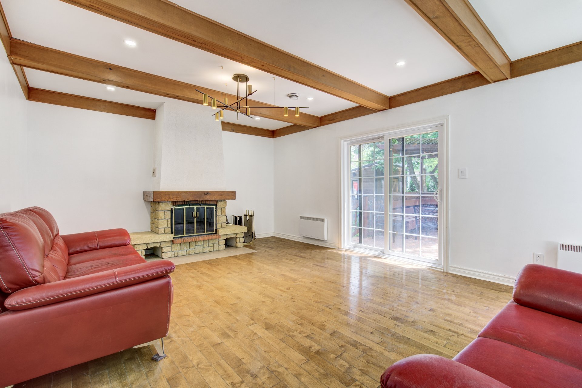 d'un foyer au bois* et d'une porte-patio donnant accès à la